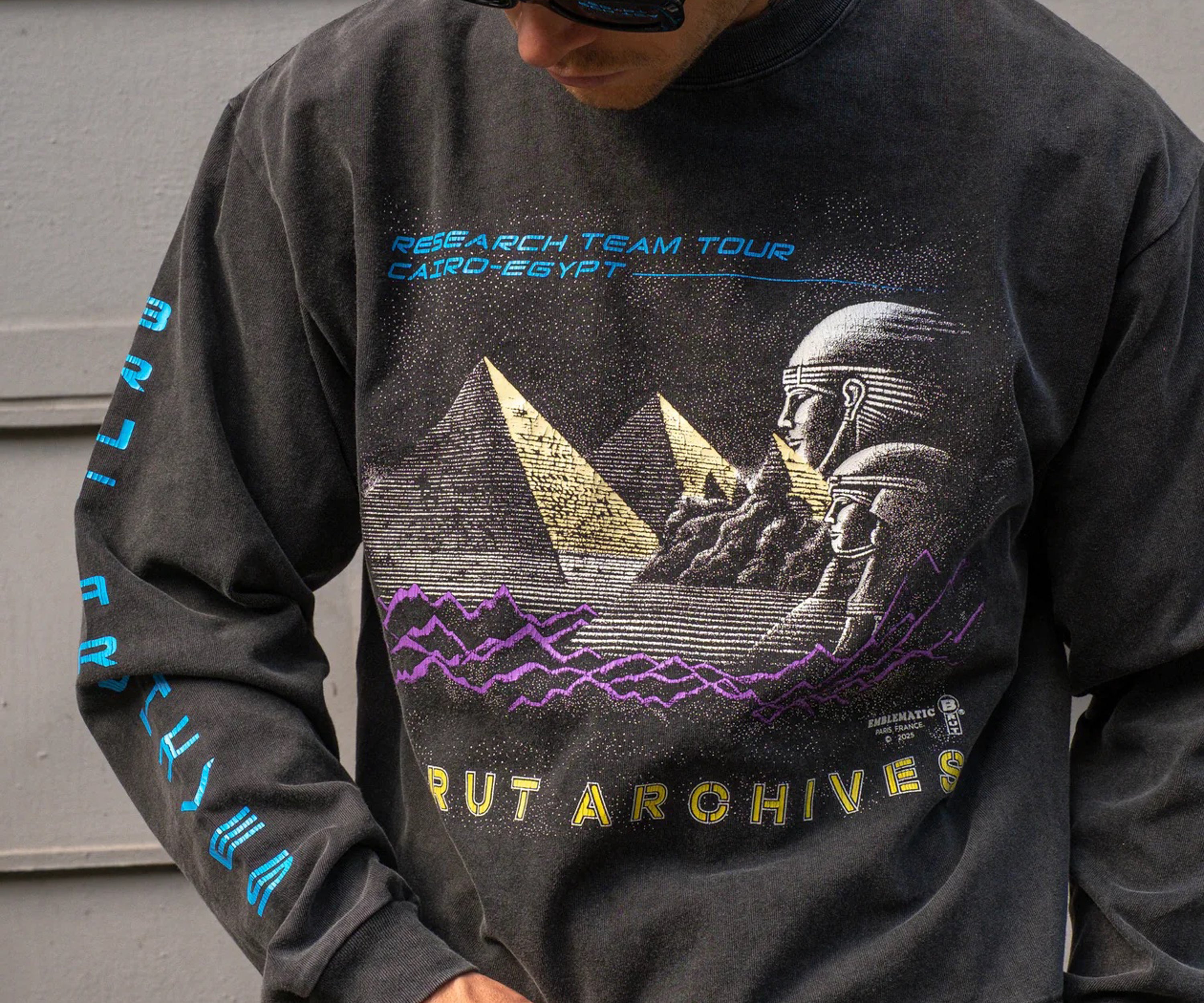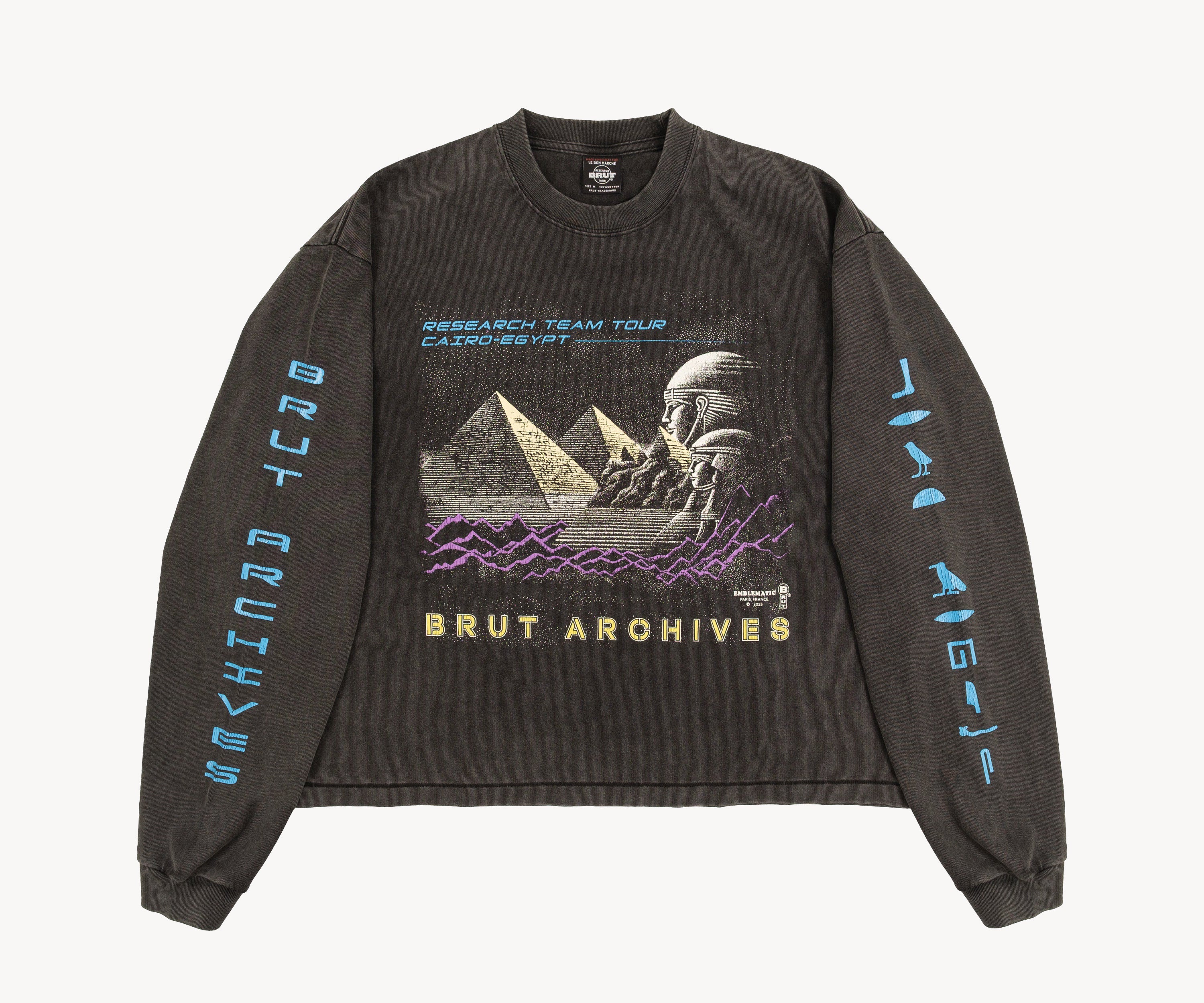 Brut Archives - Le Bon Marché Cairo graphics screen printed on front and sleeves.