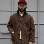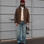 100% cotton body. 20% wool, 80% polyester lining. Made in China.