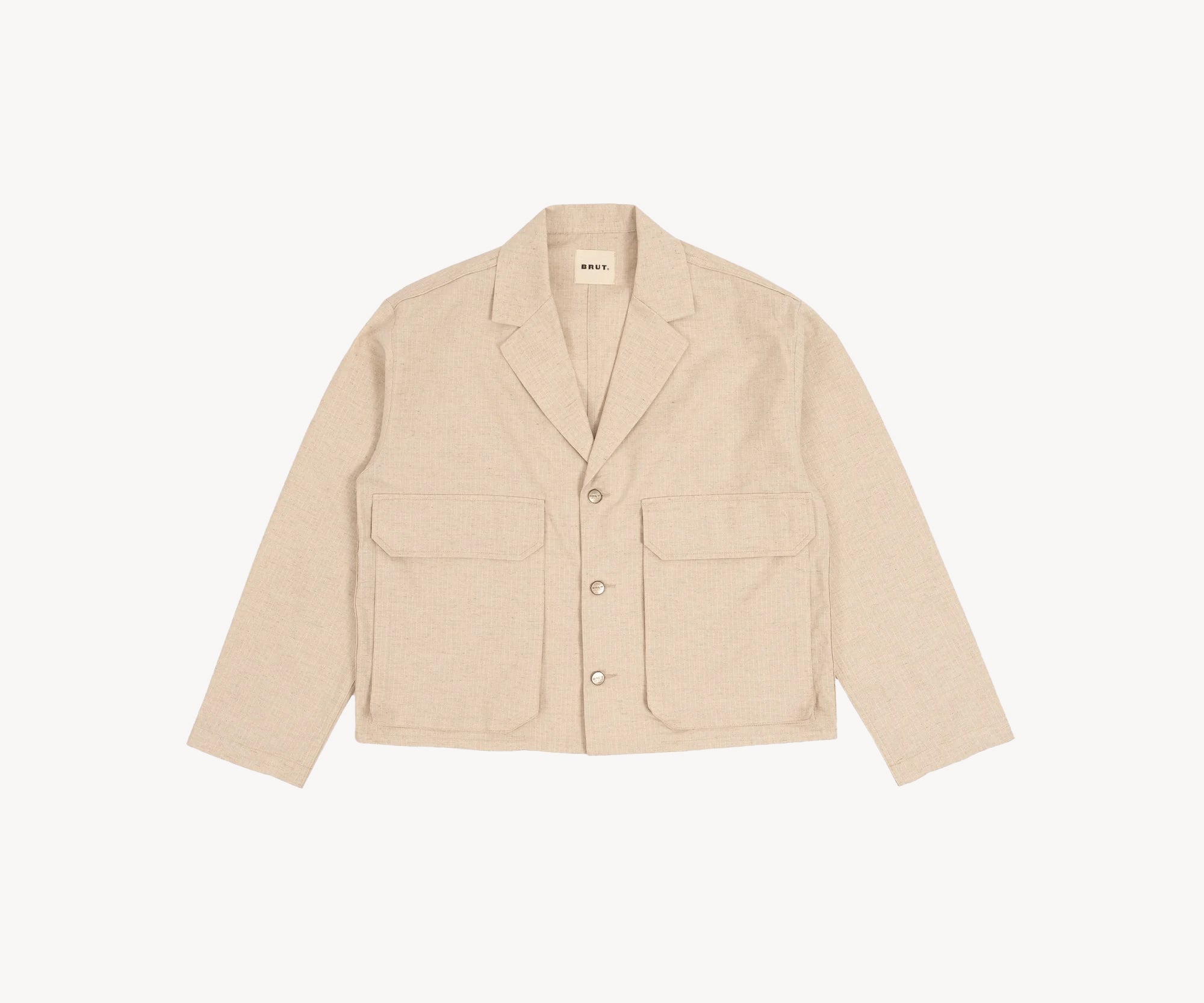 After studying rare vintage workwear uniforms in our archive, we followed Brut's vision of the perfect boxy blazer, resulting in the creation of a new Brut staple. The Crop Blazer holds a classic relaxed fit with a subtle boxiness to it, flattering drop shoulder, two large pocket for a minimal design .