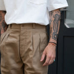 Inspired by vintage french army chino pants from our archives, the DOUBLE PLEAT PANTS is designed to be a staple in your wardrobe thanks to their heavyweight and durable fabric.