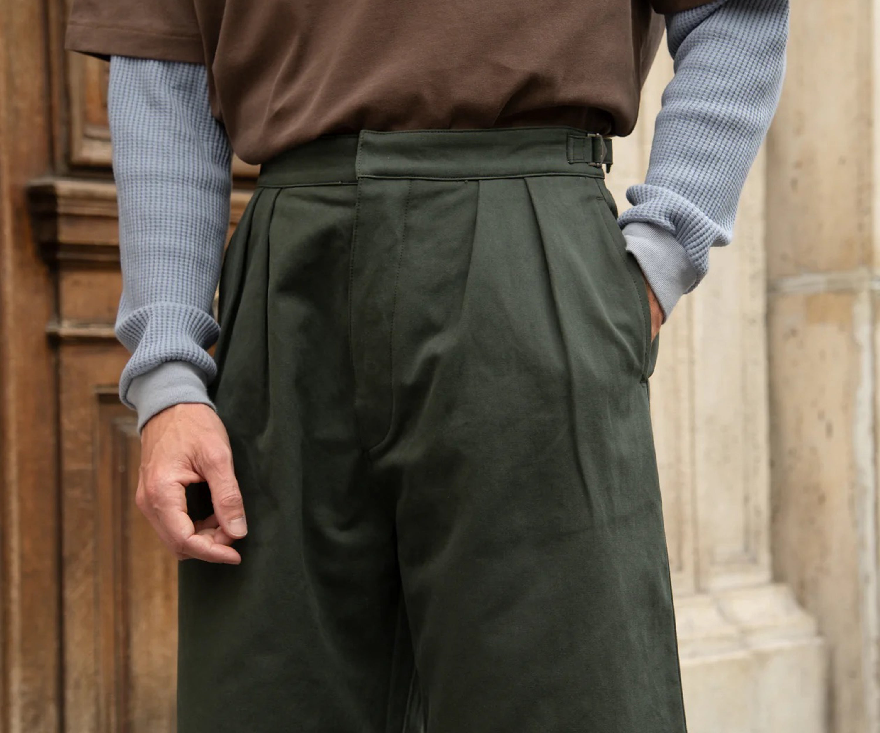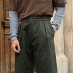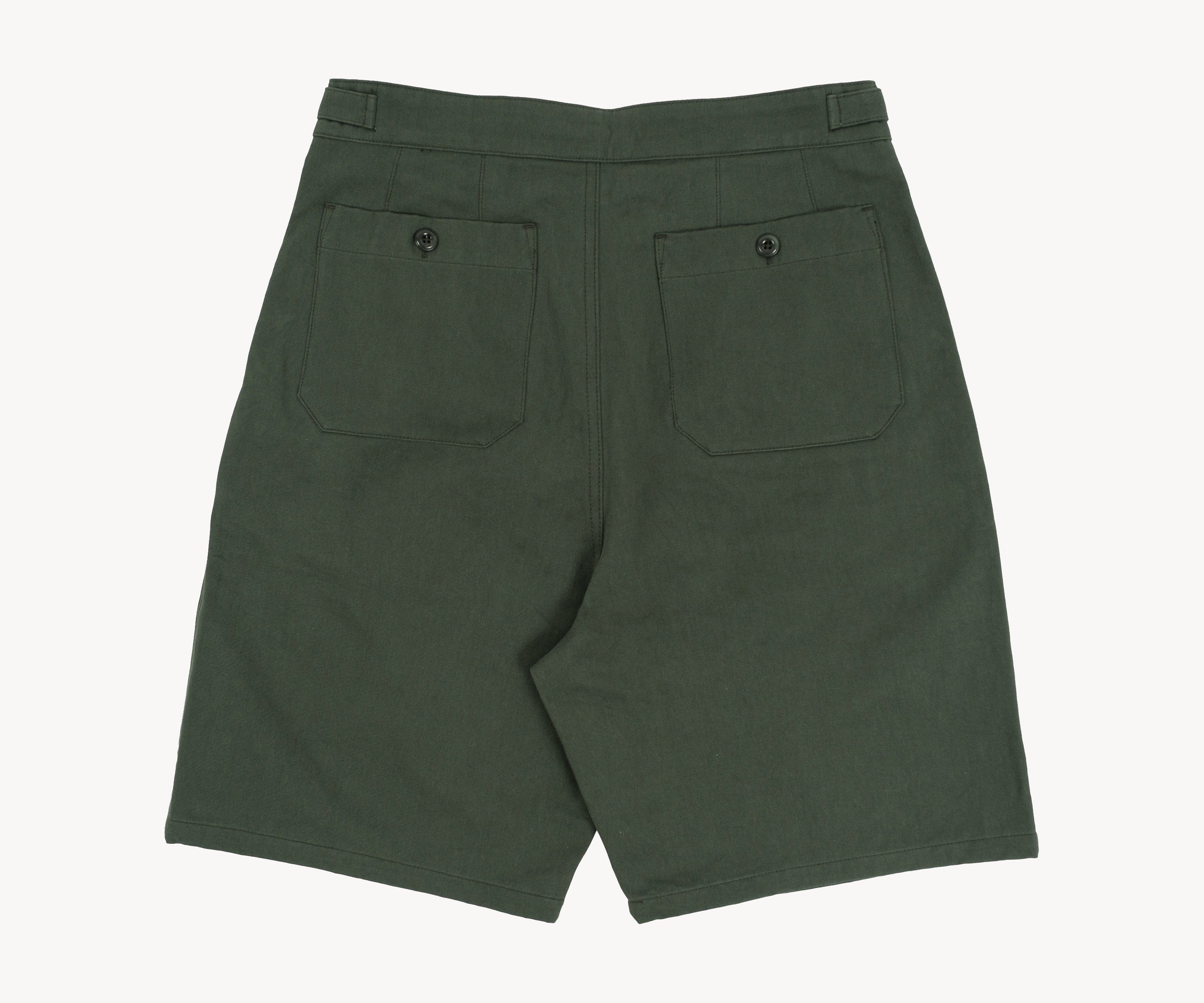 The DOUBLE PLEAT SHORTS is a modern reinterpretation of the 1950s french army shorts, it is made out of a cotton canvas and quality hardware. The DOULE PLEAT SHORTS is designed to be a staple in your summer wardrobe thanks to their lightweight and durable fabric.