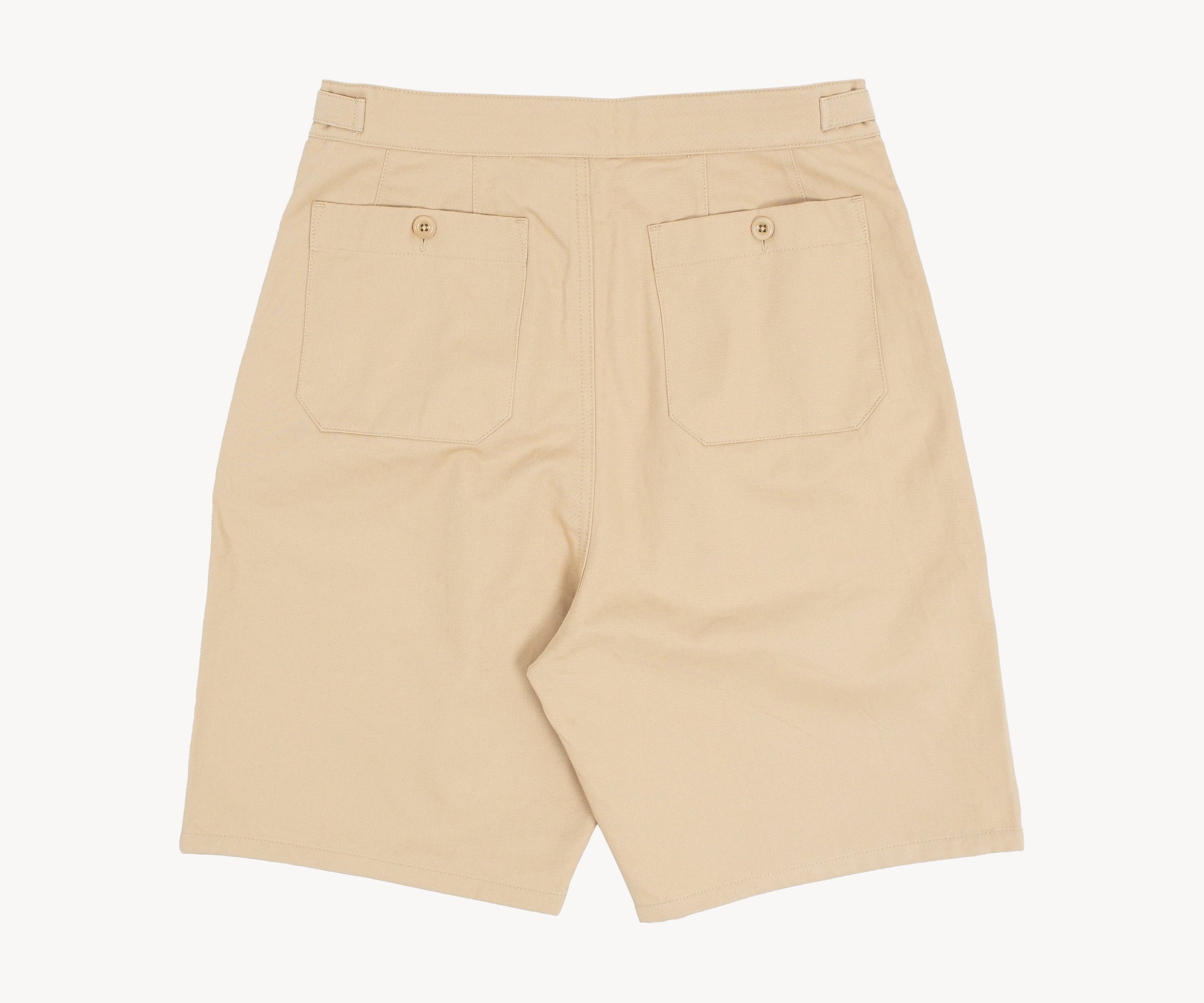 The DOUBLE PLEAT SHORTS is a modern reinterpretation of the 1950s french army shorts, it is made out of a cotton canvas and quality hardware. The DOULE PLEAT SHORTS is designed to be a staple in your summer wardrobe thanks to their lightweight and durable fabric.