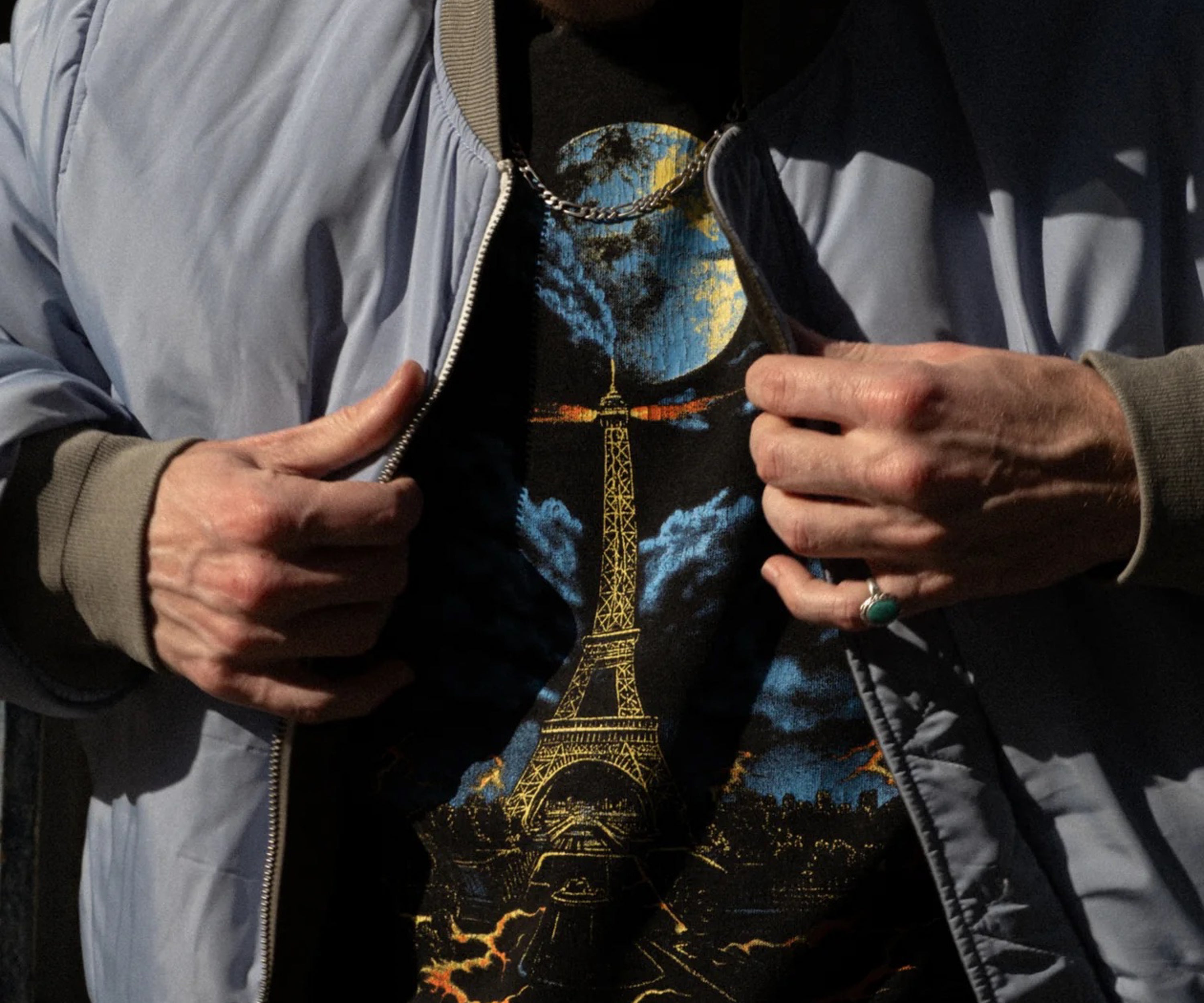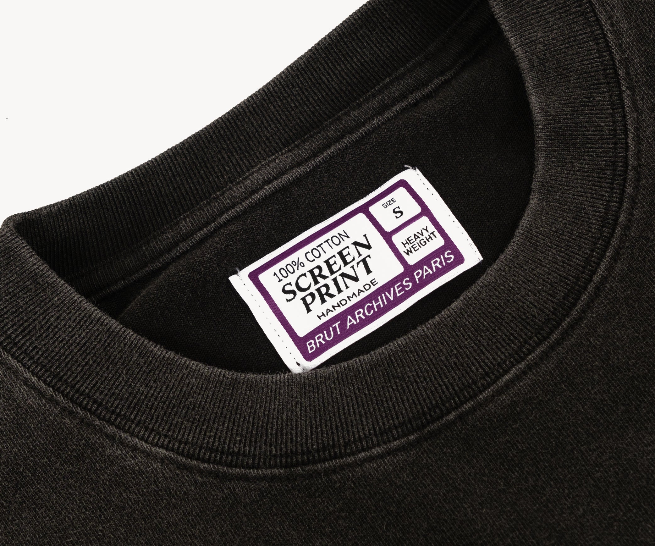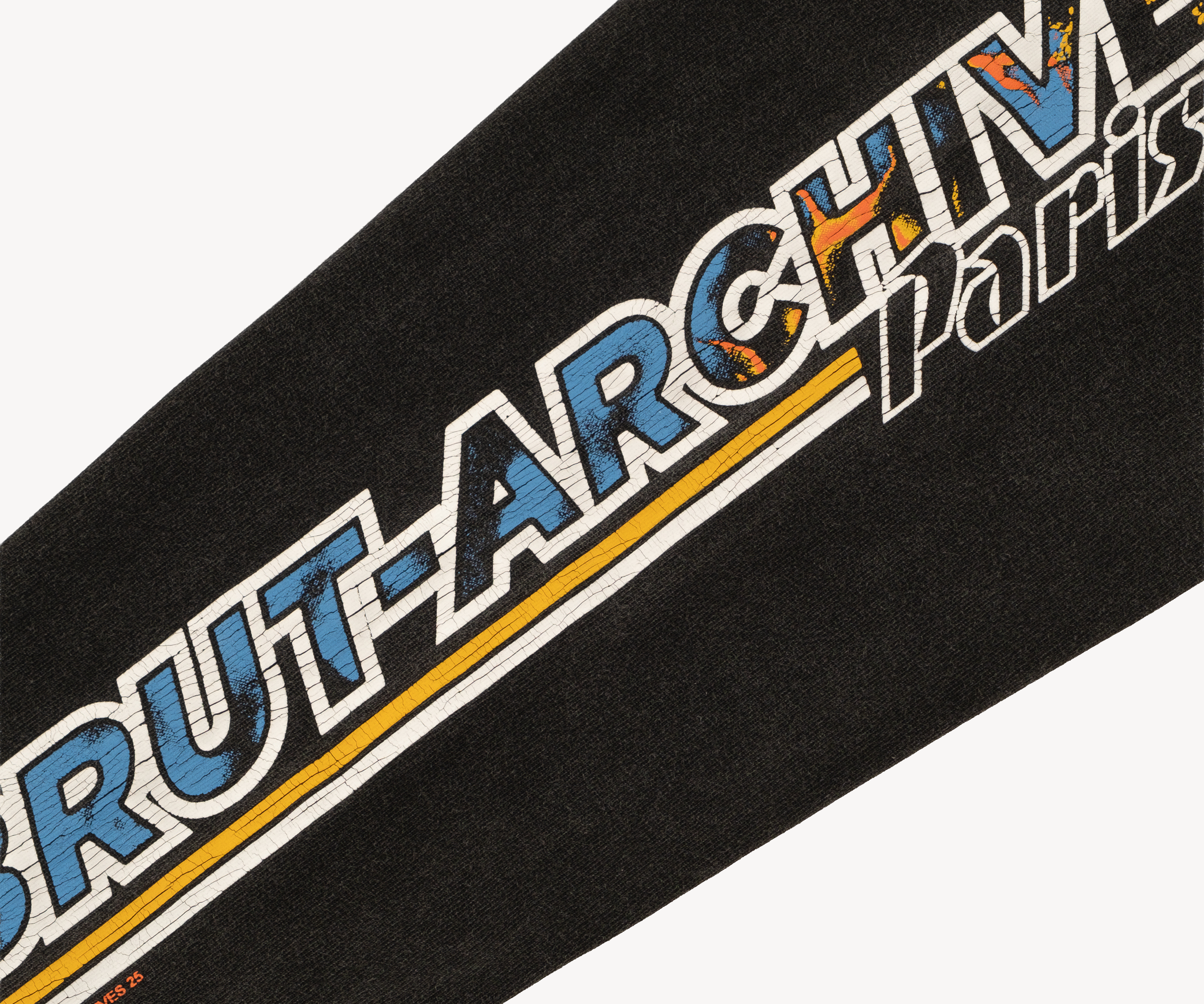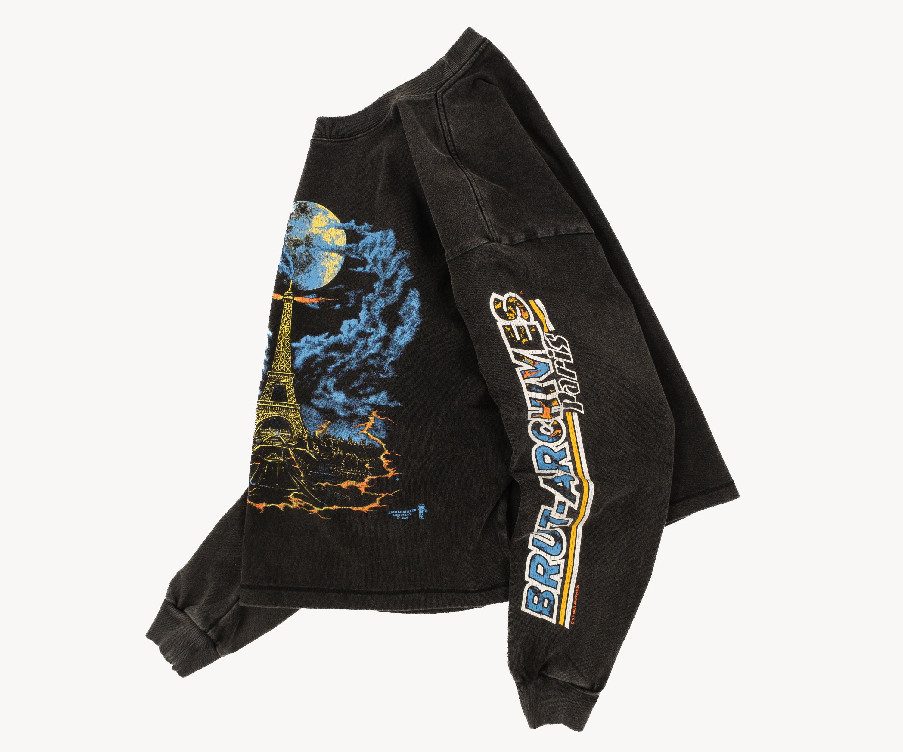 Brut Archives Eiffel Tower graphics screen printed on front and sleeves.