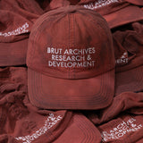 BRUT RESEARCH graphic embroidered on front.