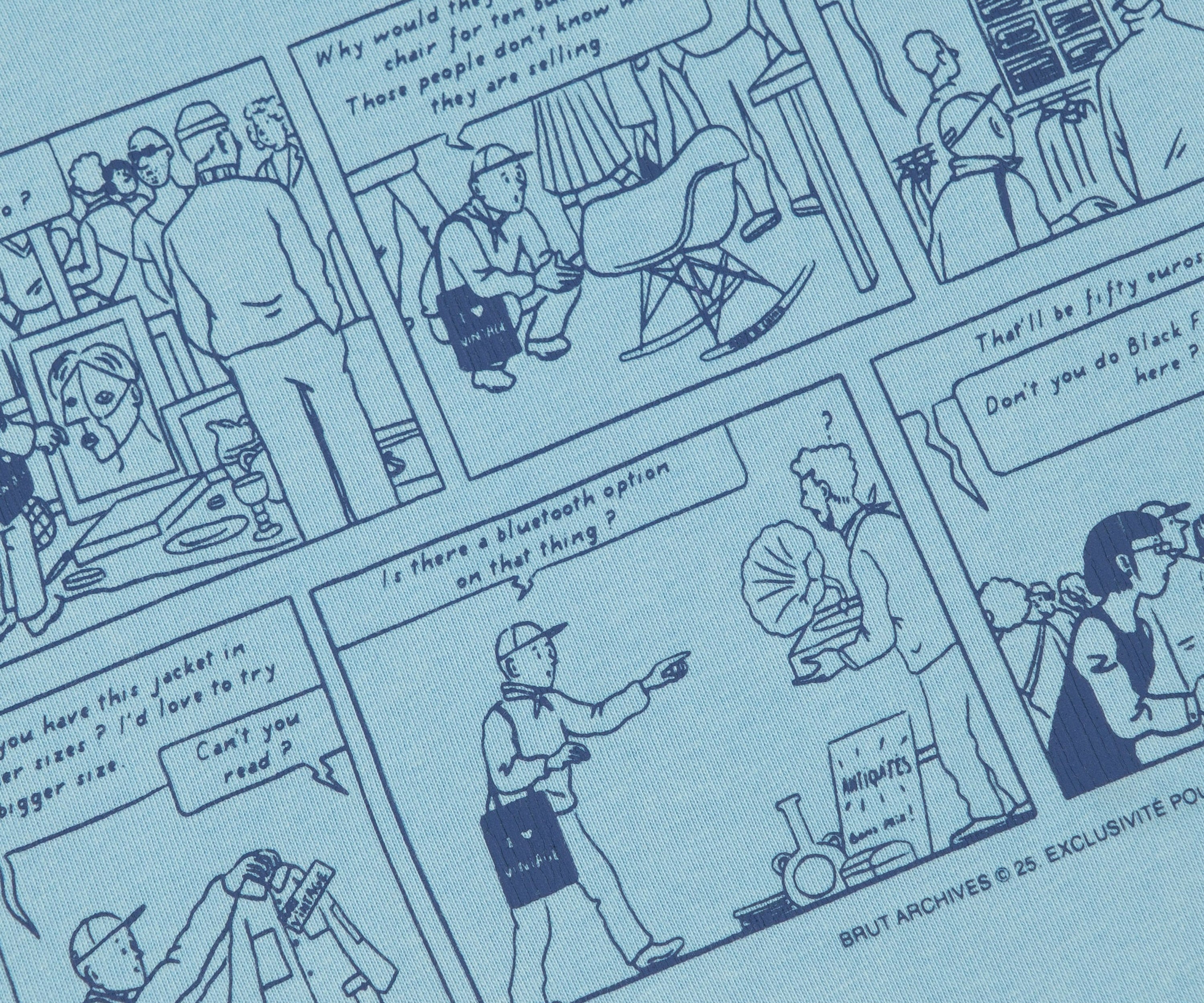 Brut Archives - Flea Market Comic graphics screen printed on front.