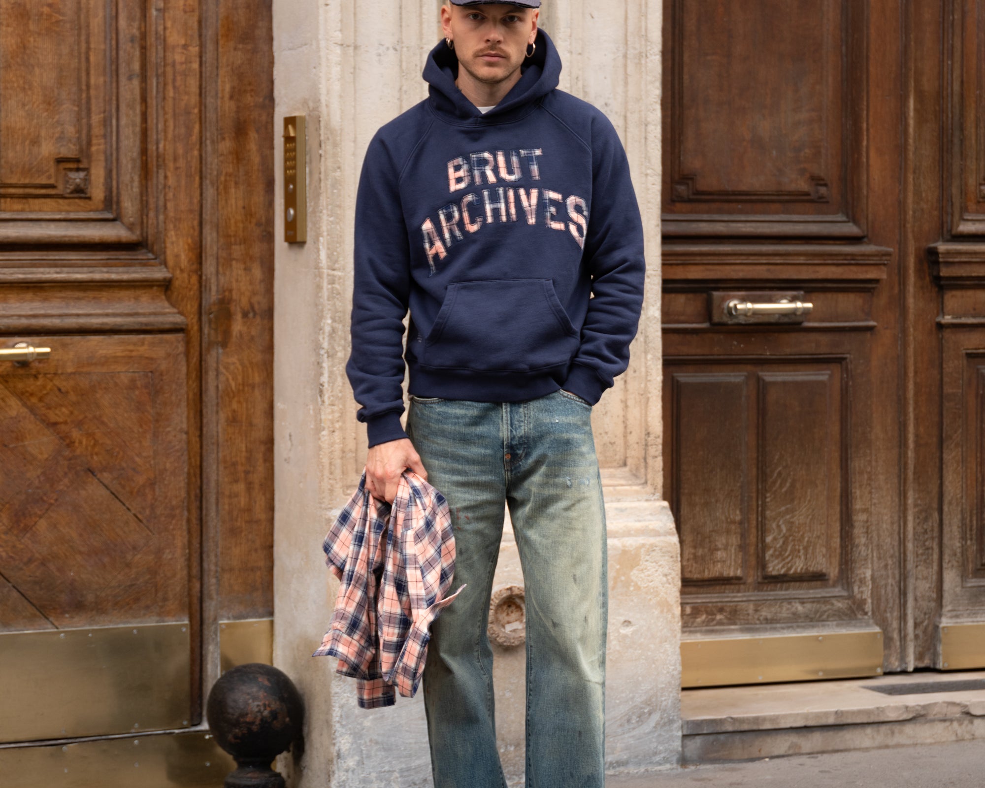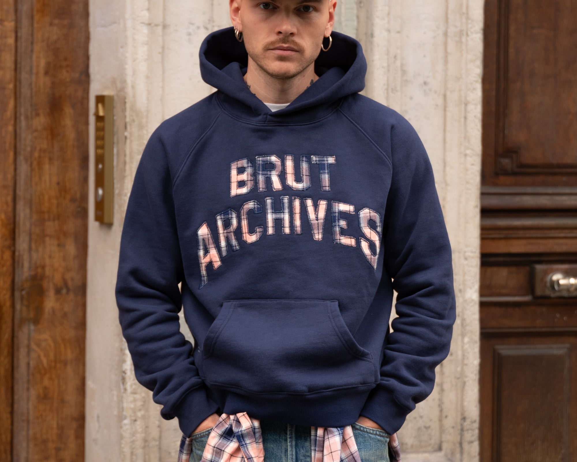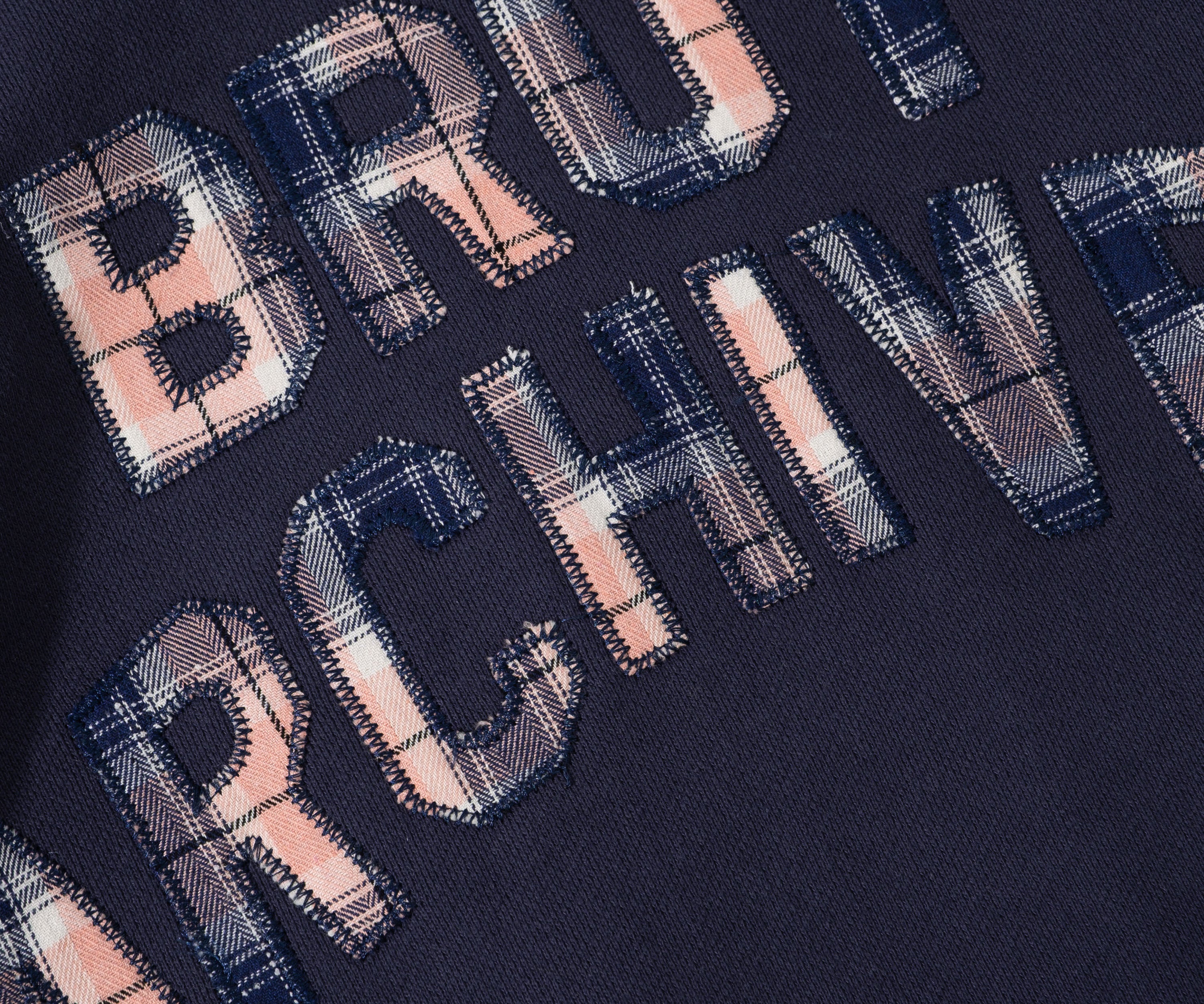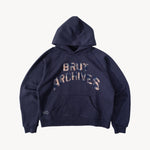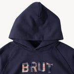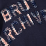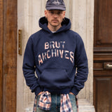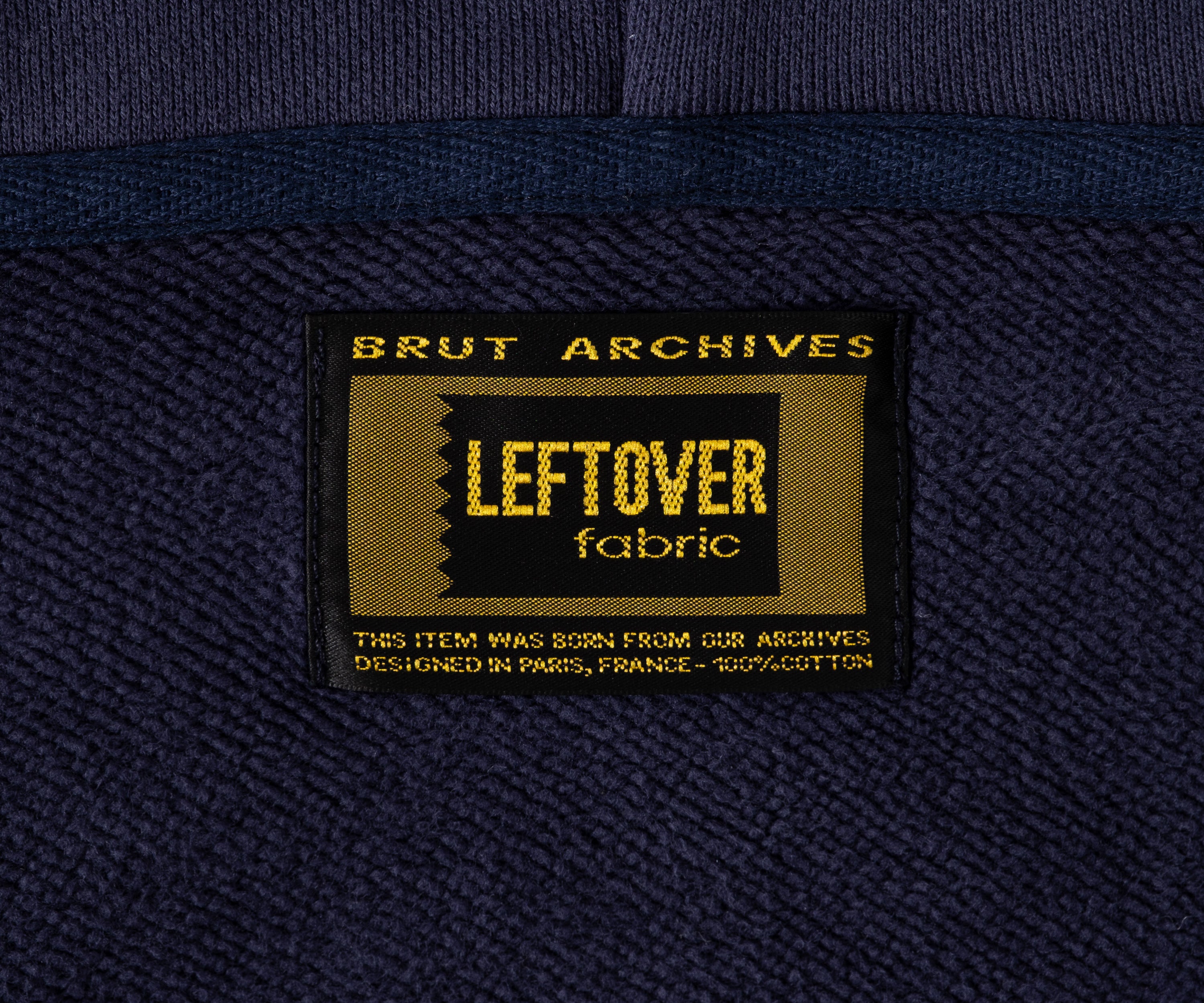Brut Archives appliqué on front made with leftover fabrics.