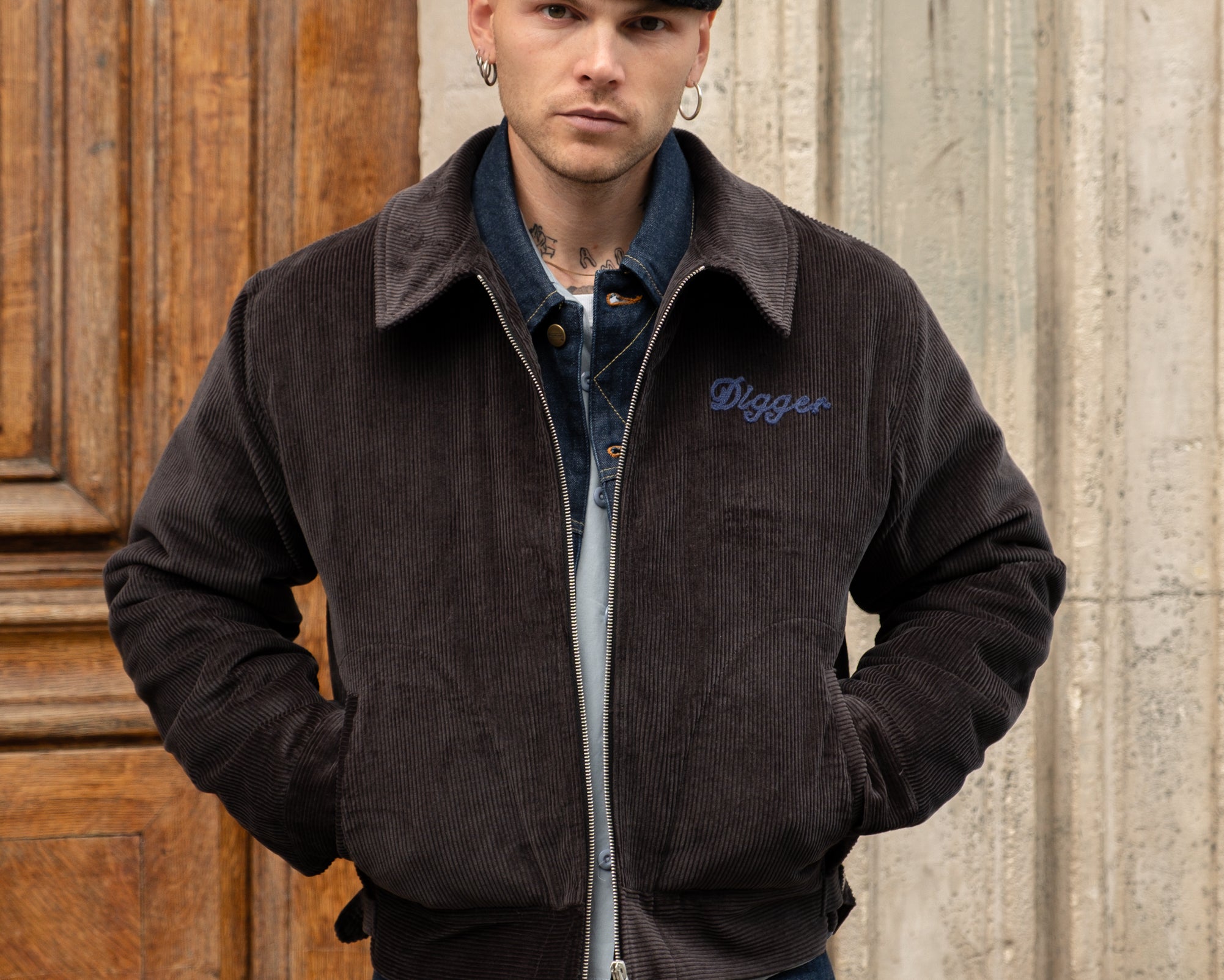 Embroidered Brut Archives Diggers graphic on front.