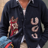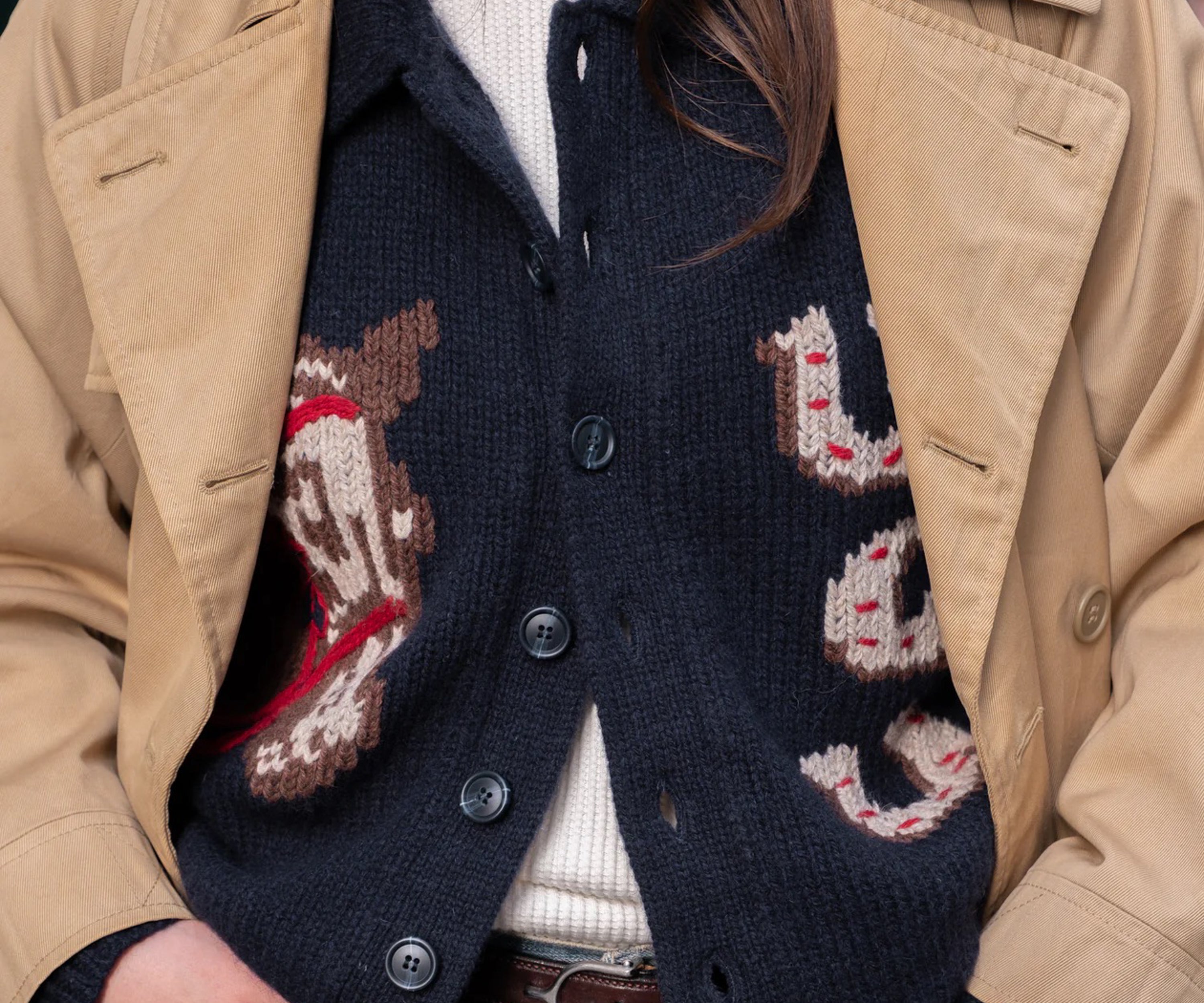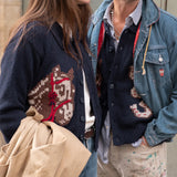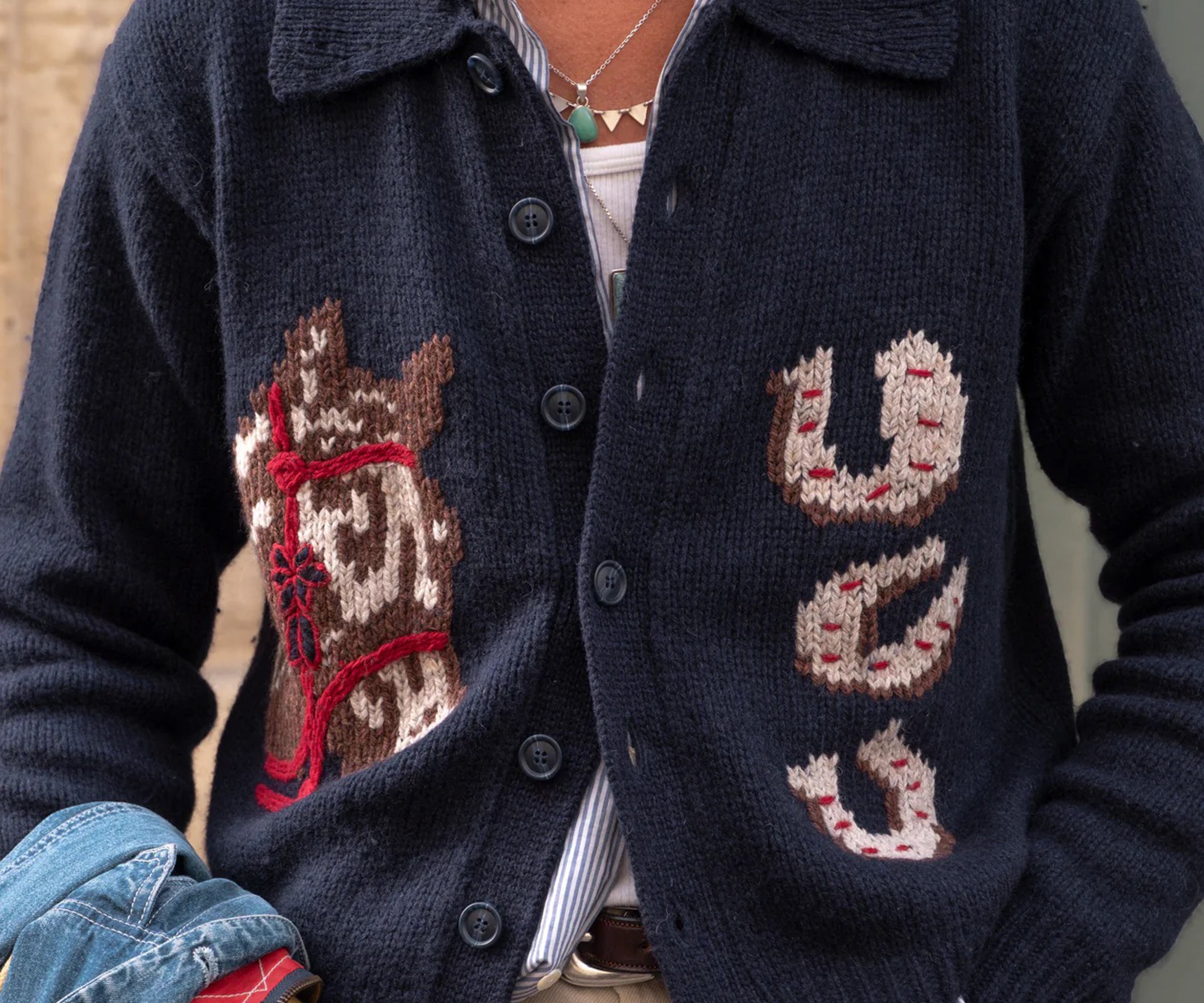 Meet our "Lucky Sweater," adorned with Americana luck symbols - the horseshoe - designed to bring you luck into every circumstance. Our crop wool cardigan features a generous collar and the exclusive fit is curated to complement high-waisted pants effortlessly.
