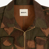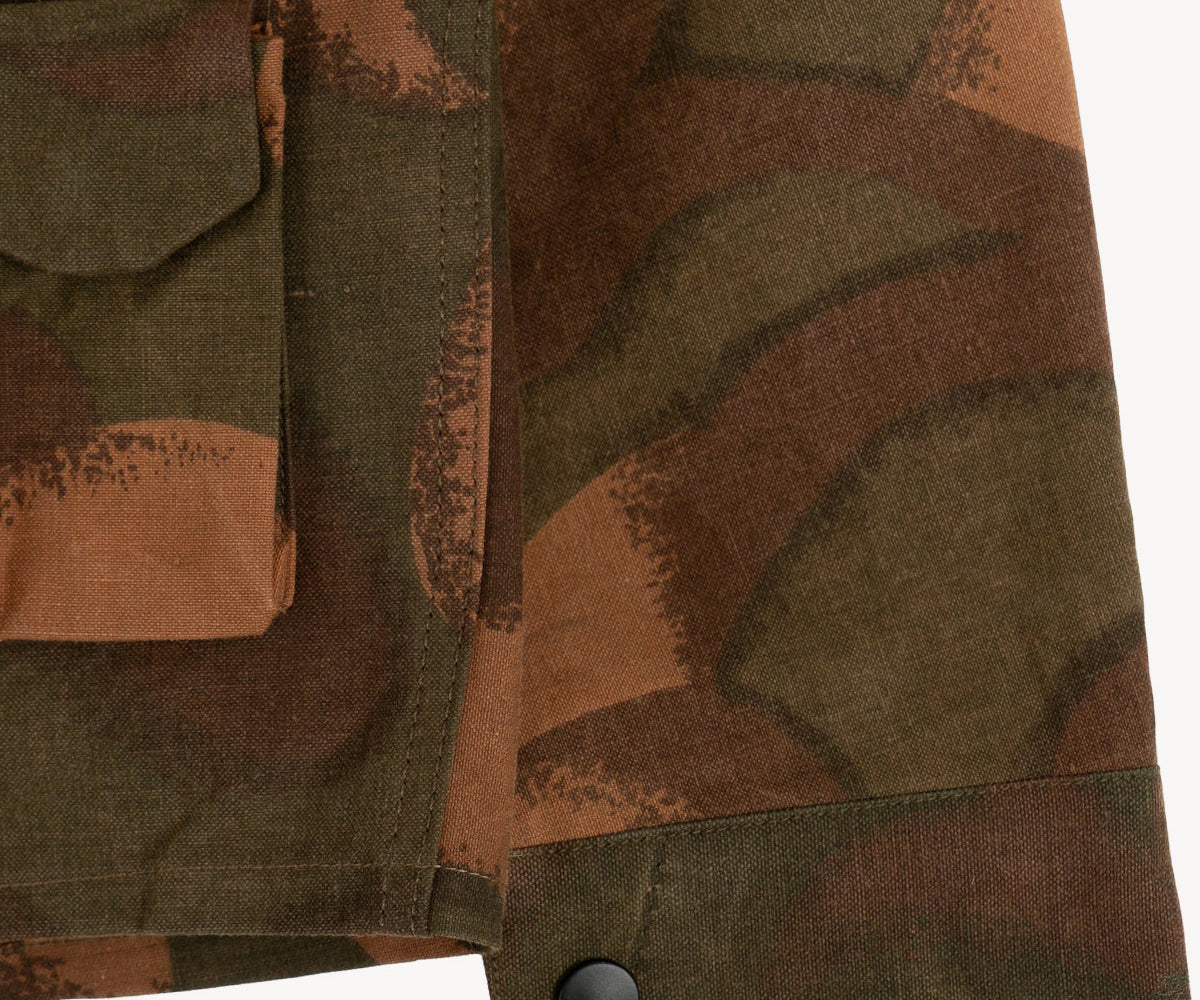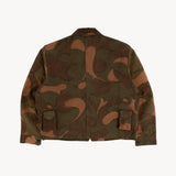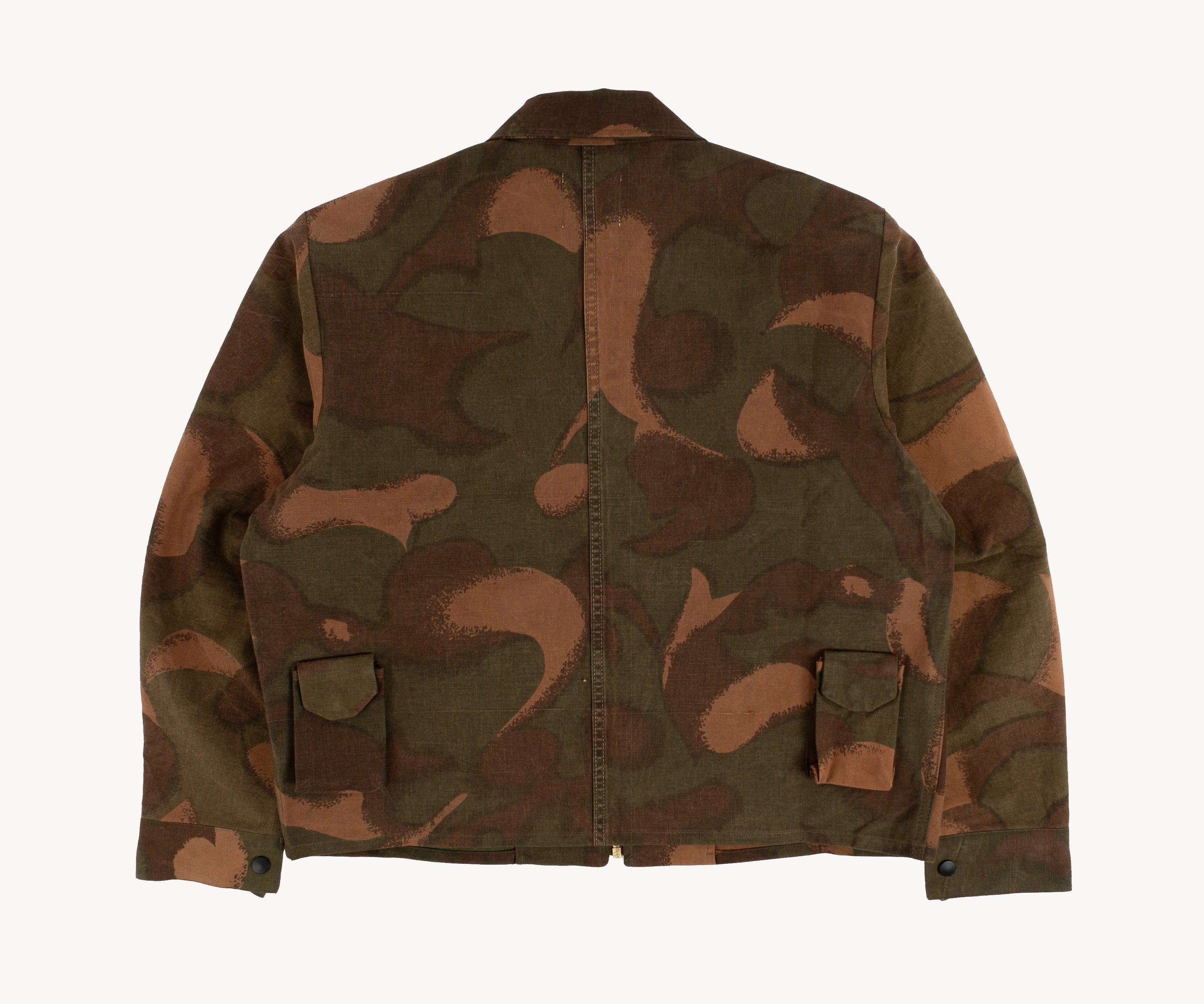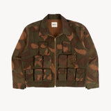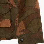 The MULTIPOCKET JACKET is crafted from vintage camo twill fabric. The fit is designed to be straight and cropped, perfectly complementing your high-waisted and natural waist pants. Drawing inspiration from American work jackets and fly fishing gear, it features 14 pockets and a rarely seen camouflage pattern from the late '50s, making this an eye-catching jacket that will blend seamlessly with your wardrobe, striking the perfect balance between workwear and technical clothes.