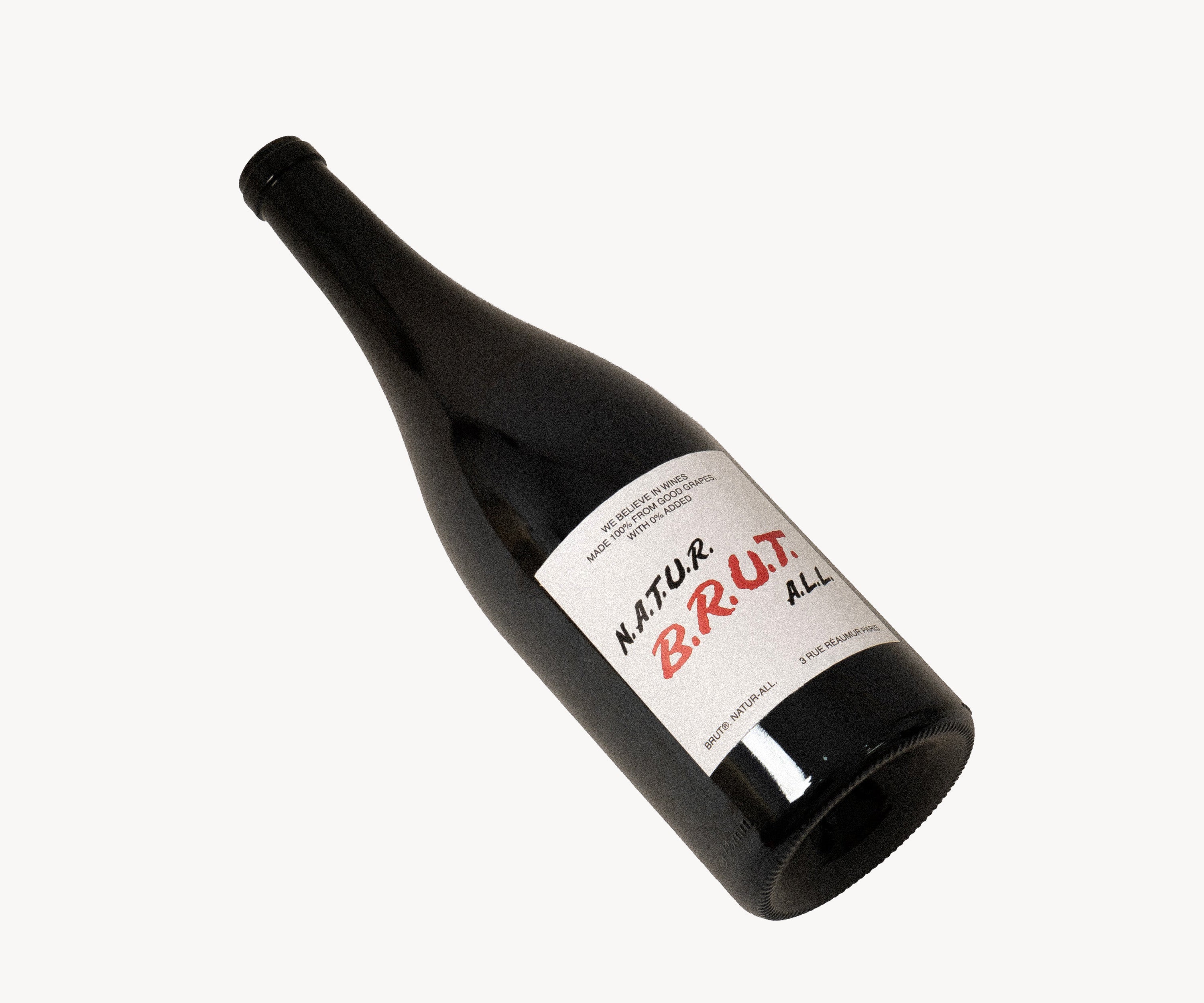 THE BRUT x NATURALL CAPSULE : Exclusive wine from the collaboration between Clovis Ochin and BRUT for the NATURALL natural wine fair. Each beanie features the colors of Clovis’s wines and can be worn two ways: with the label visible or not.