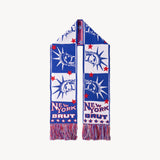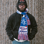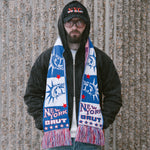 A knitted scarf with an iconic design inspired by an archive supporter scarf style that features fringing at both ends.