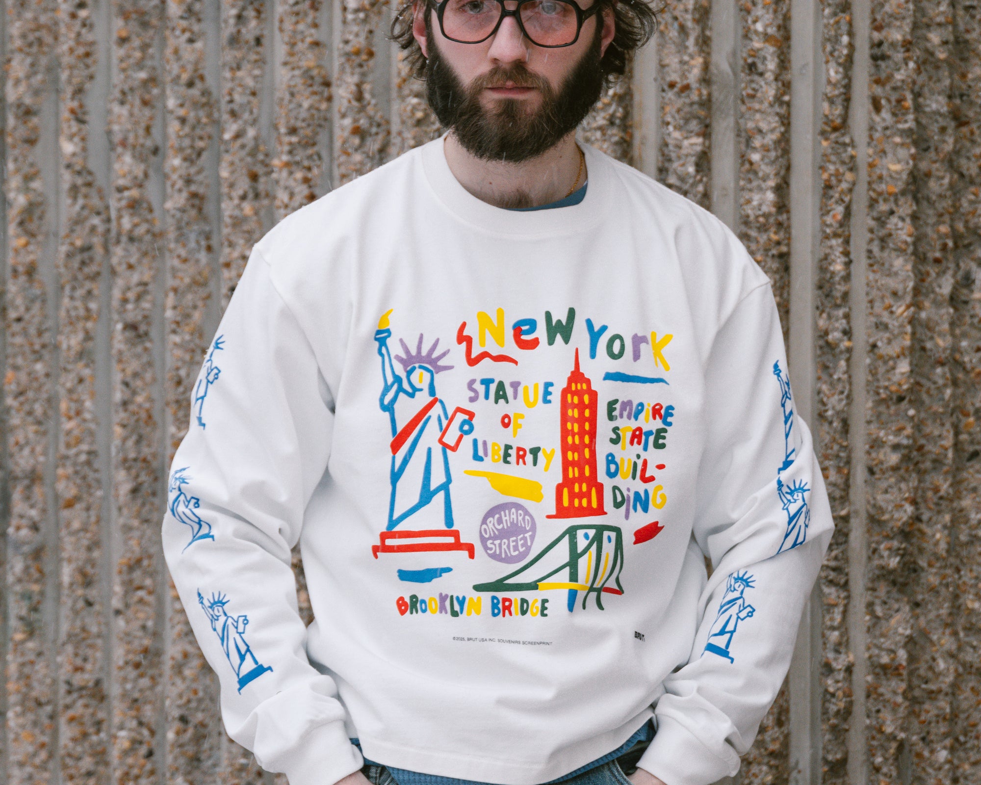 Brut Archives NEW YORK Souvenir graphics screen printed on front and sleeves.