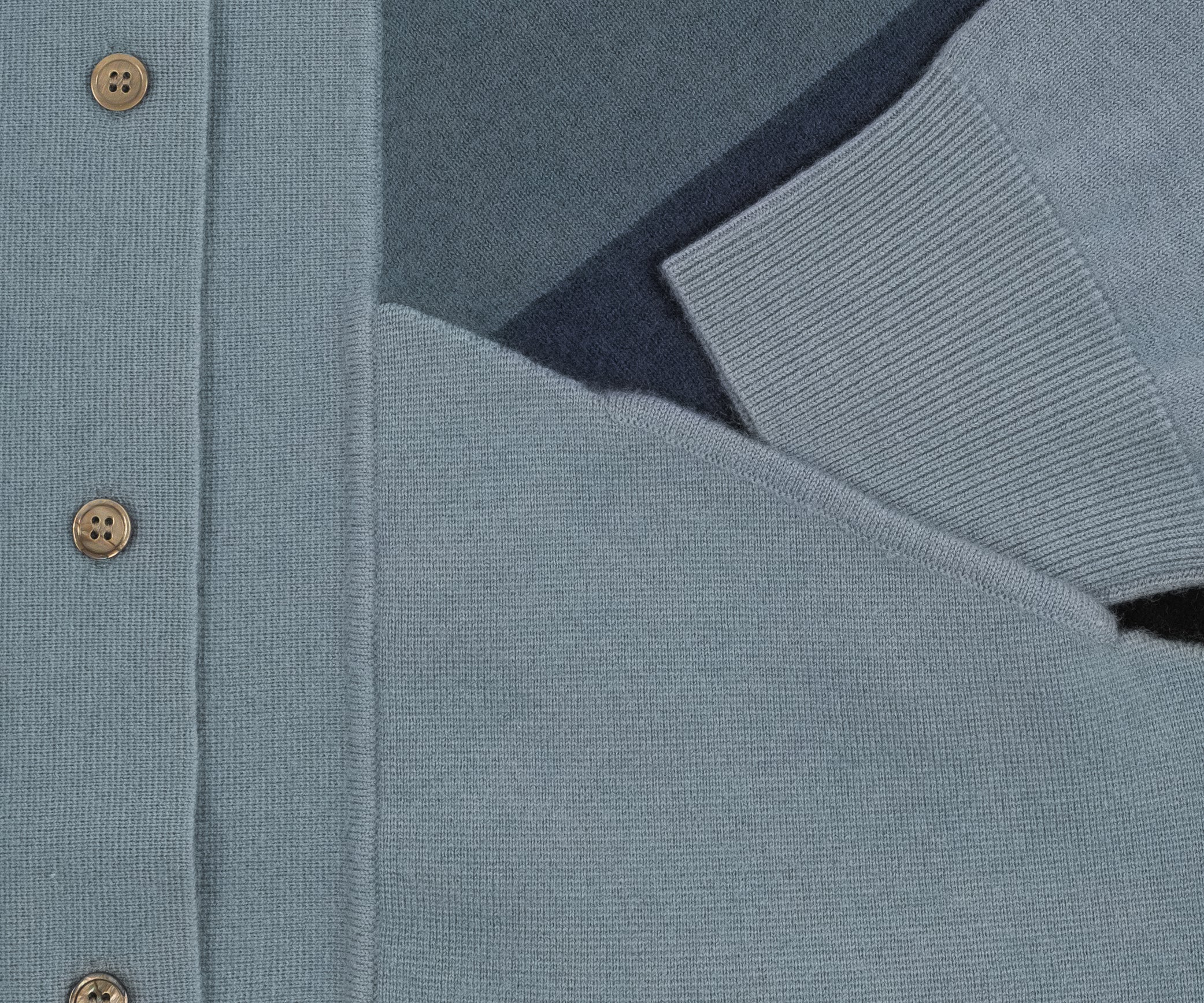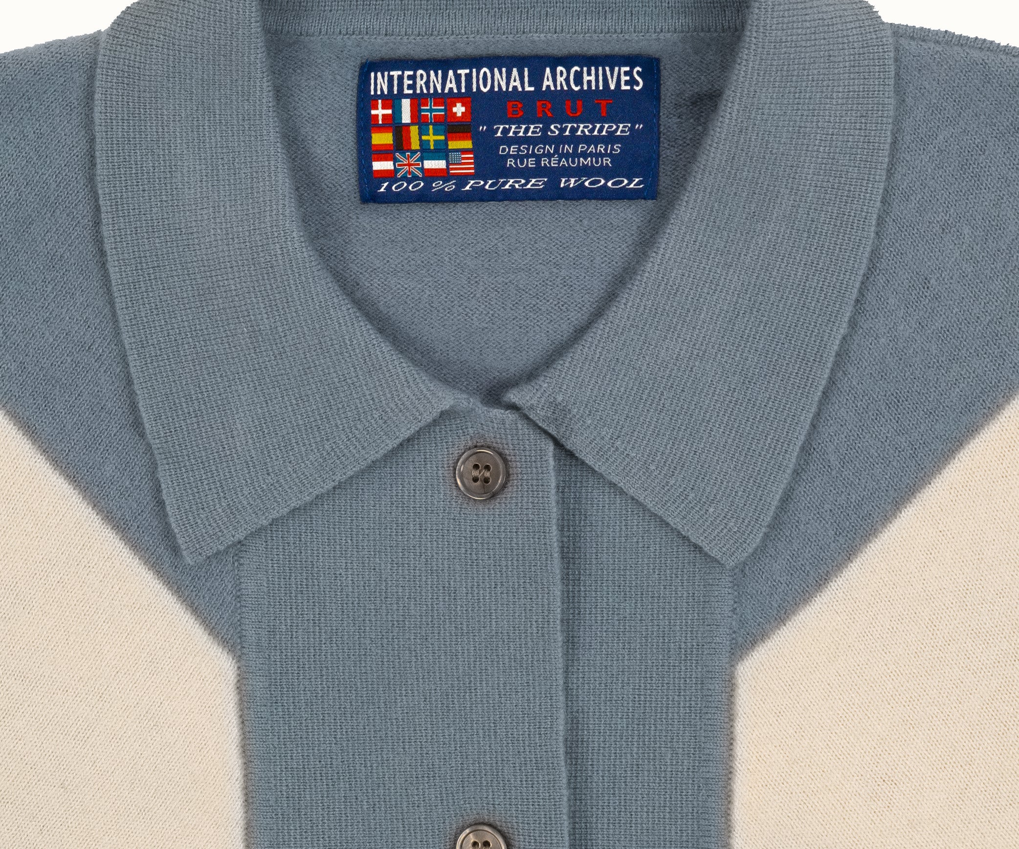 The OLD SCHOOL POLO is blending our love for vintage knitwear and for good craftsmanship. Made from 100% wool it features front stripes in a complimentary shade of blue. The button opening front is perfect for wearing it over anything.