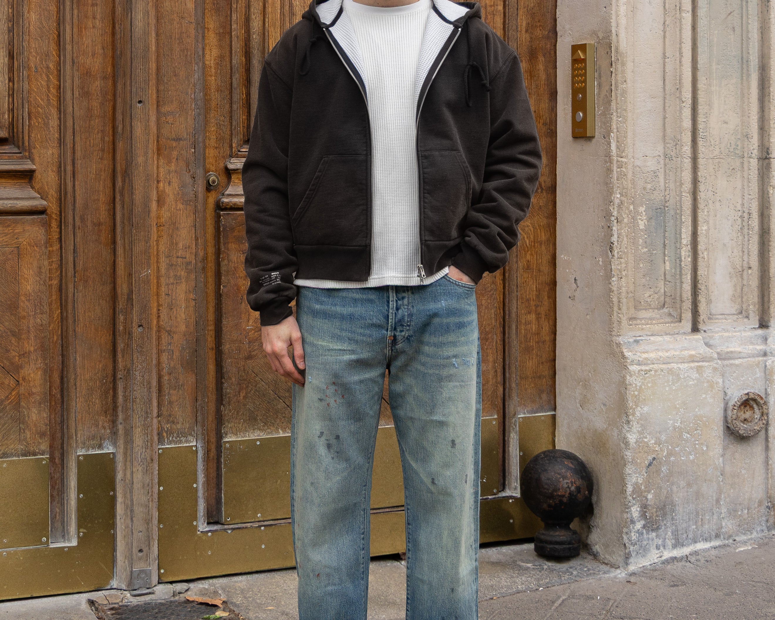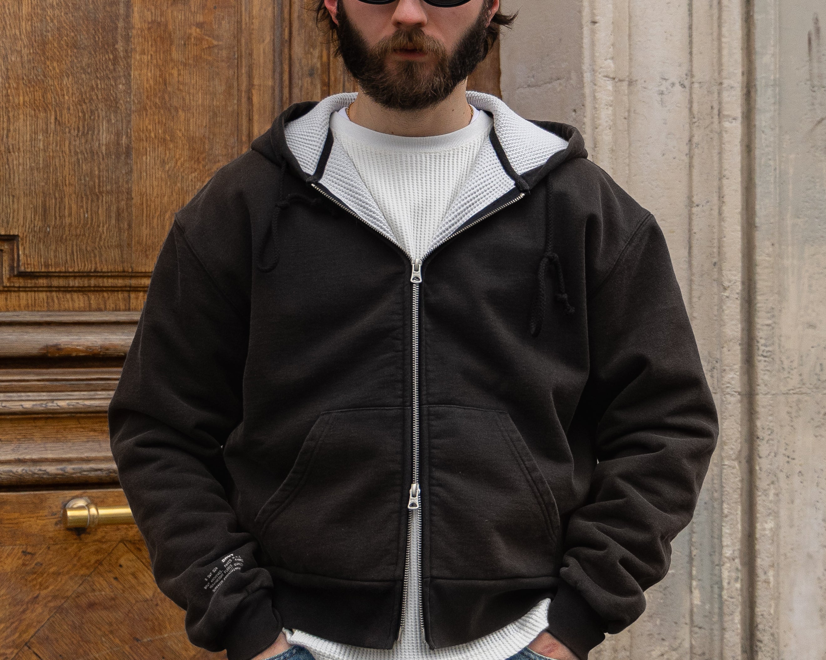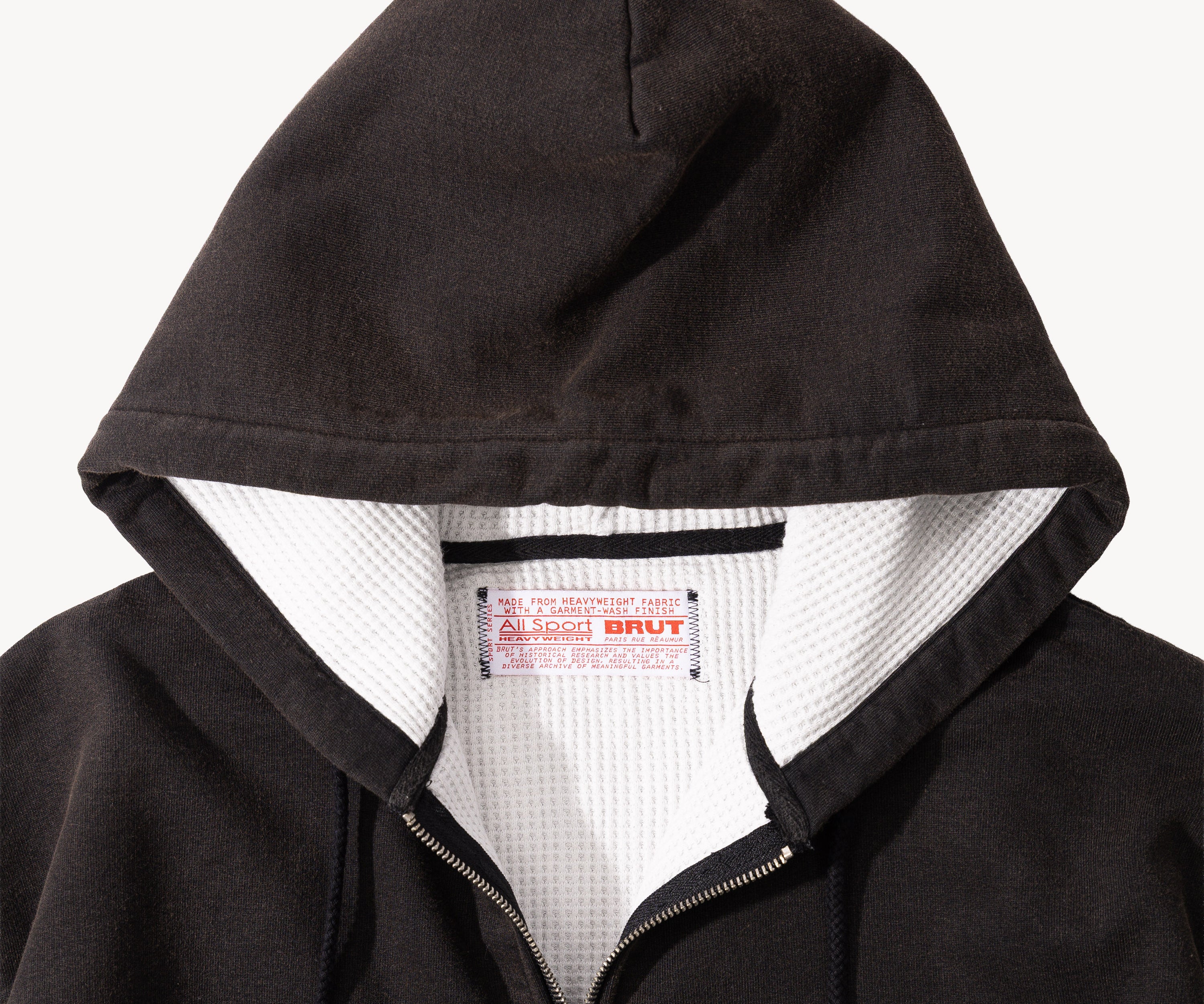 The THERMAL ZIP SWEAT is representing BRUT's vision of the perfect lined zipped hoodie. This sweatshirt is designed by our team in Paris after carefully studying the structure, design, weight, shape, and colours of our favorite vintage hoodies from our archive and adding our own details.