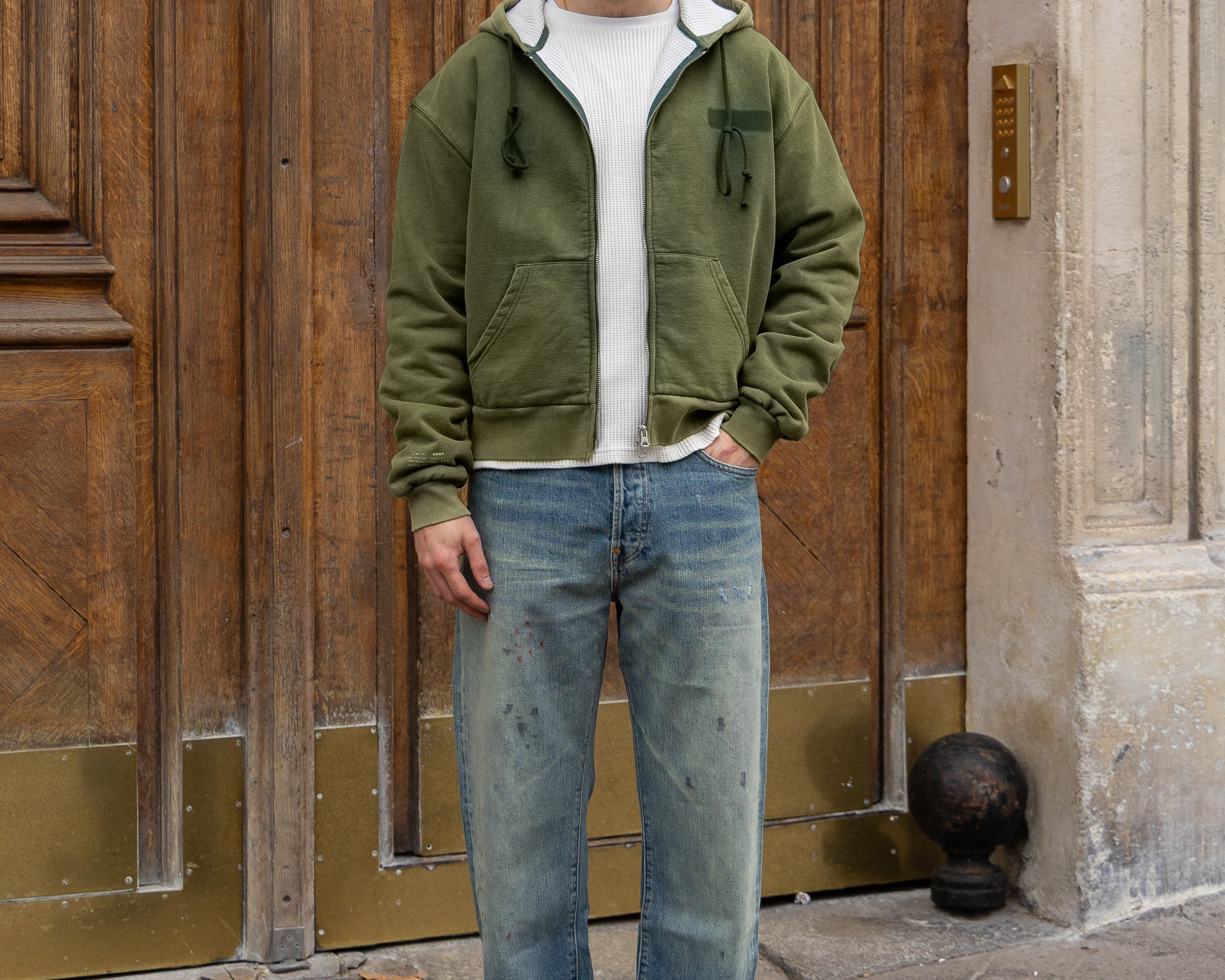 The THERMAL ZIP SWEAT is representing BRUT's vision of the perfect lined zipped hoodie. This sweatshirt is designed by our team in Paris after carefully studying the structure, design, weight, shape, and colours of our favorite vintage hoodies from our archive and adding our own details.
