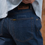Matches with the RIVET TRUCKER JACKET to make a 2-piece Canadian tuxedo.