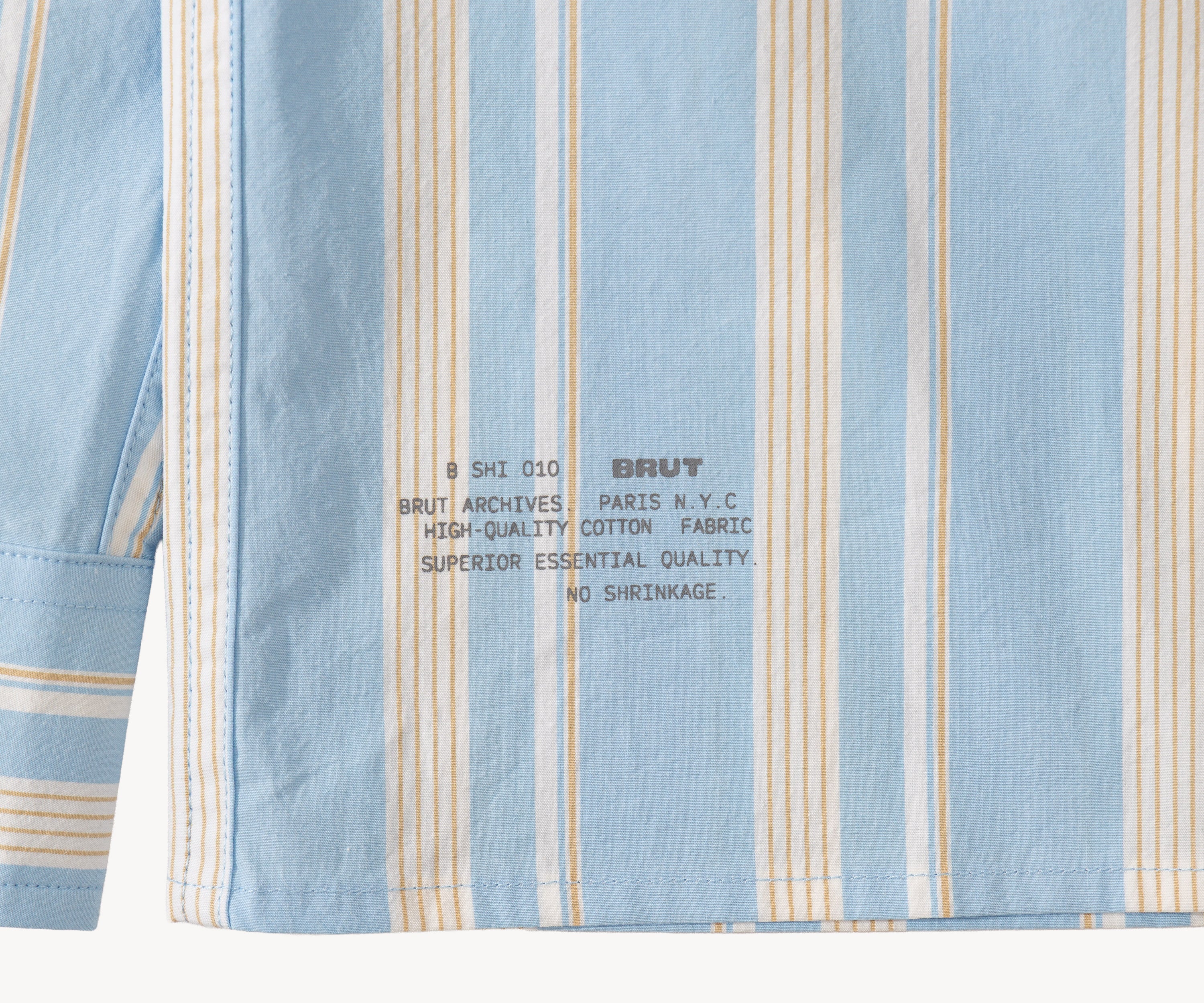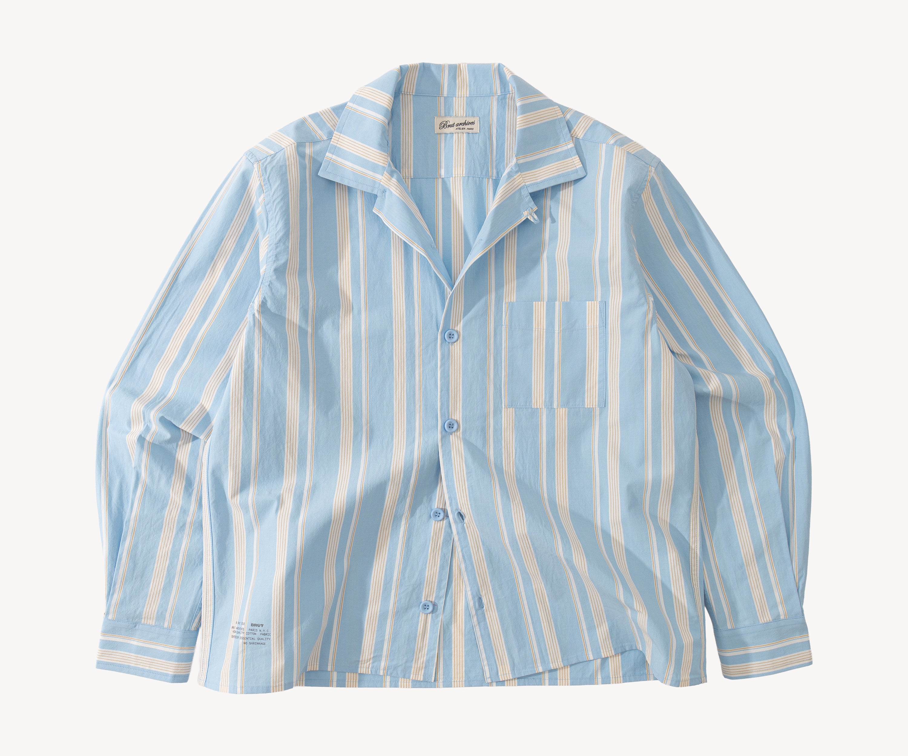 The RETIREE SHIRT draws inspiration from the classic open collar leisure shirts of the '70s. Crafted from high-quality cotton fabric.