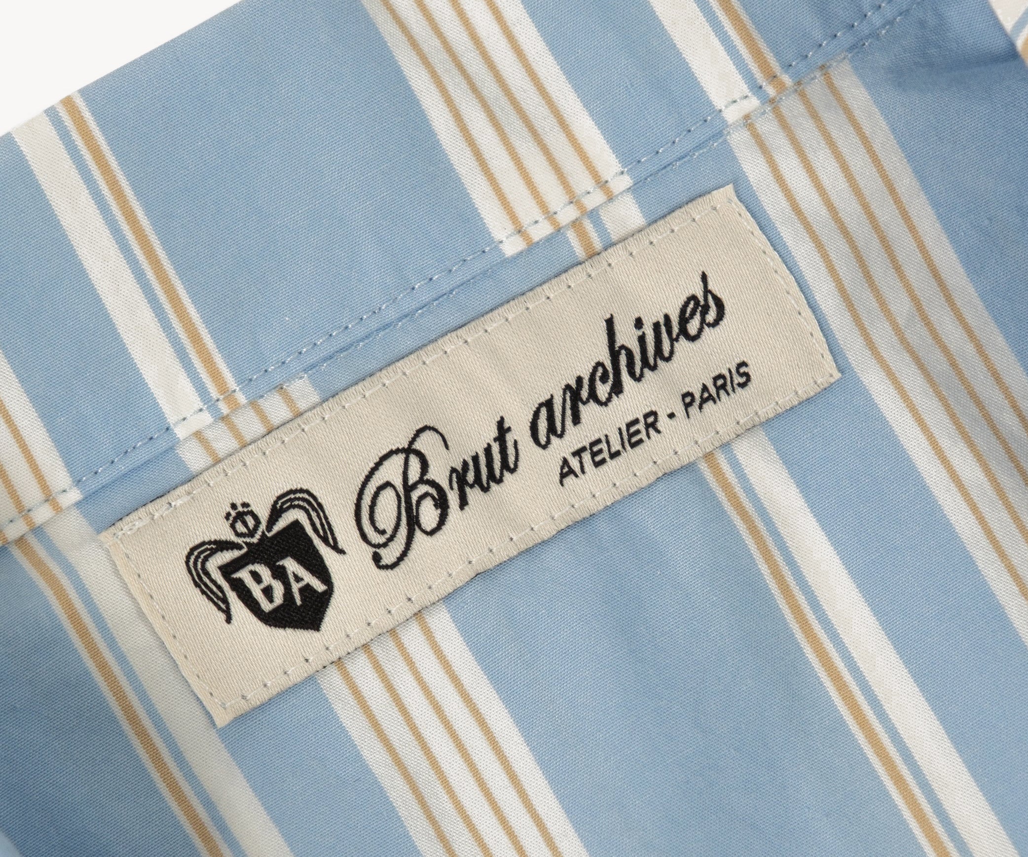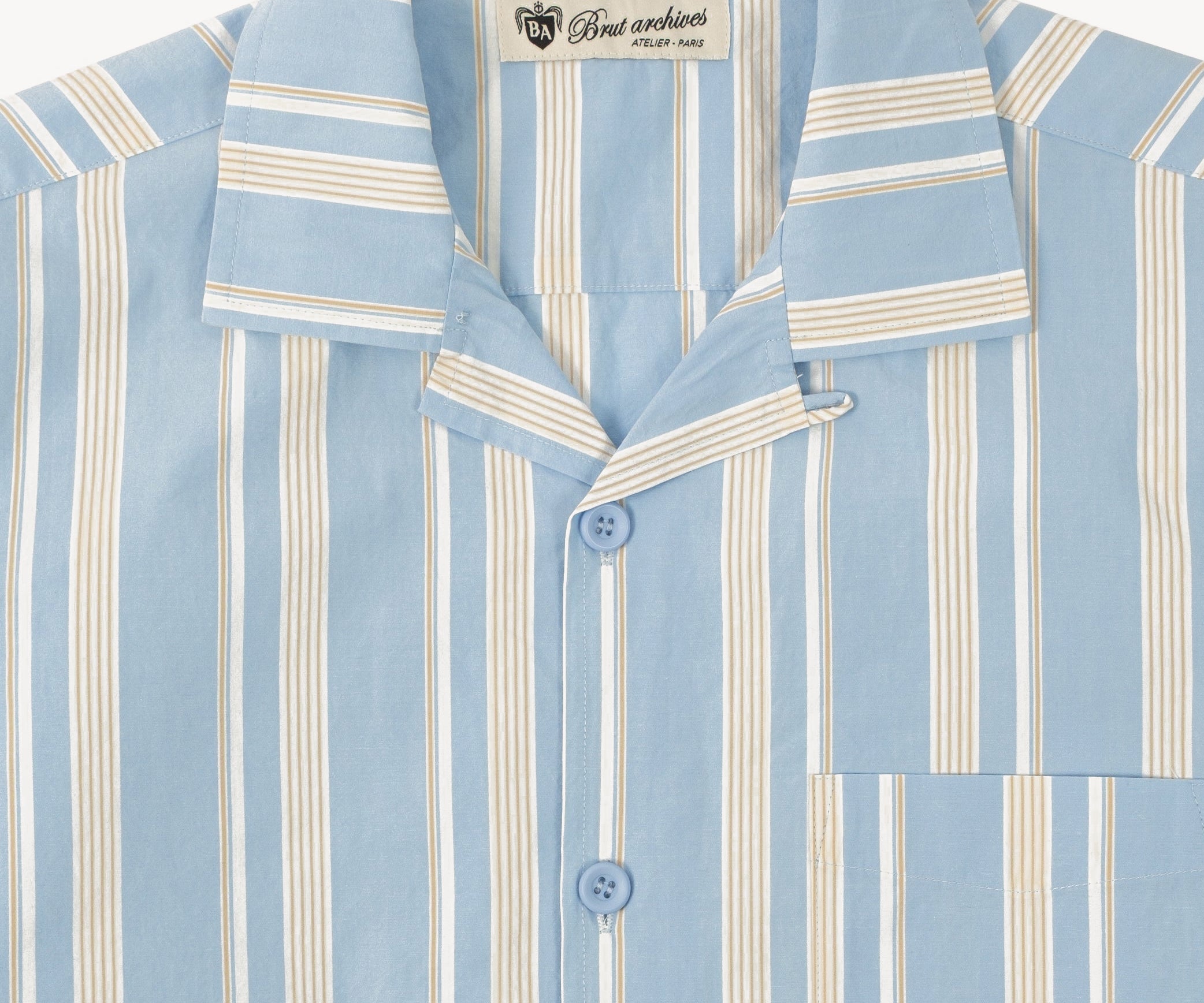 The RETIREE SHIRT draws inspiration from the classic open collar leisure shirts of the '70s. Crafted from high-quality cotton fabric.