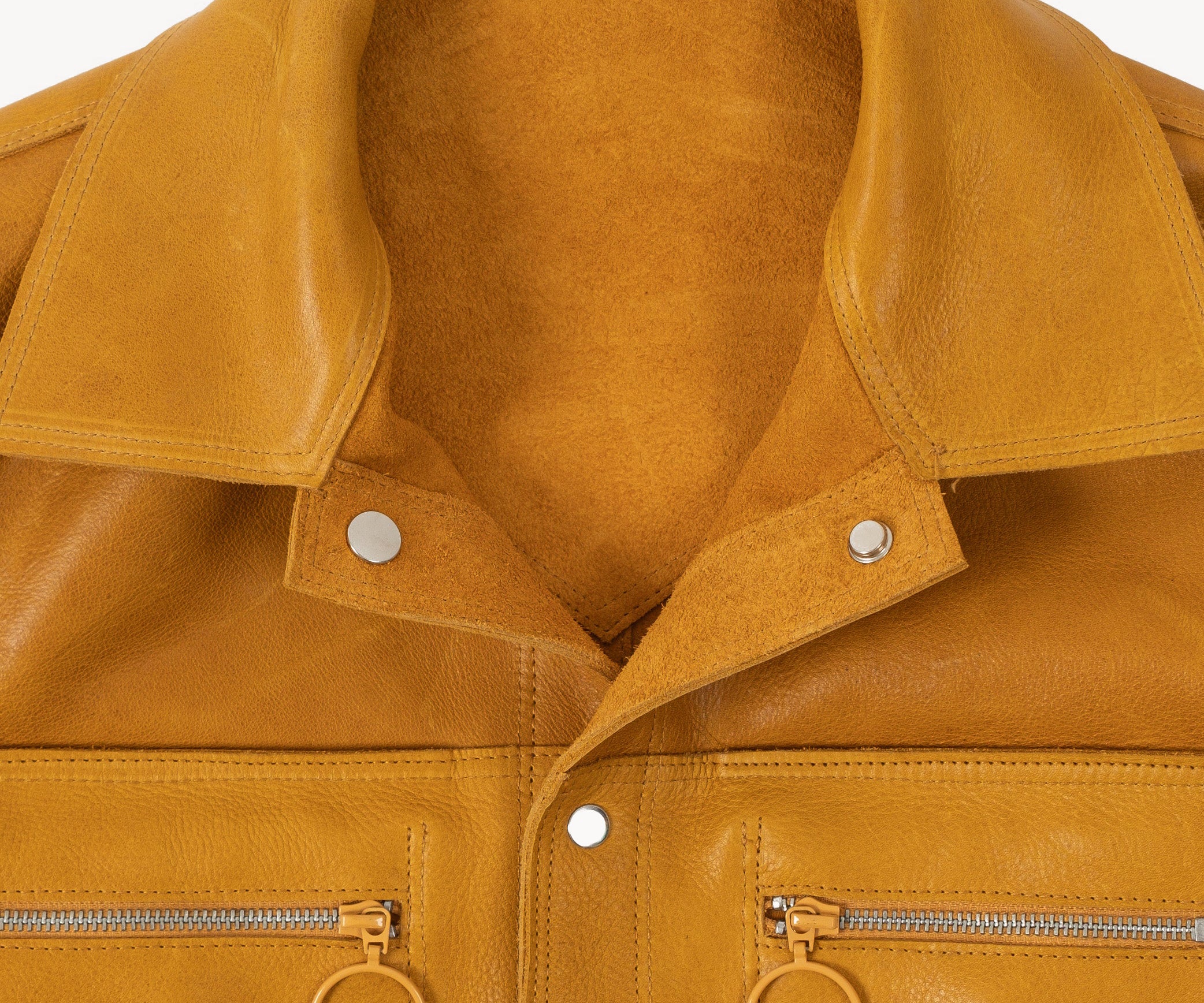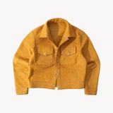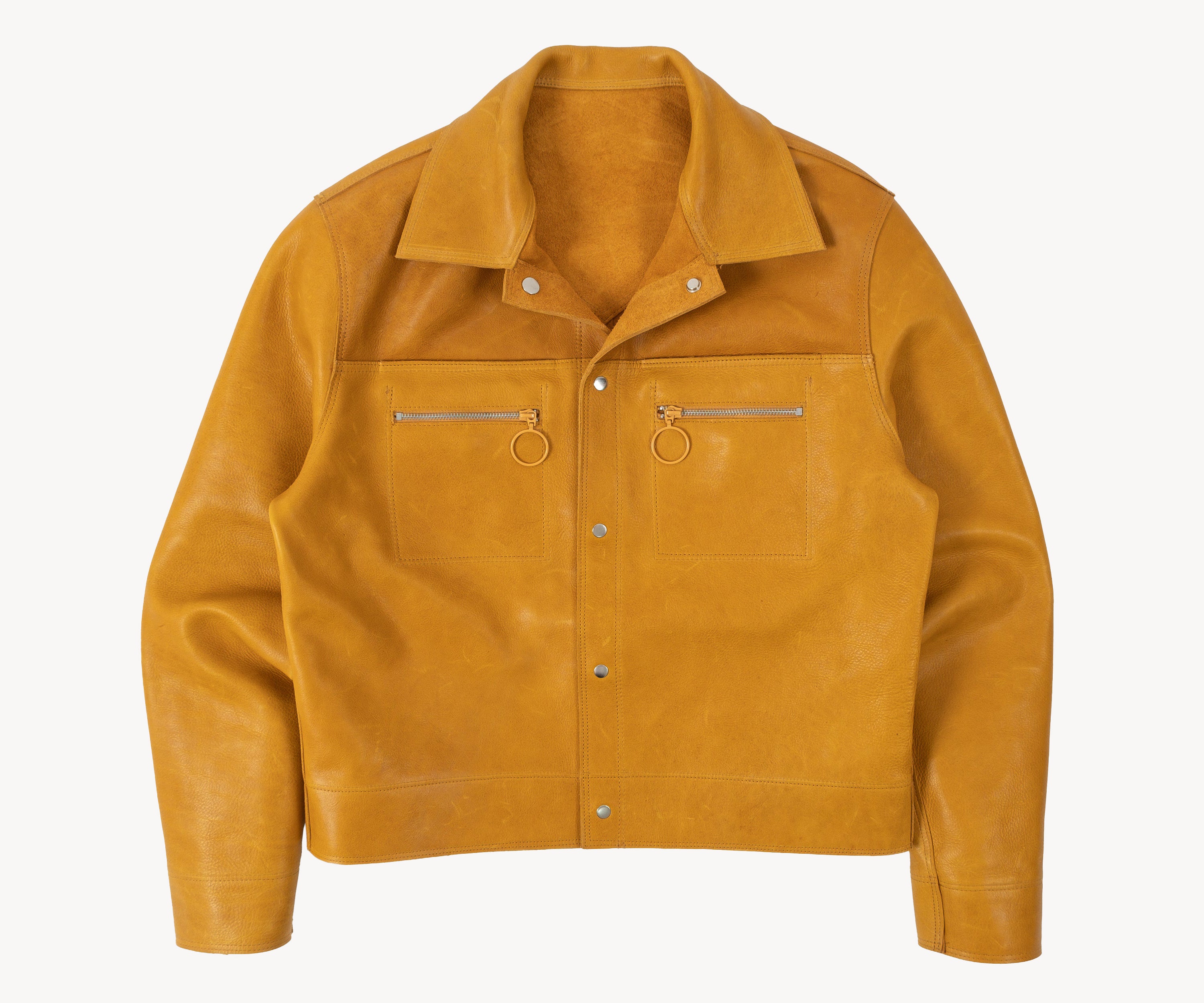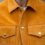 The REVERSIBLE TRUCKER JACKET is crafted from high quality full grain cowhide leather and hardware.