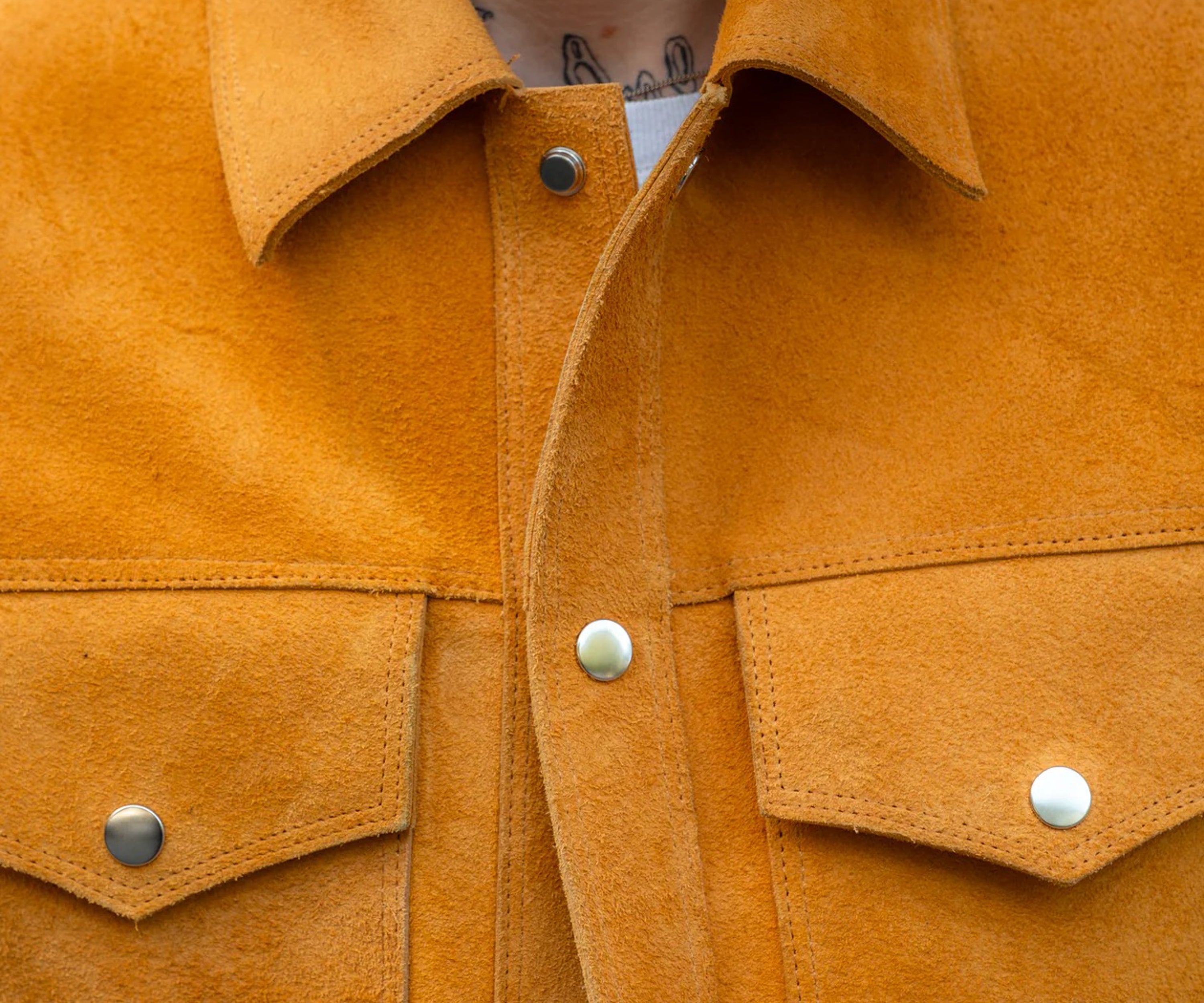 Snap button closure on front.