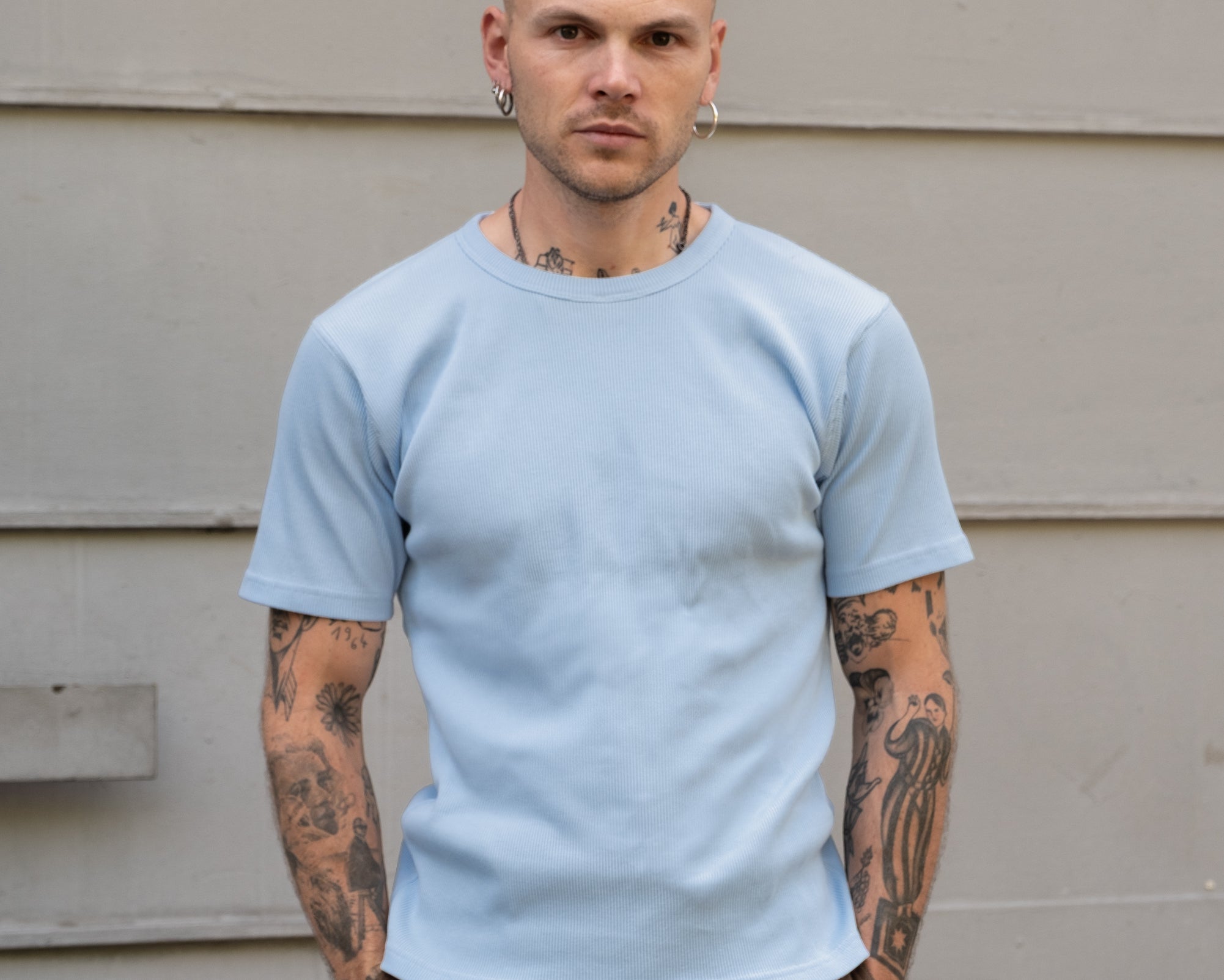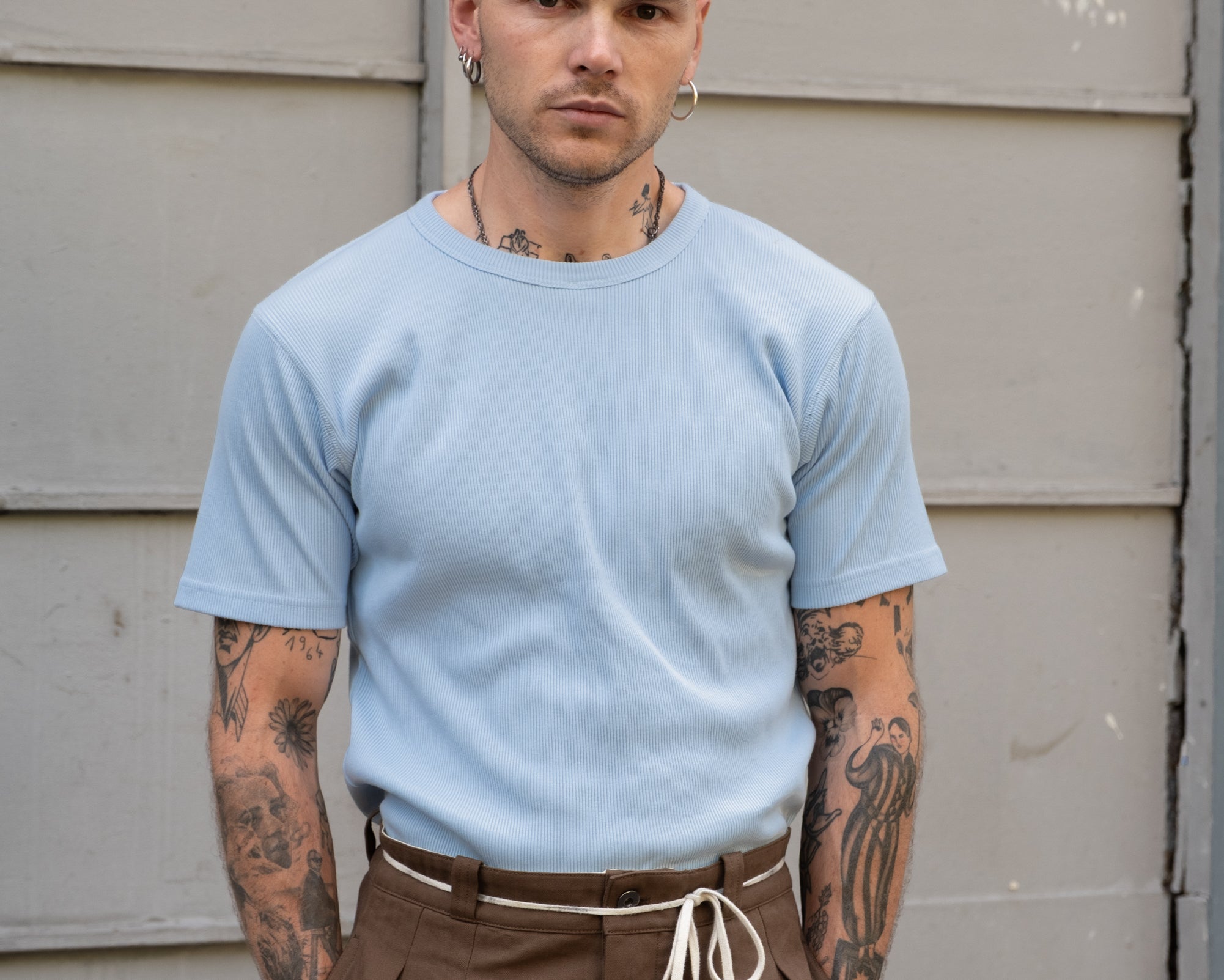 THE RIB TEE draws inspiration from the classic 50's French "tricot", a timeless essential for men at the time, and one that remains just as relevant today. Crafted from high-quality cotton fabric.