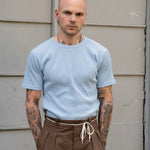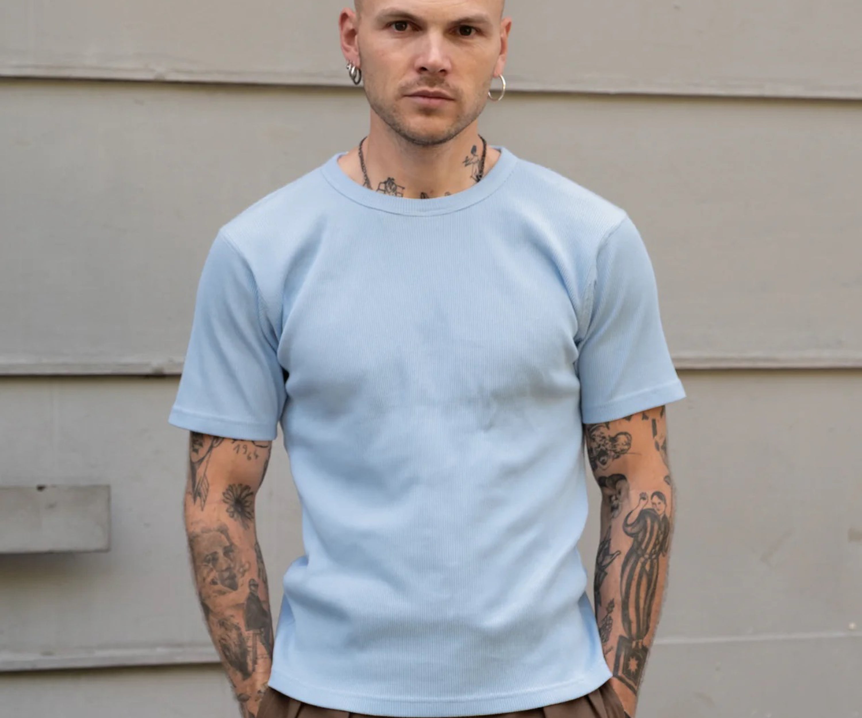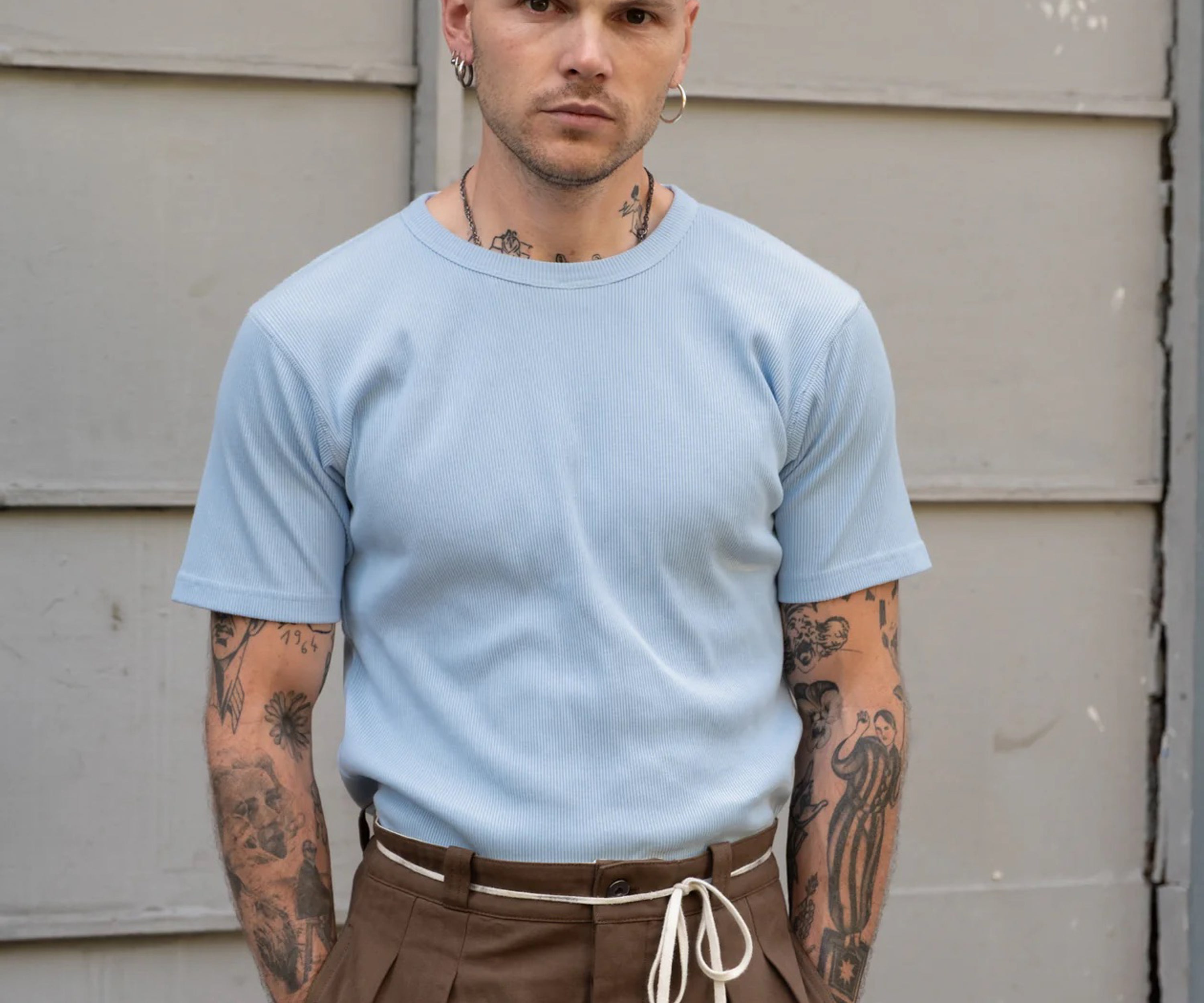 THE RIB TEE draws inspiration from the classic 50's French "tricot", a timeless essential for men at the time, and one that remains just as relevant today. Crafted from high-quality cotton fabric.