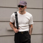 THE RIB TEE draws inspiration from the classic 50's French "tricot", a timeless essential for men at the time, and one that remains just as relevant today. Crafted from high-quality cotton fabric.