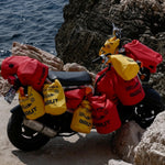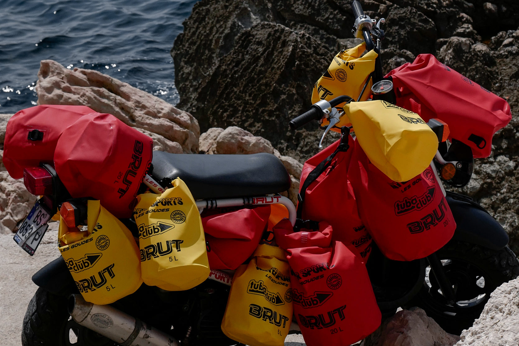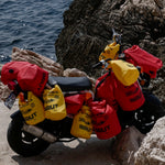 The SEALED BAG is made to keeps your accessories dry while your aquatic activities. Put your gear in bag, grab top woven tape and roll down tightly 3 to 5 times and then plug buckle to complete seal.