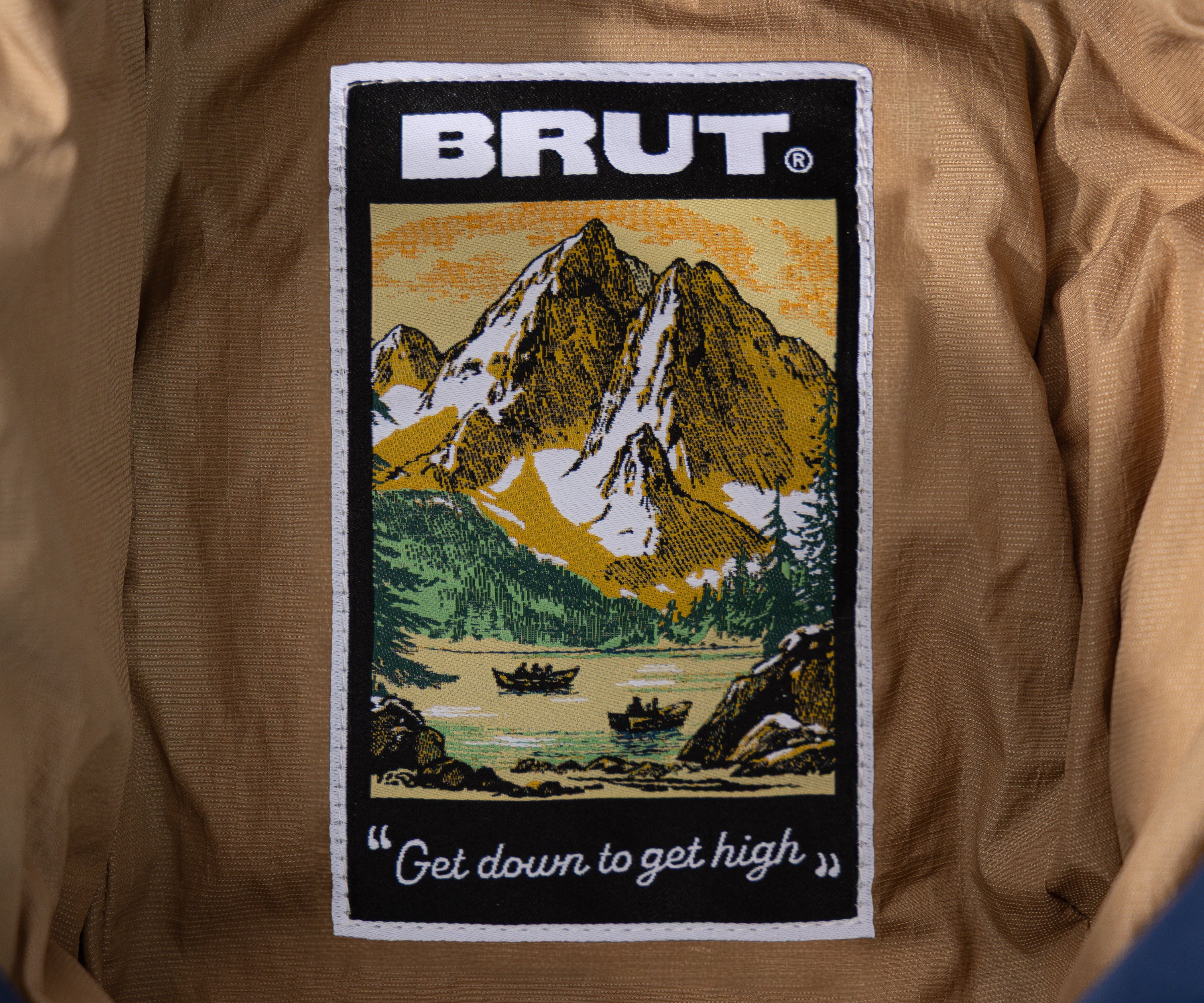 100% nylon. Down filling. Made in China.
