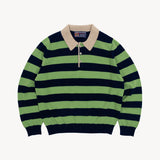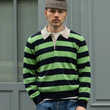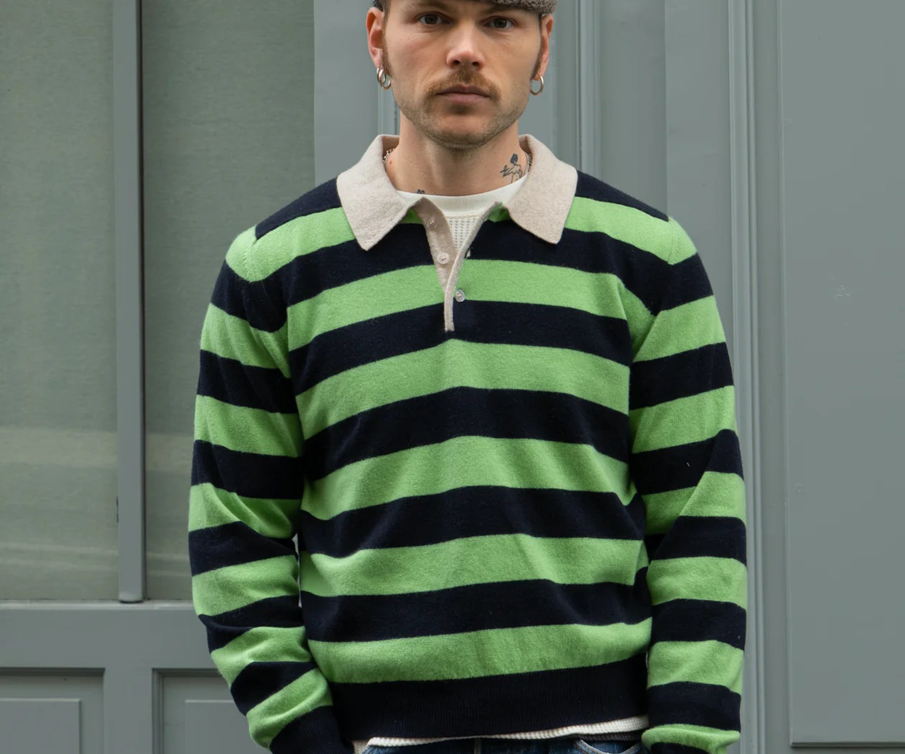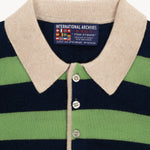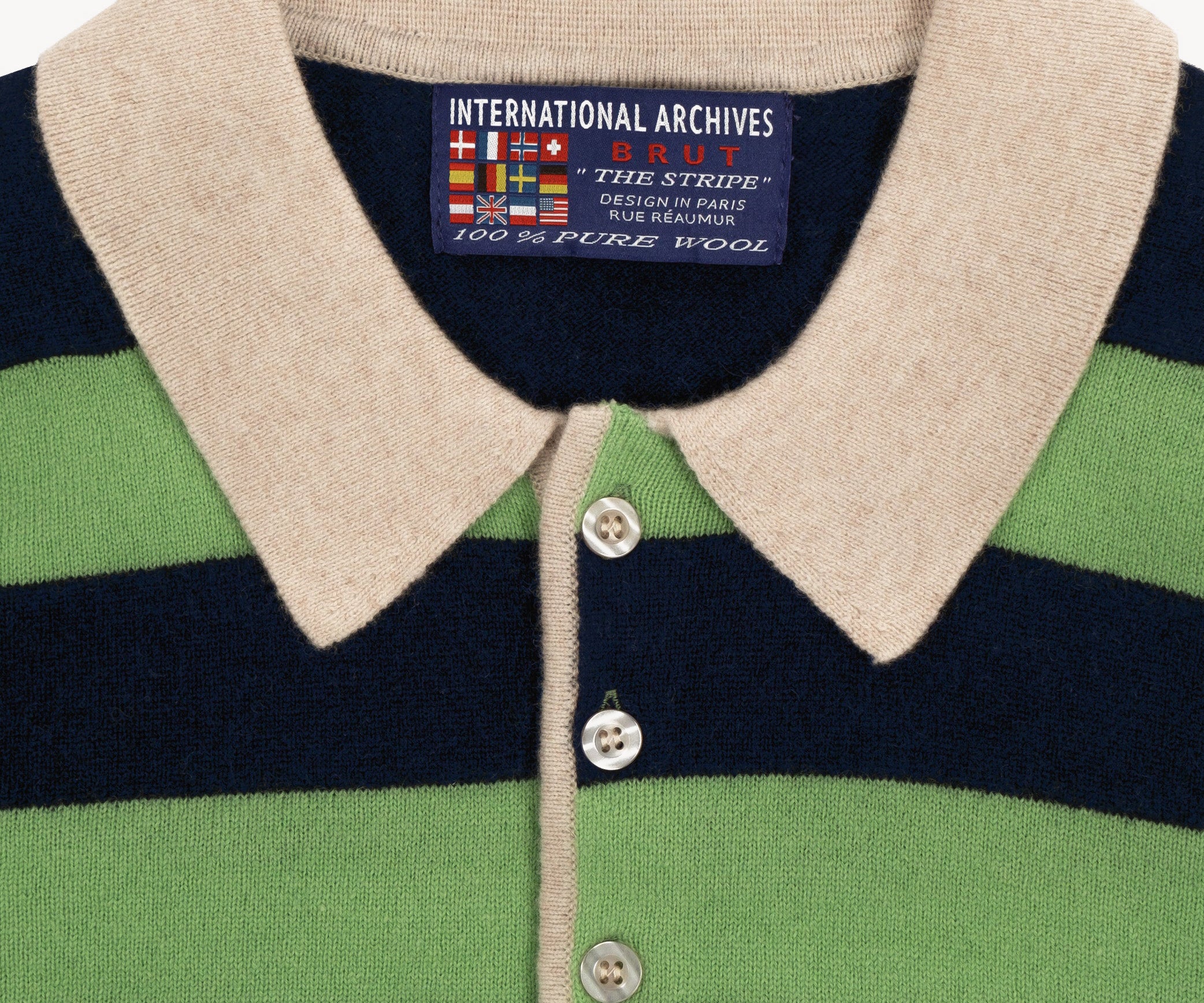 ID : The STRIPED POLO is blending our love for vintage knitwear and for good craftsmanship. Made from 100% wool it features bold front stripes and a contrasting collar.