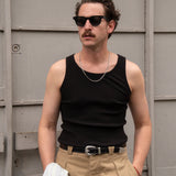 The TANK TOP draws inspiration from the 60's french "marcel" . Crafted from high-quality cotton fabric.