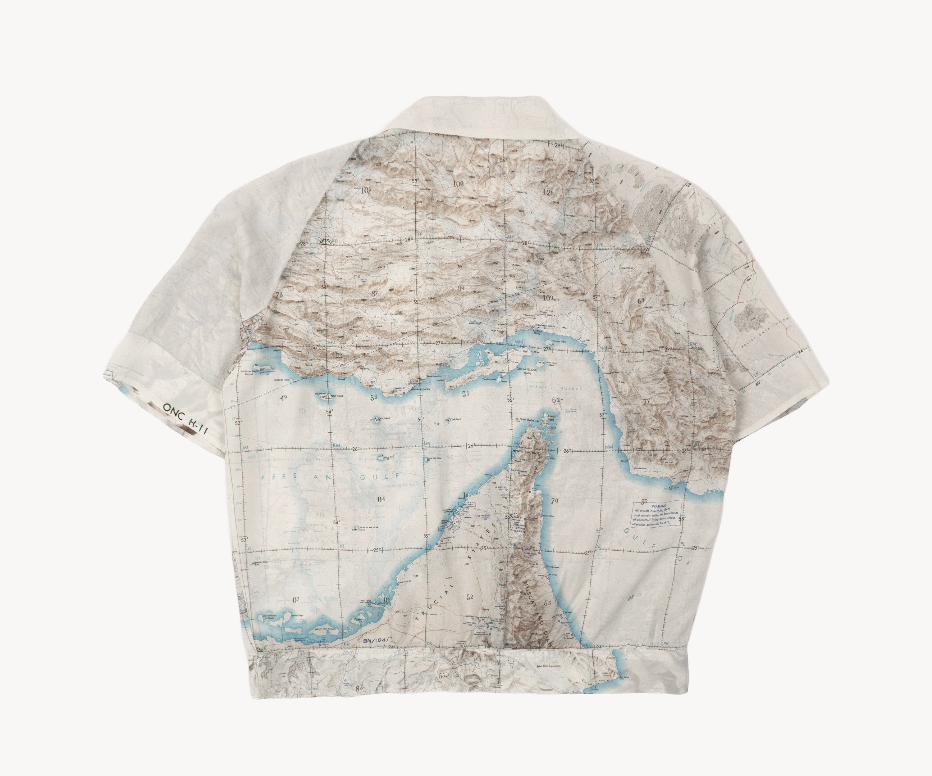 Made from original escape maps from United States Air Force. Each shirt is unique and handmade in Paris. To respect this legacy all of our rework product are made on vintage equipment.