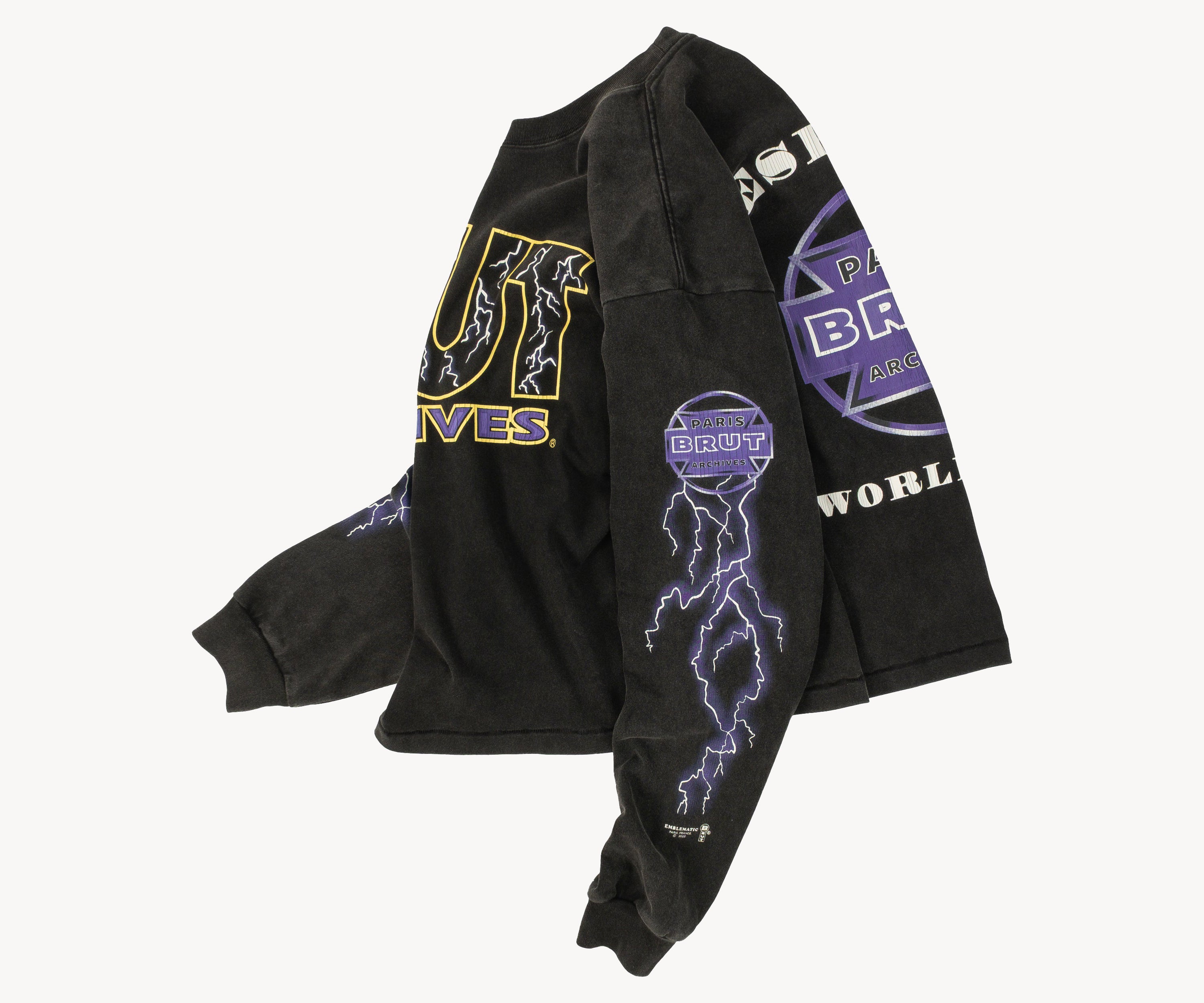 Brut Archives - Thunderbolt graphics screen printed on front, back and sleeves.
