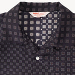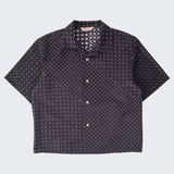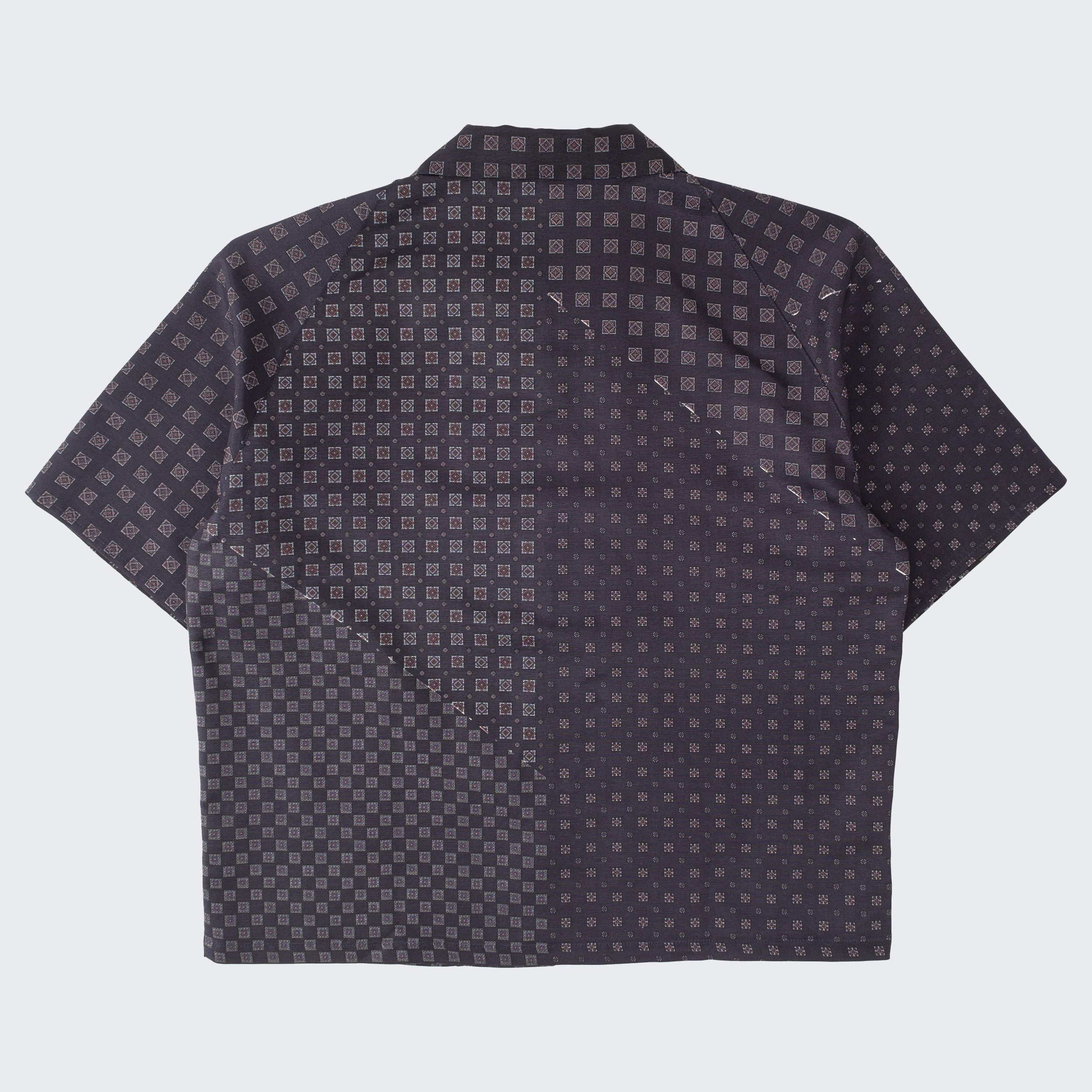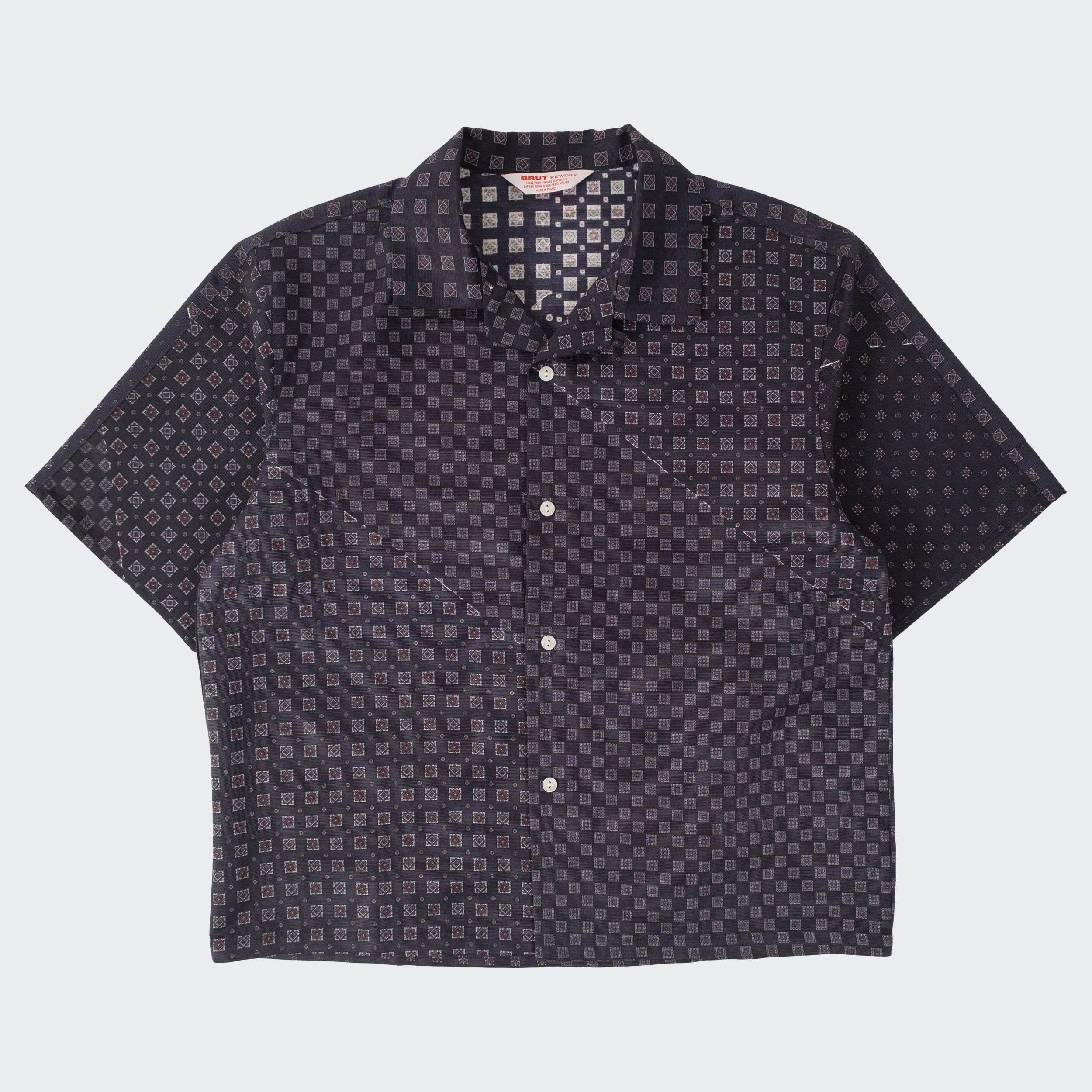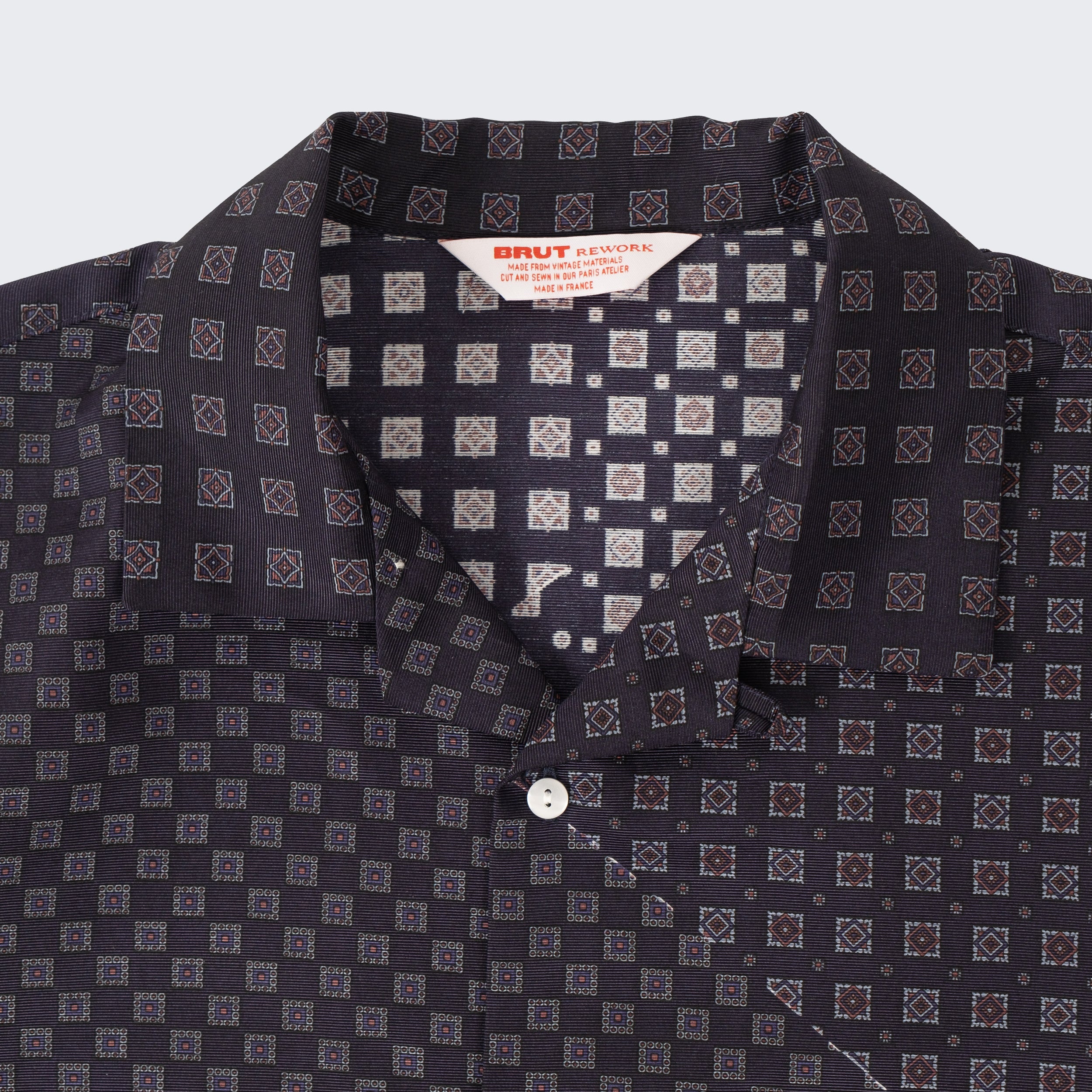 The TIE SHIRT is a mix of two rare shirts we have in our archive from the 1940's and 50's. The design consists of a short sleeves cropped shirt with a loop collar details. It is crafted from different deadstock fabrics which were intended for necktie manufacturing.