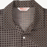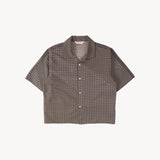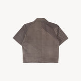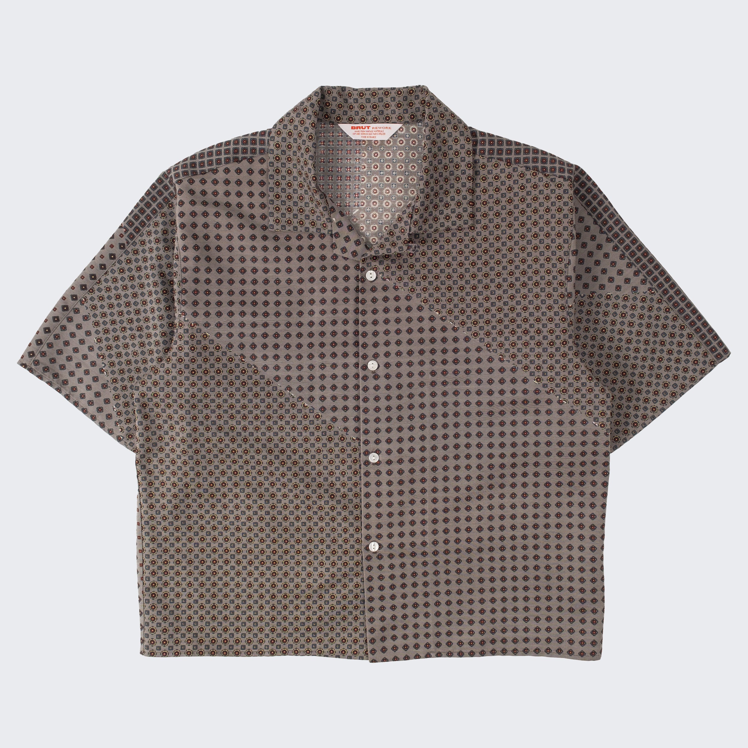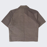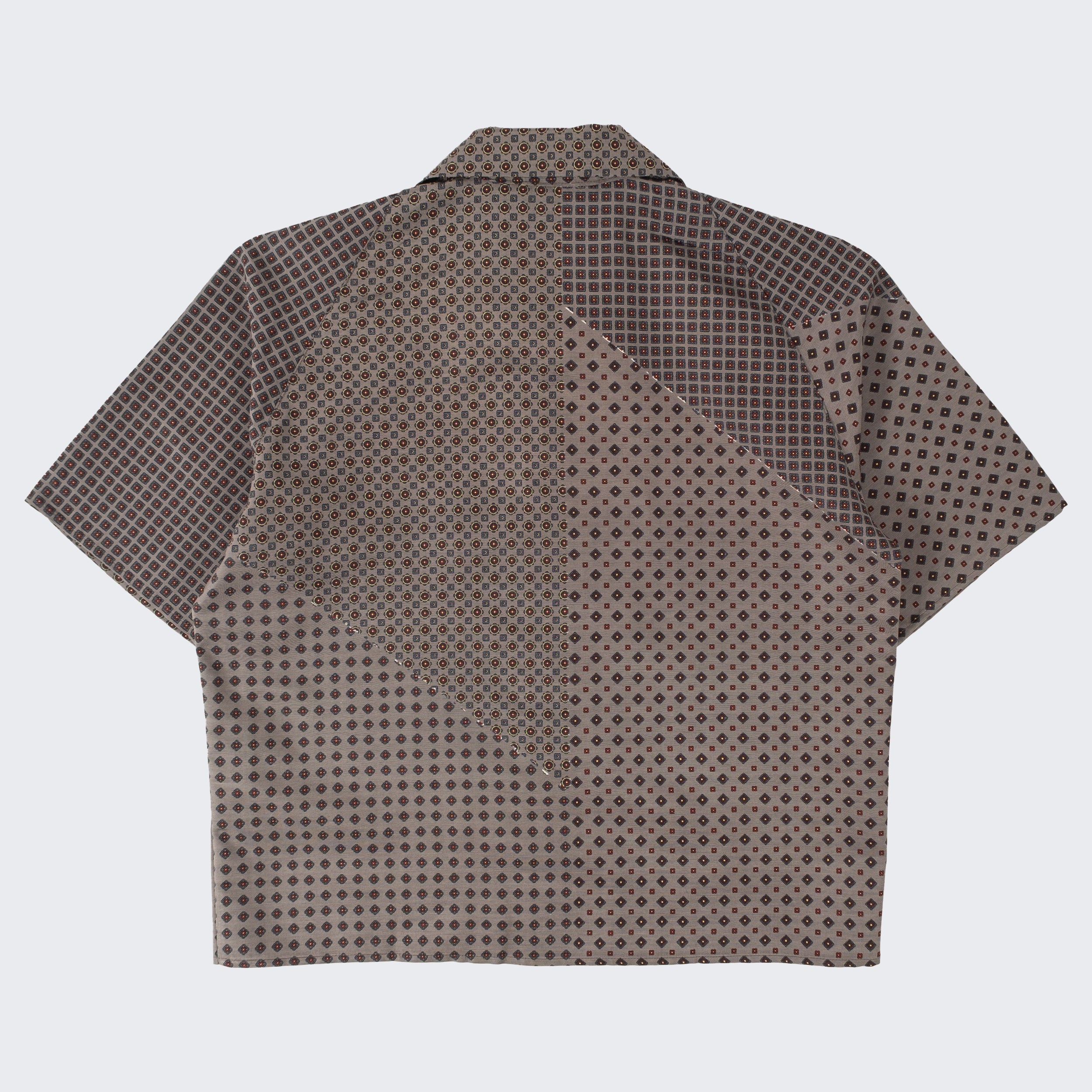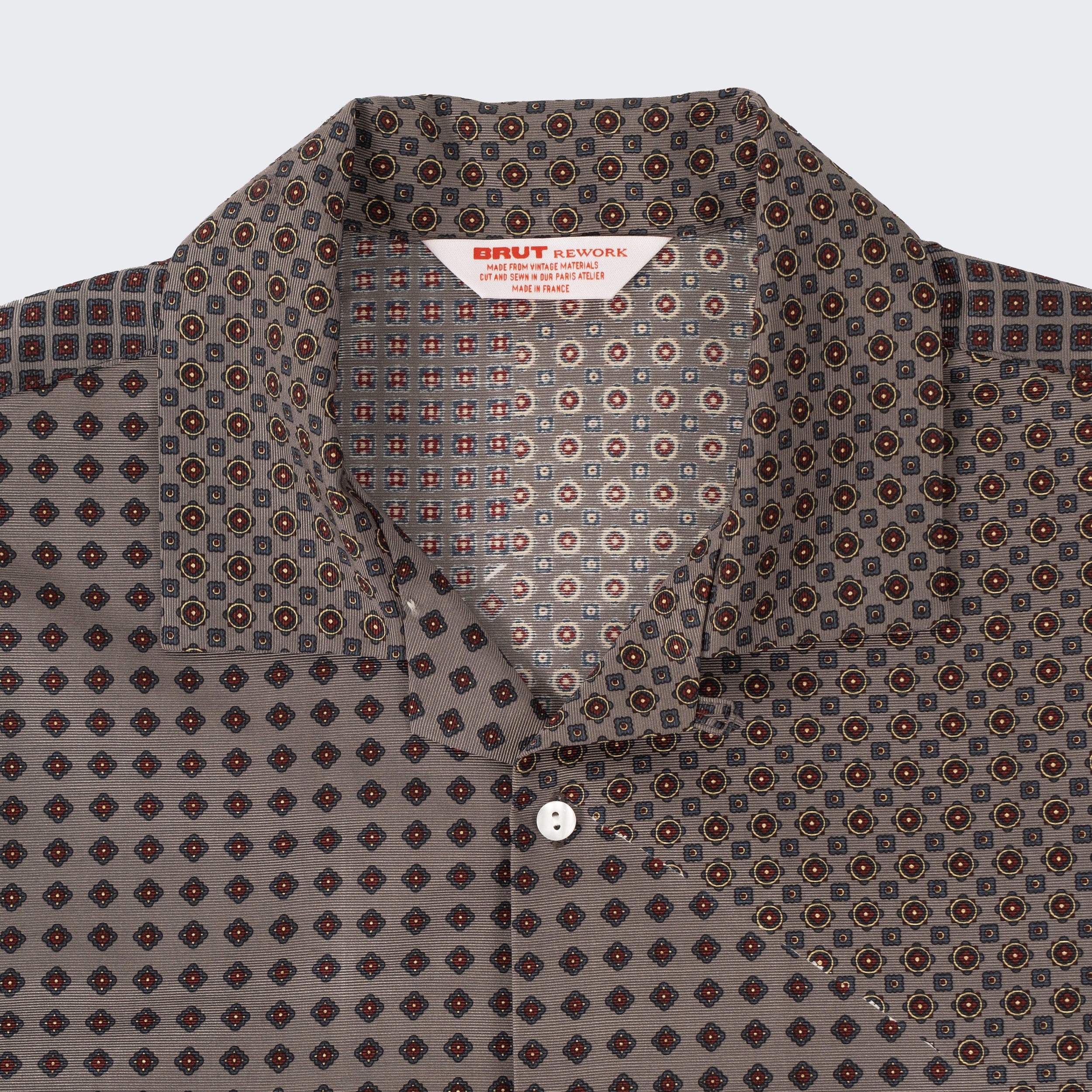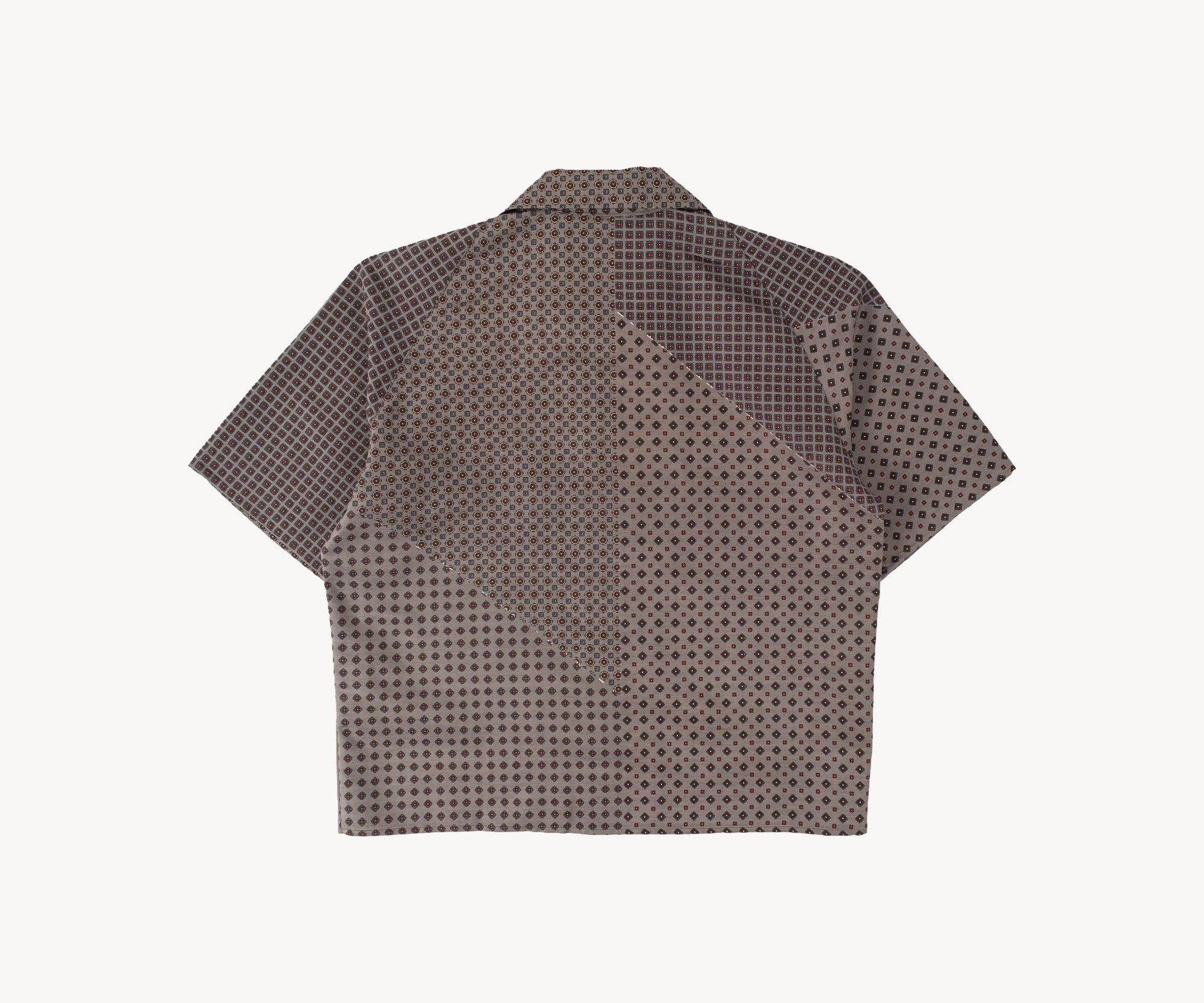 The TIE SHIRT is a mix of two rare shirts we have in our archive from the 1940's and 50's. The design consists of a short sleeves cropped shirt with a loop collar details. It is crafted from different deadstock fabrics which were intended for necktie manufacturing.