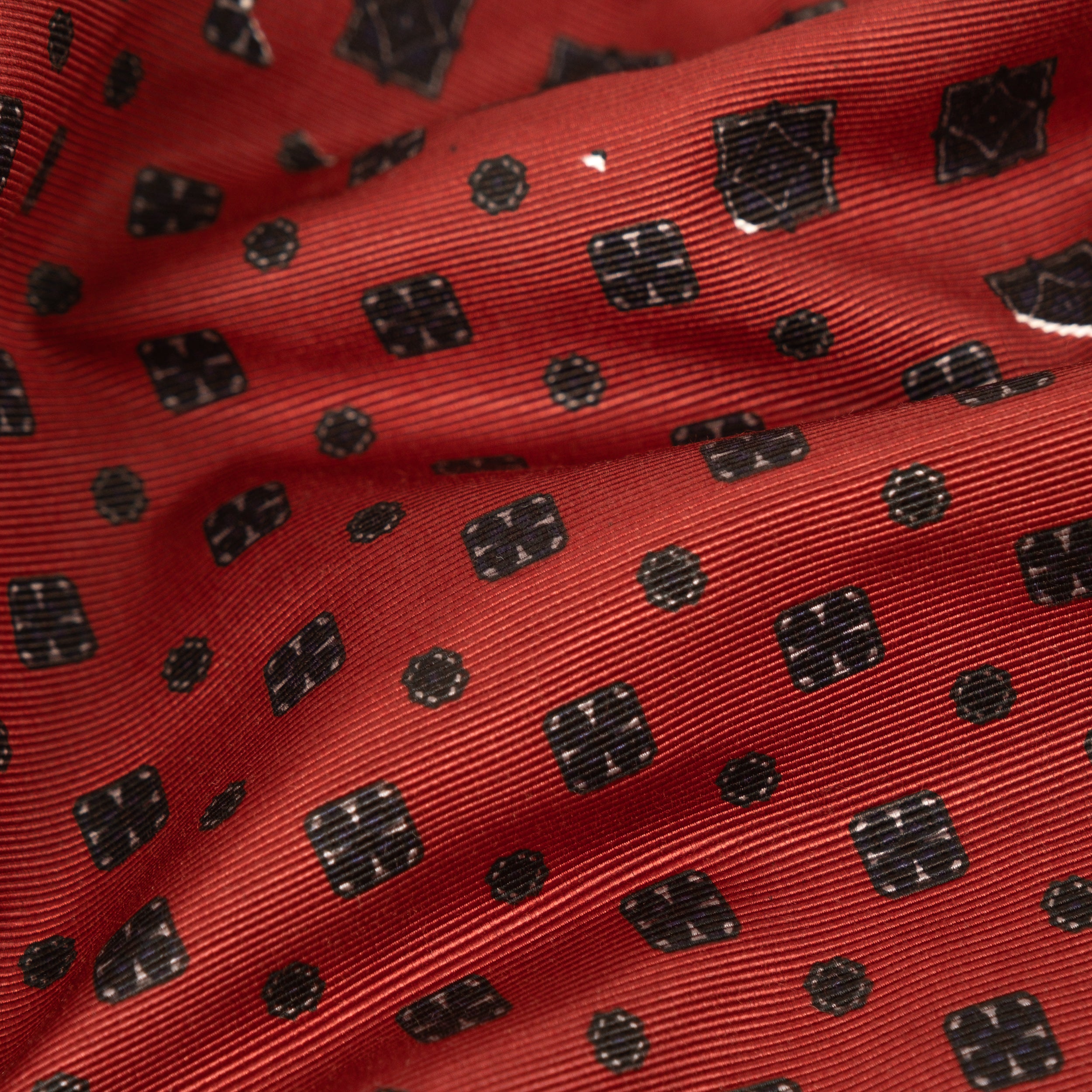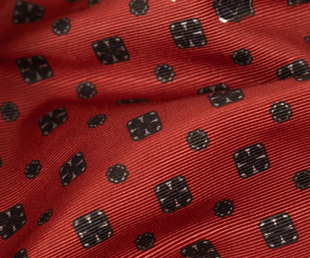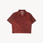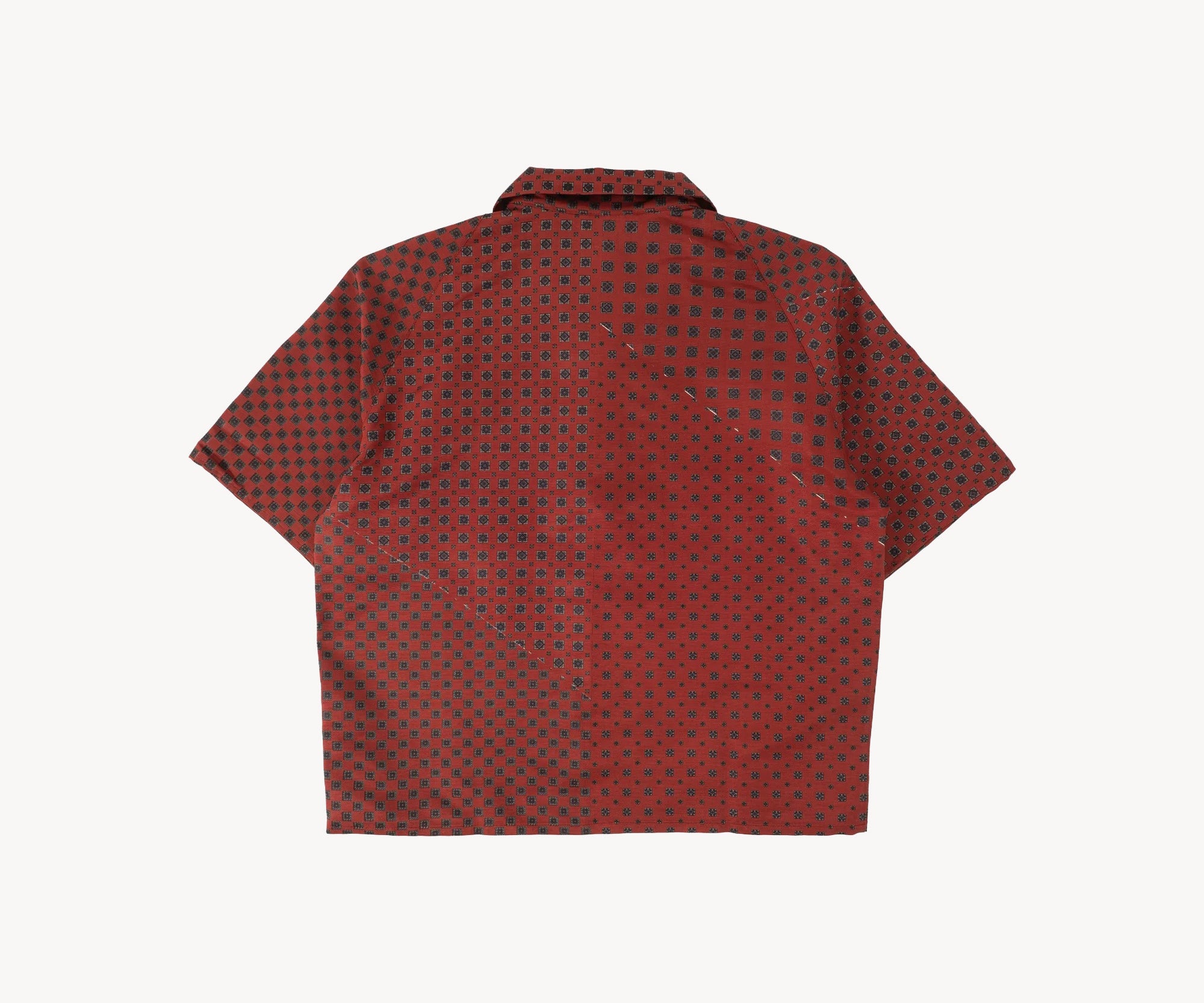 The TIE SHIRT is a mix of two rare shirts we have in our archive from the 1940's and 50's. The design consists of a short sleeves cropped shirt with a loop collar details. It is crafted from different deadstock fabrics which were intended for necktie manufacturing.