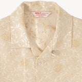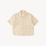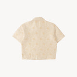 The TIE SHIRT is a mix of two rare shirts we have in our archive from the 1940's and 50's. The design consists of a short sleeves cropped shirt with a loop collar details. It is crafted from different deadstock fabrics which were intended for necktie manufacturing.