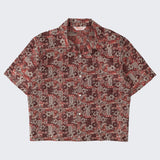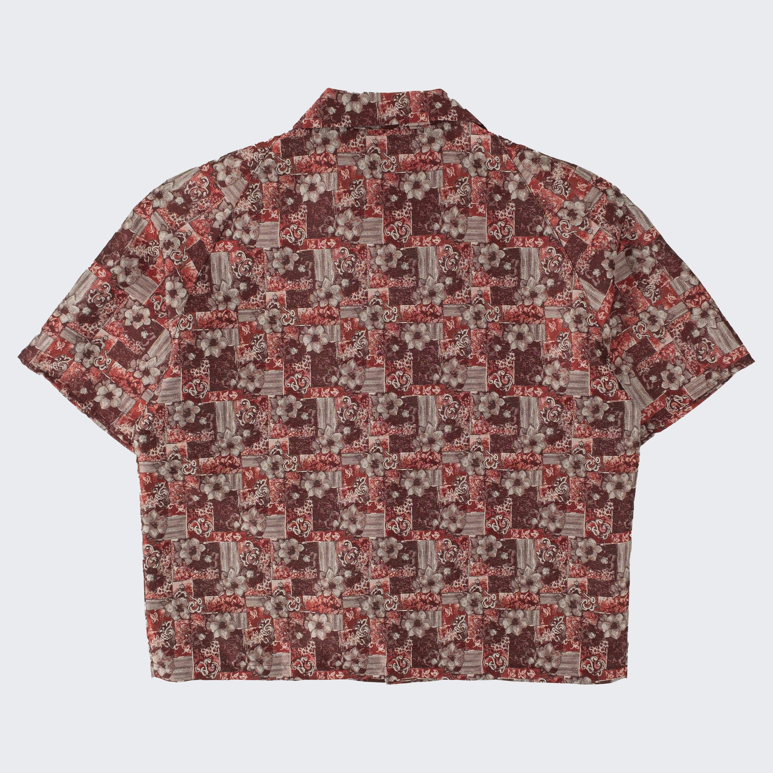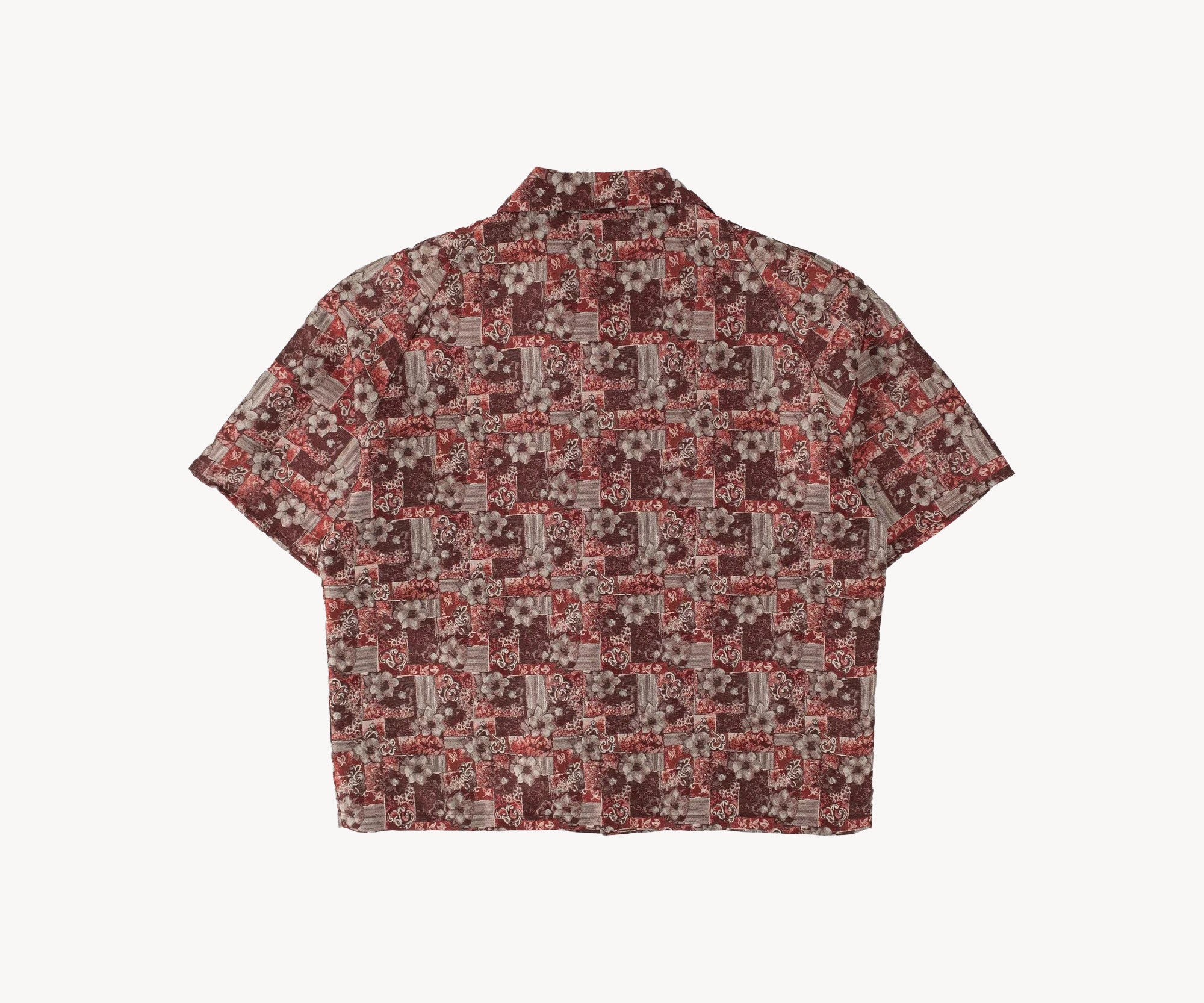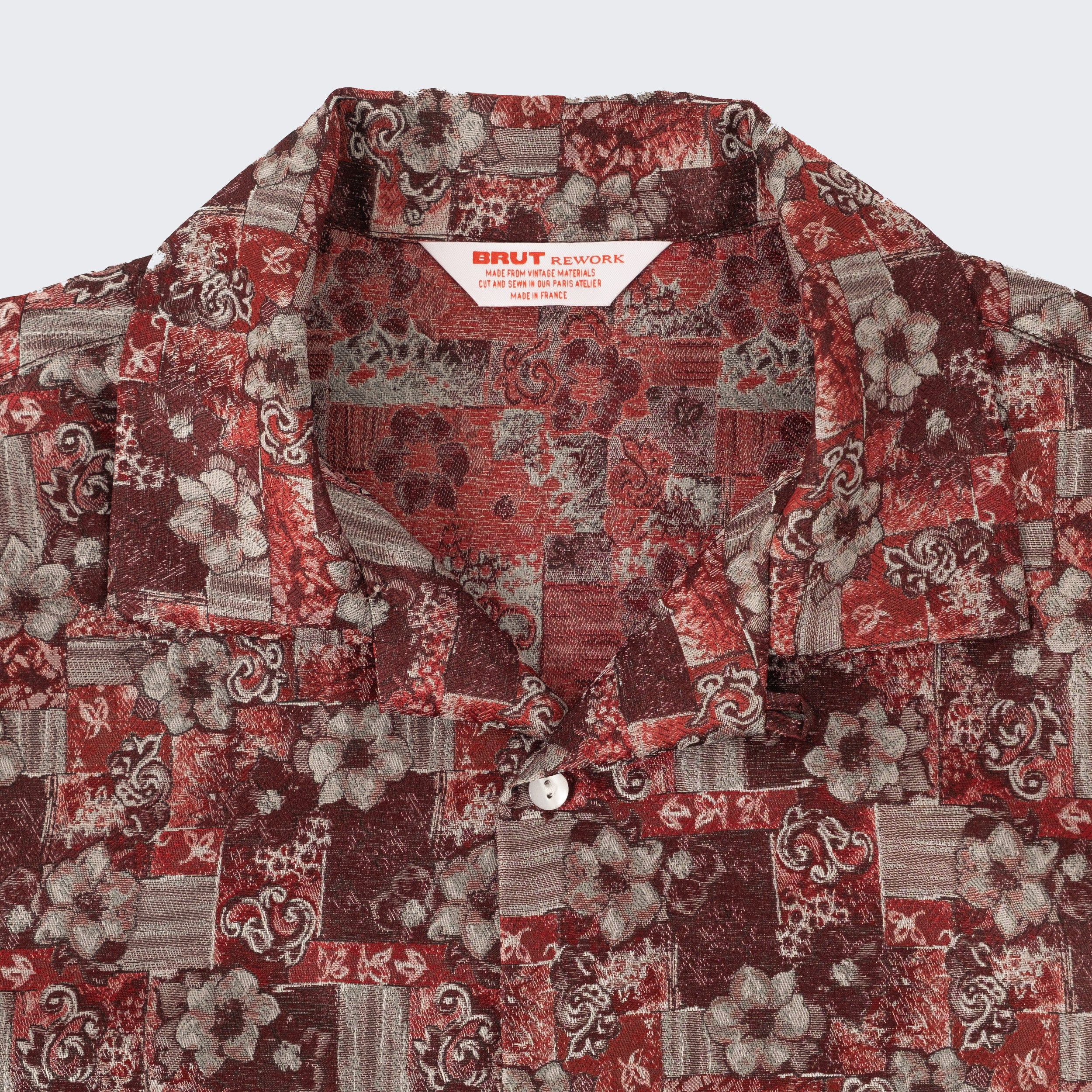 The TIE SHIRT is a mix of two rare shirts we have in our archive from the 1940's and 50's. The design consists of a short sleeves cropped shirt with a loop collar details. It is crafted from different deadstock fabrics which were intended for necktie manufacturing.