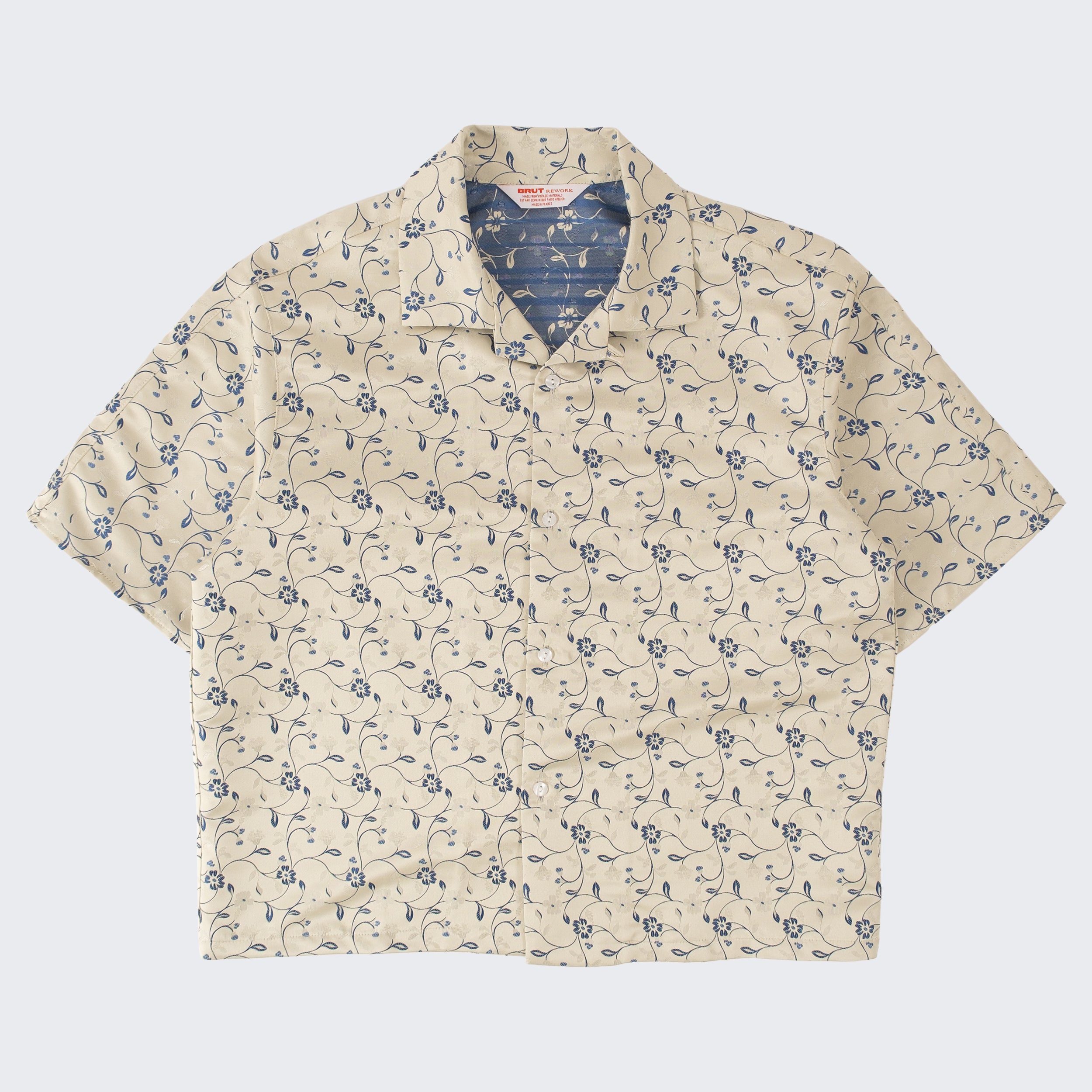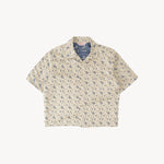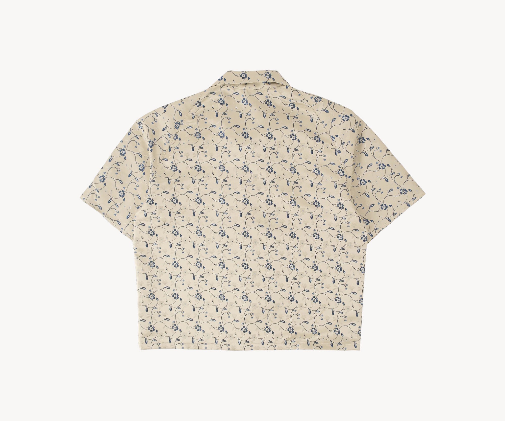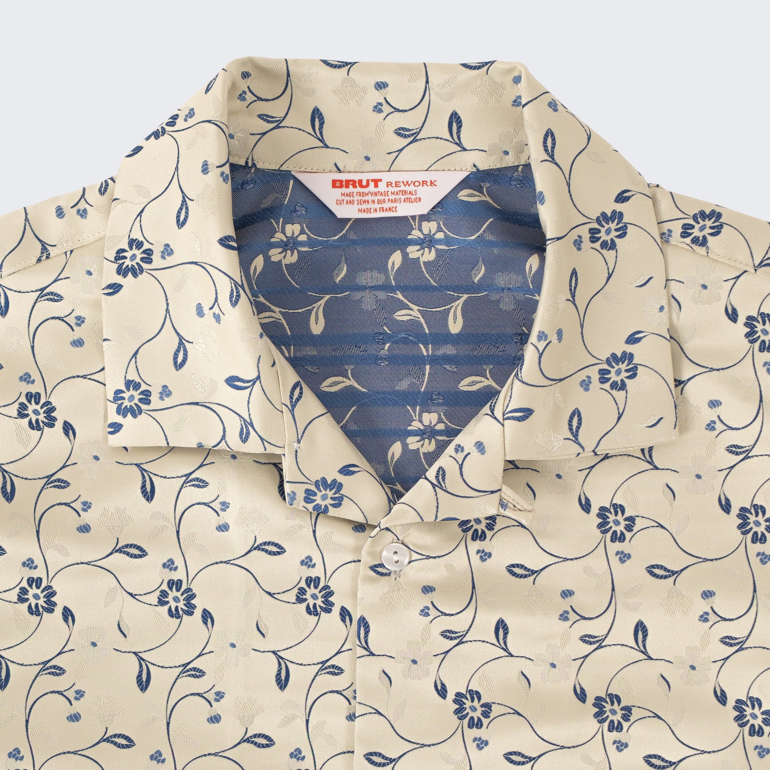 The TIE SHIRT is a mix of two rare shirts we have in our archive from the 1940's and 50's. The design consists of a short sleeves cropped shirt with a loop collar details. It is crafted from different deadstock fabrics which were intended for necktie manufacturing.