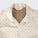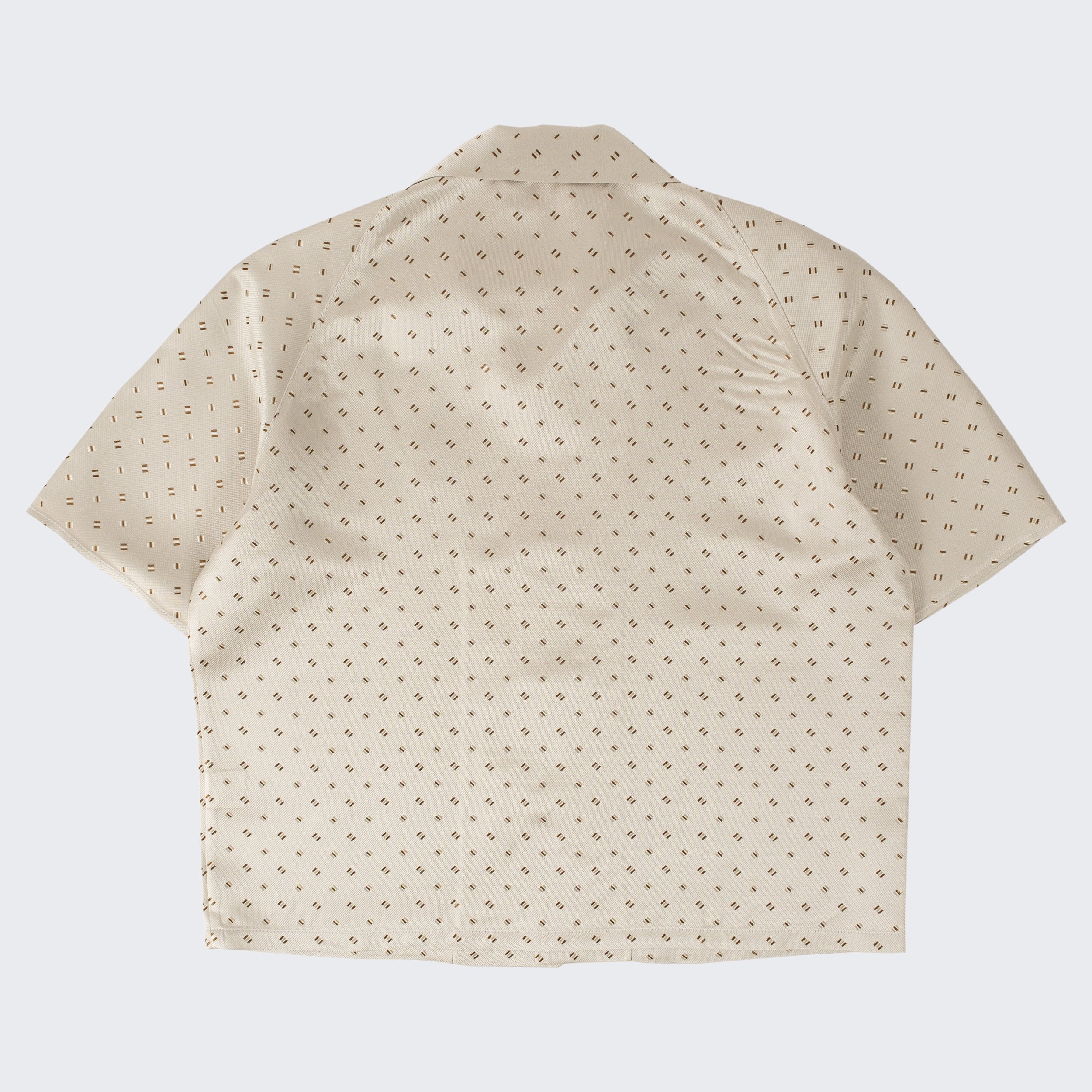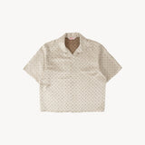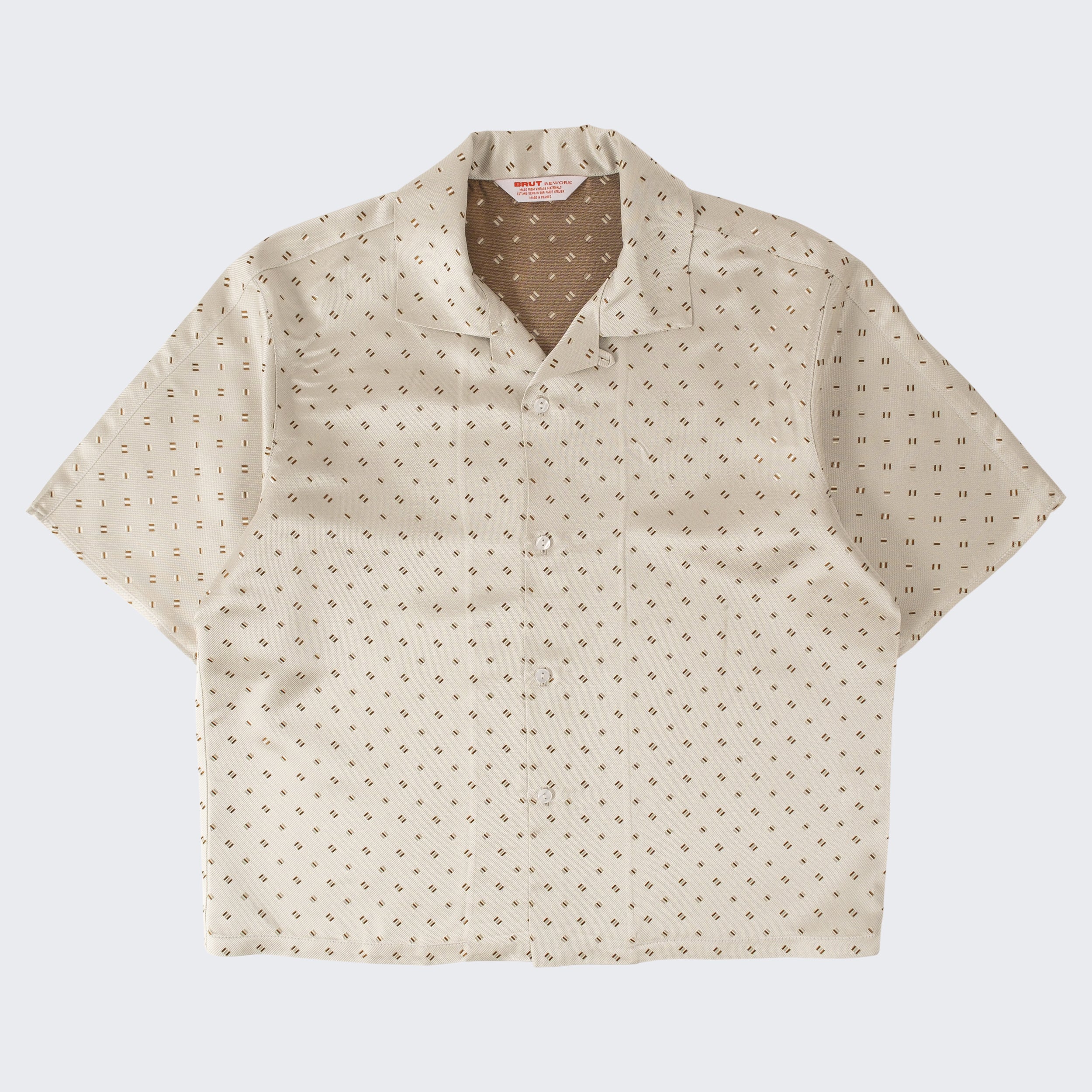 The TIE SHIRT is a mix of two rare shirts we have in our archive from the 1940's and 50's. The design consists of a short sleeves cropped shirt with a loop collar details. It is crafted from different deadstock fabrics which were intended for necktie manufacturing.