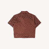 The TIE SHIRT is a mix of two rare shirts we have in our archive from the 1940's and 50's. The design consists of a short sleeves cropped shirt with a loop collar details. It is crafted from different deadstock fabrics which were intended for necktie manufacturing.
