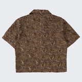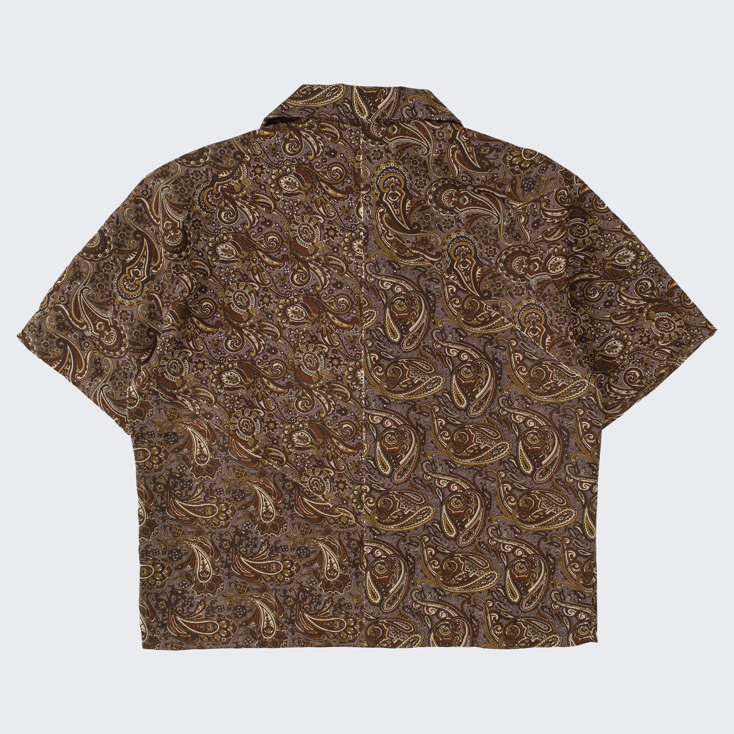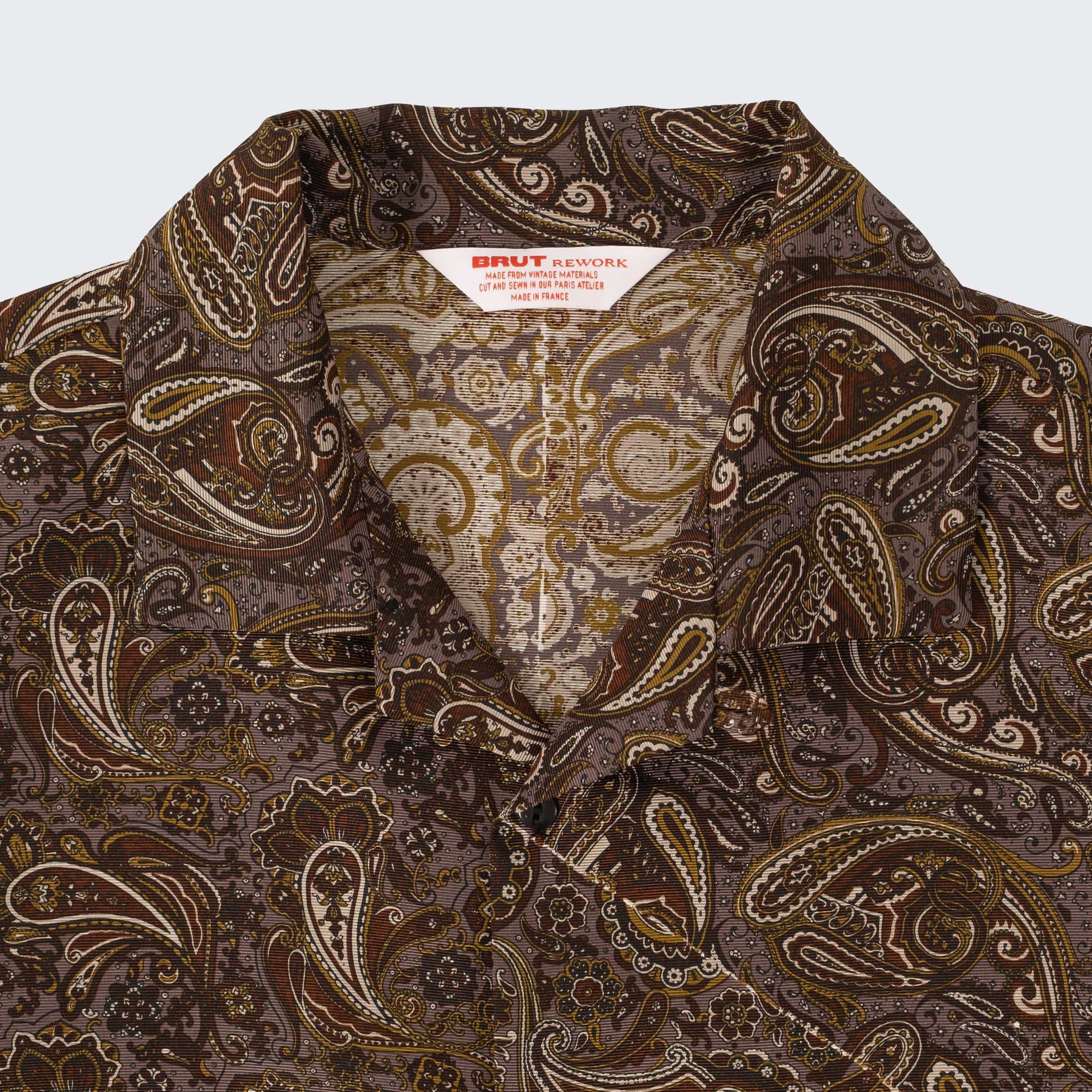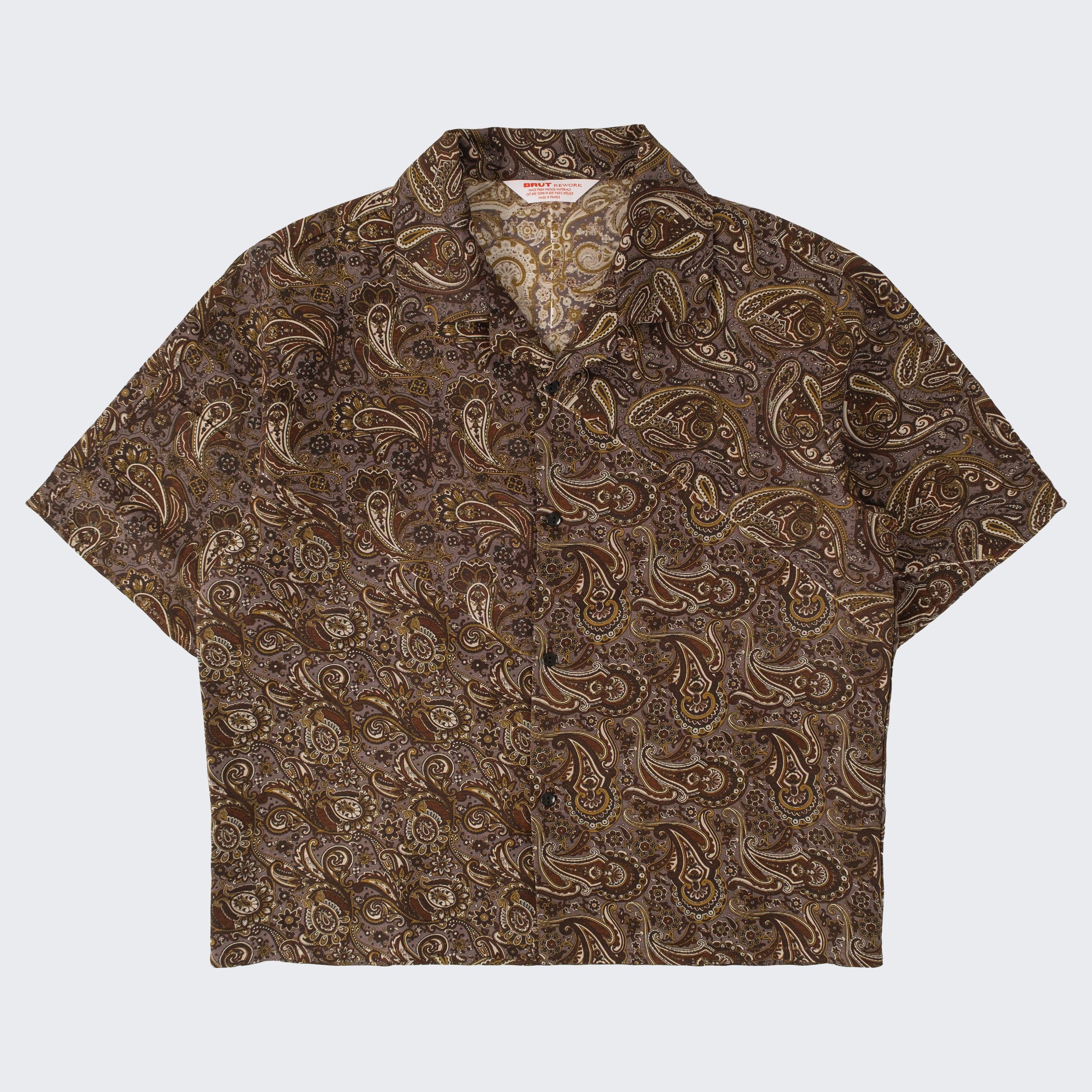 The TIE SHIRT is a mix of two rare shirts we have in our archive from the 1940's and 50's. The design consists of a short sleeves cropped shirt with a loop collar details. It is crafted from different deadstock fabrics which were intended for necktie manufacturing.
