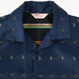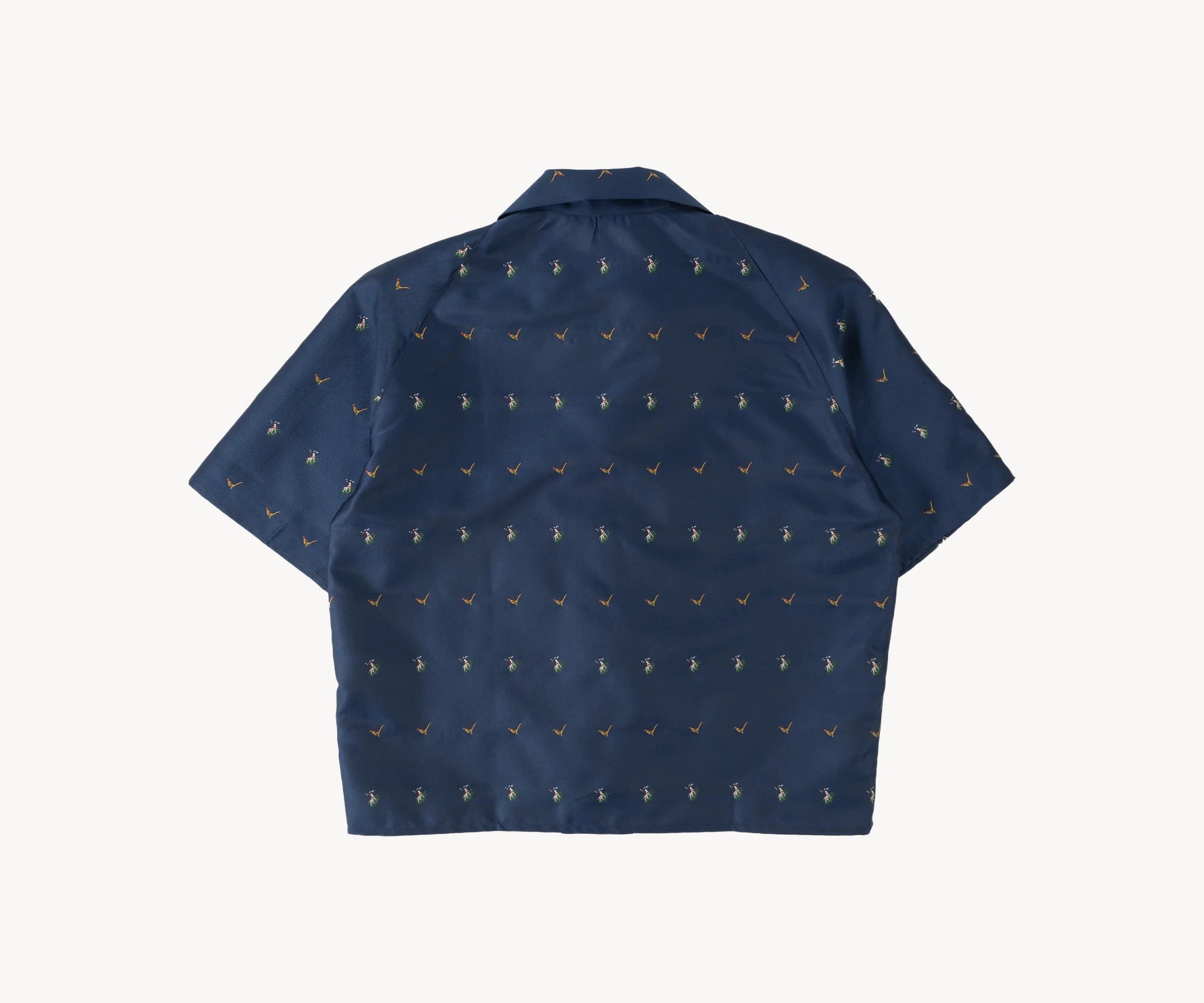 The TIE SHIRT is a mix of two rare shirts we have in our archive from the 1940's and 50's. The design consists of a short sleeves cropped shirt with a loop collar details. It is crafted from different deadstock fabrics which were intended for necktie manufacturing.