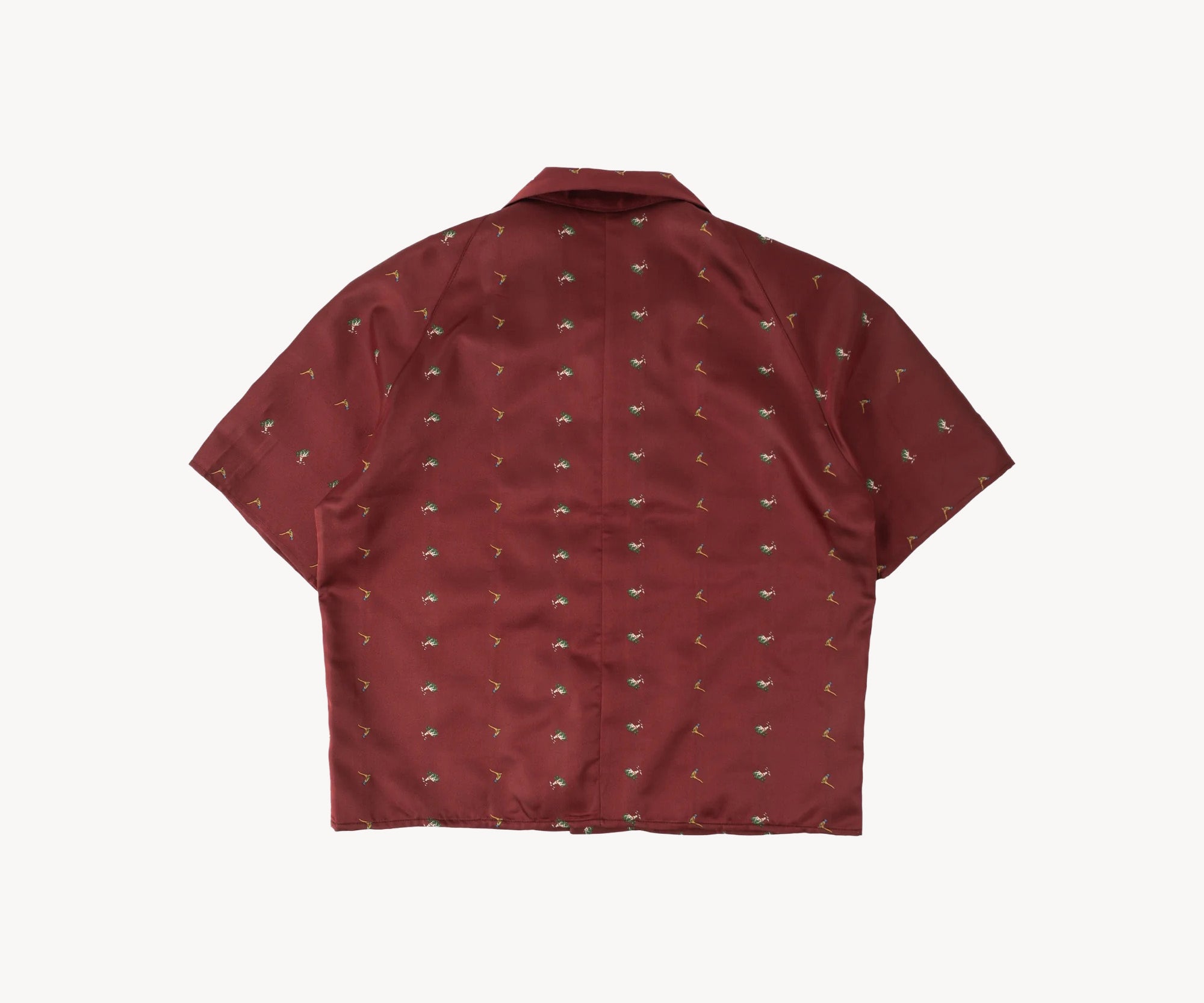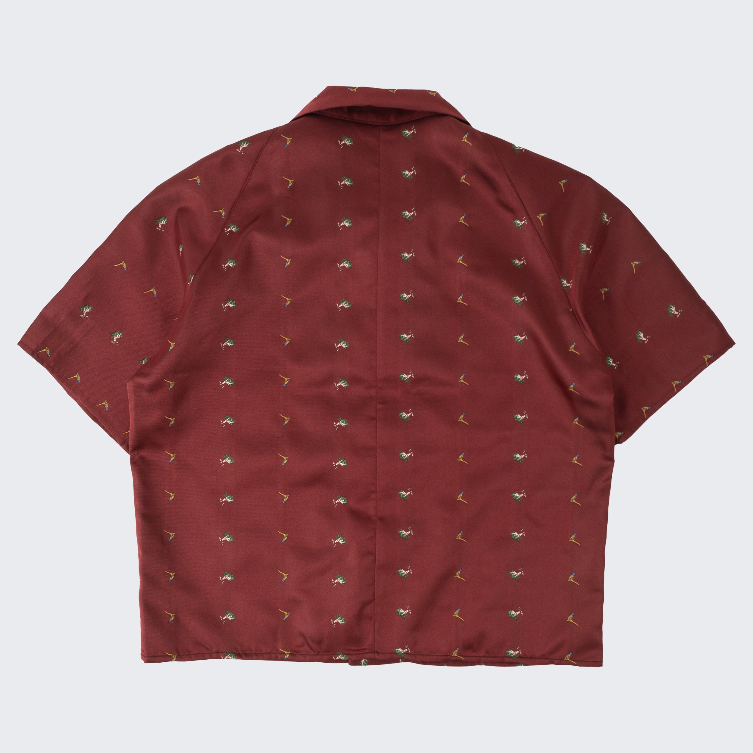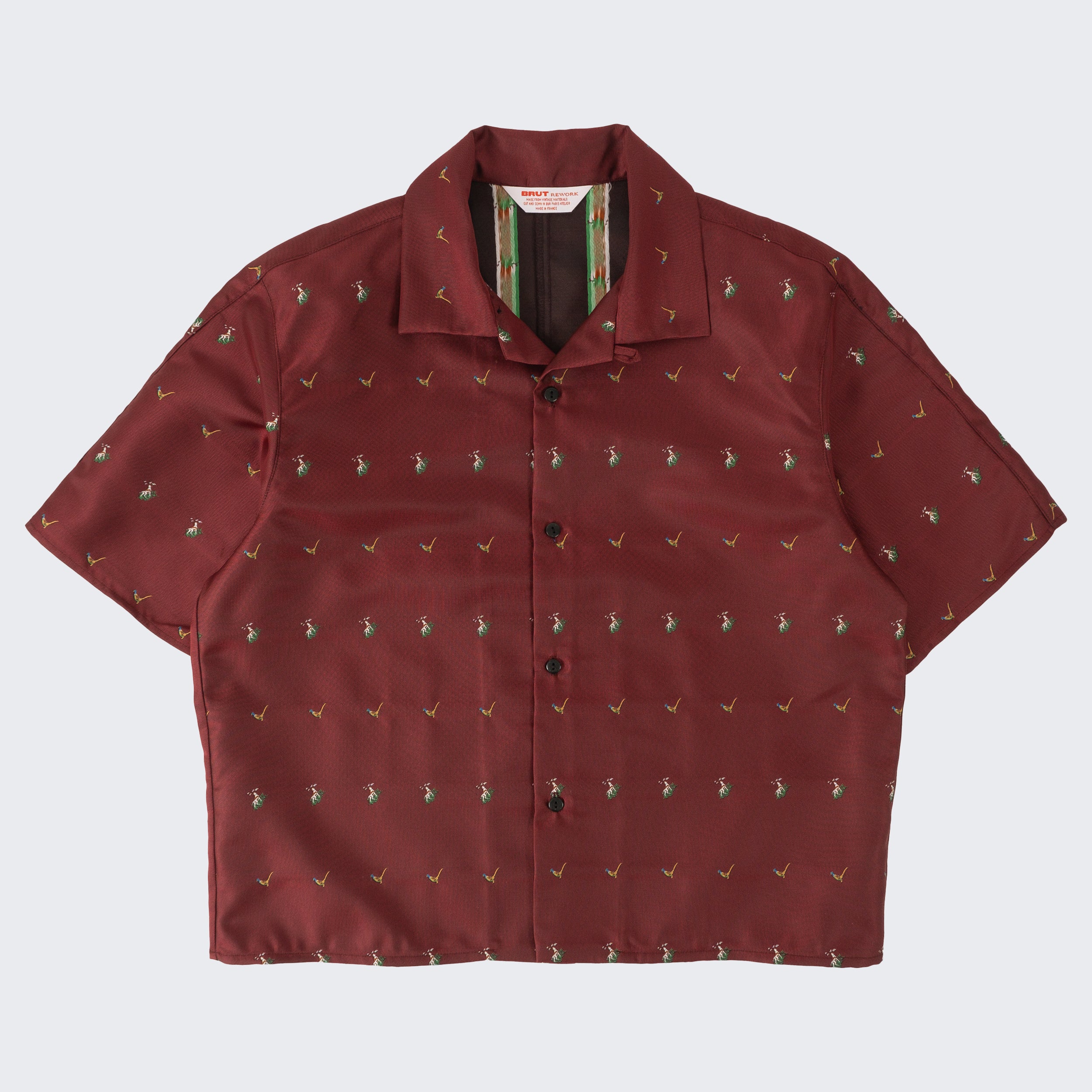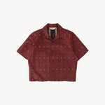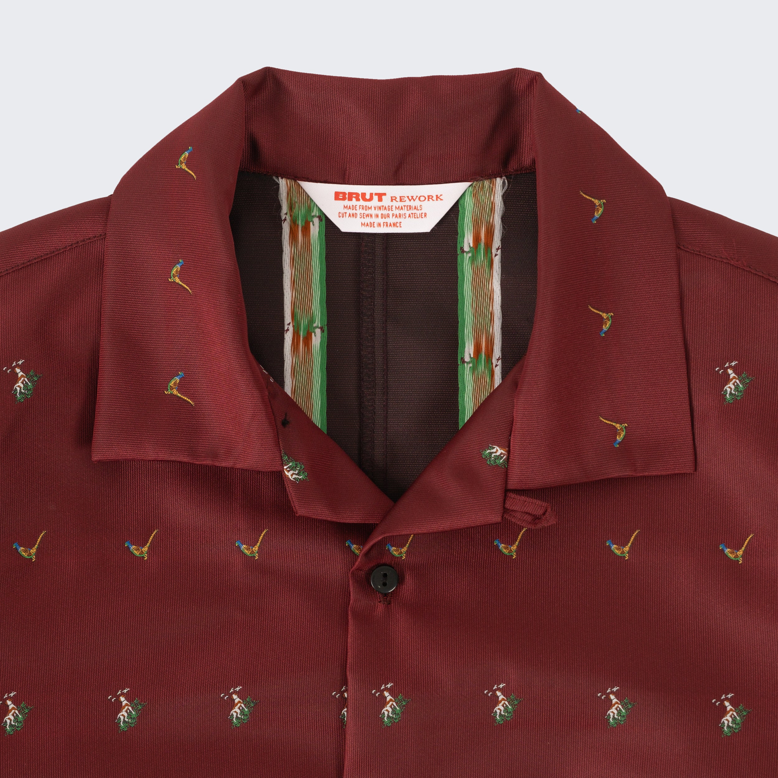 The TIE SHIRT is a mix of two rare shirts we have in our archive from the 1940's and 50's. The design consists of a short sleeves cropped shirt with a loop collar details. It is crafted from different deadstock fabrics which were intended for necktie manufacturing.
