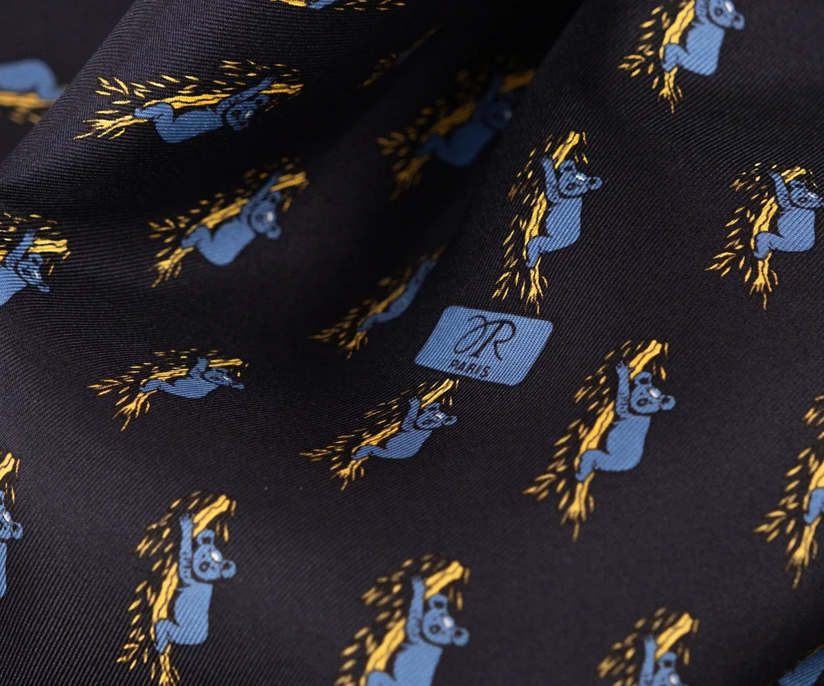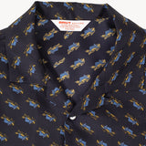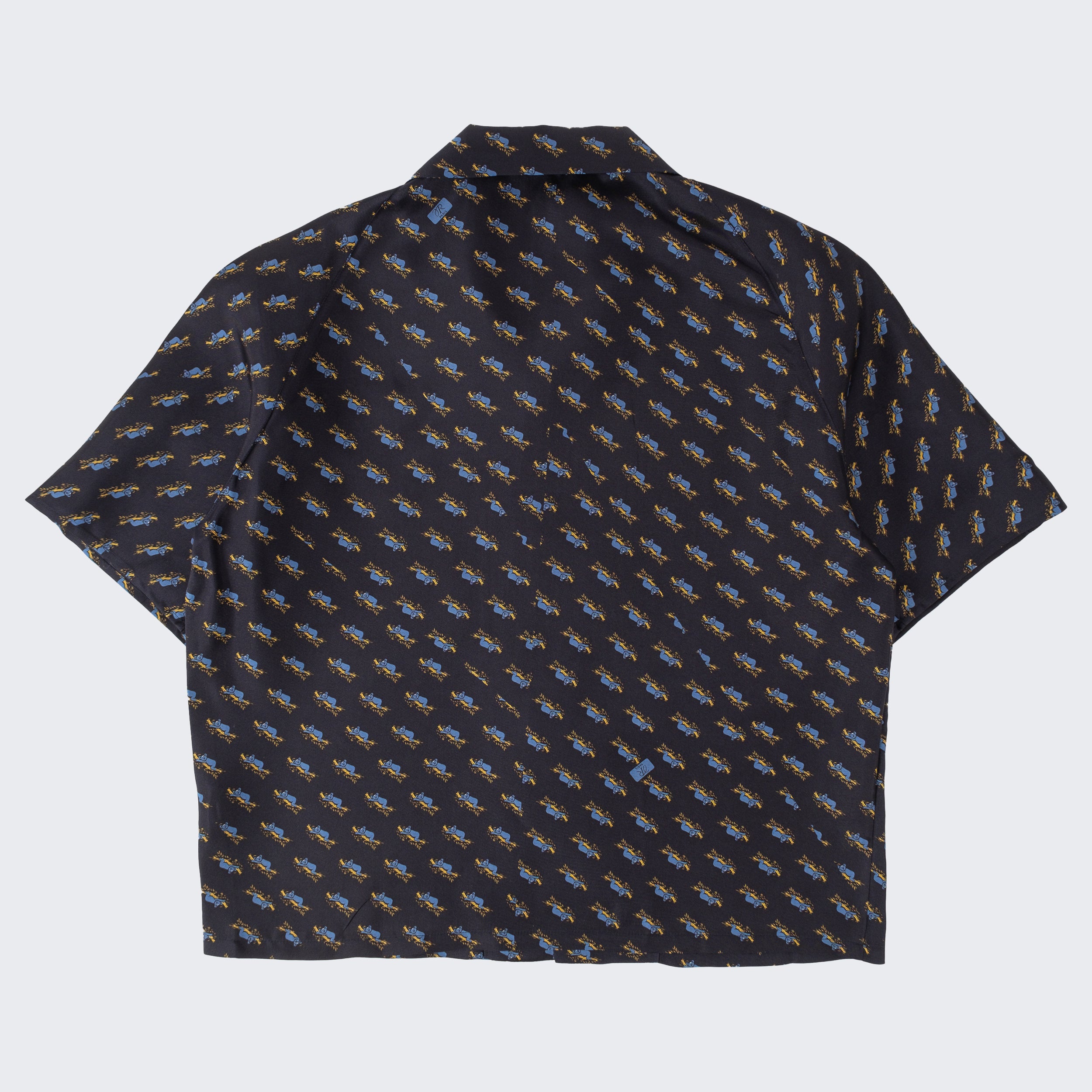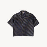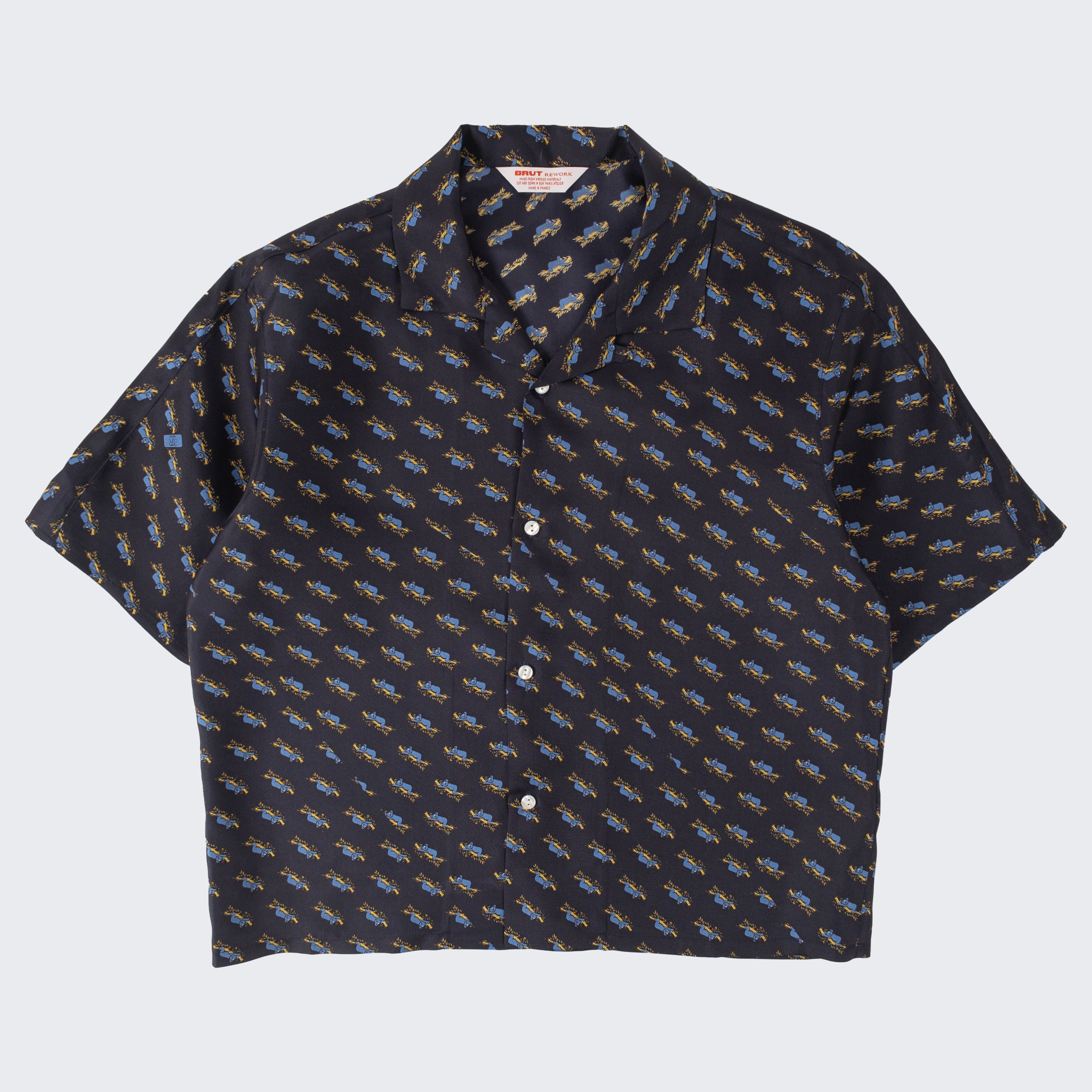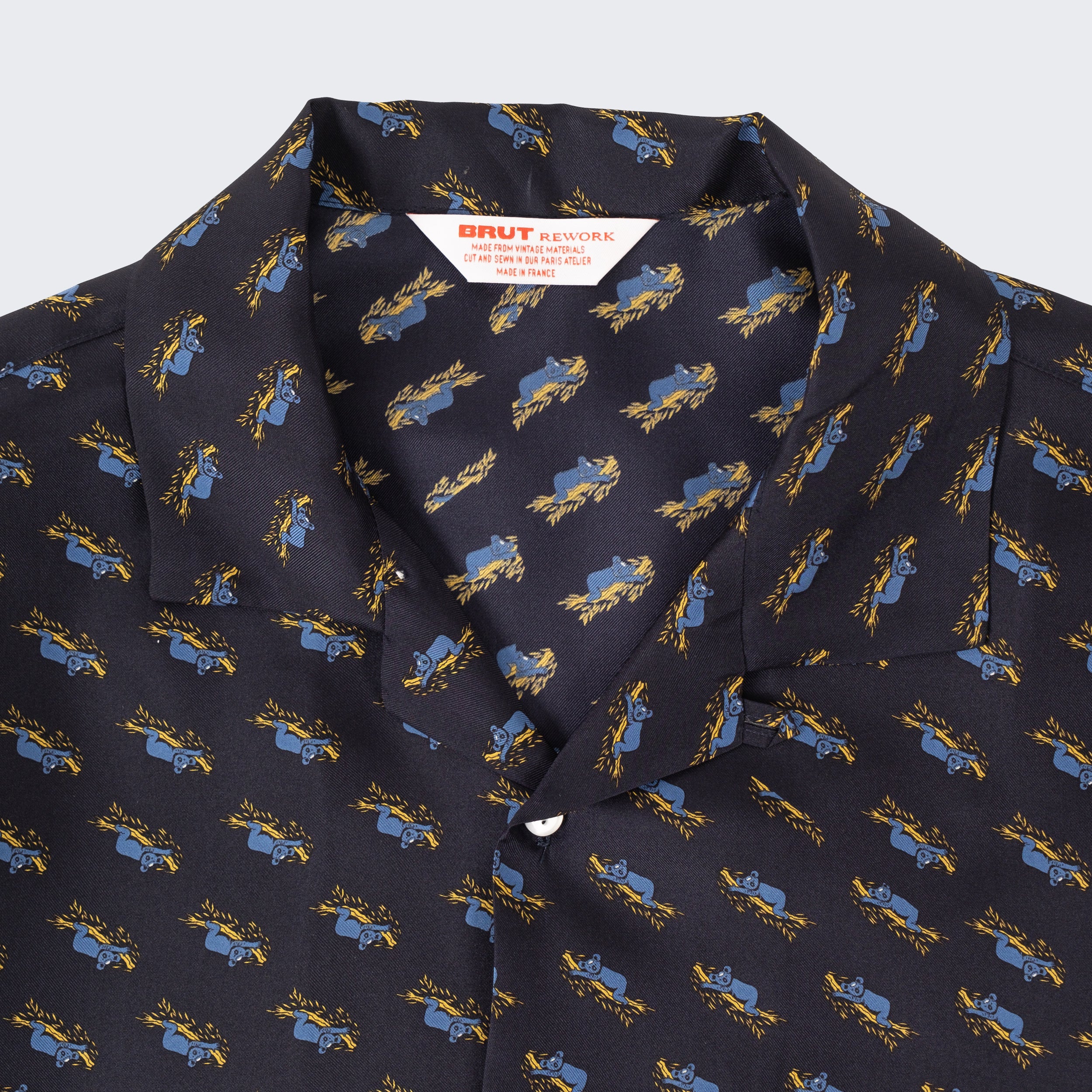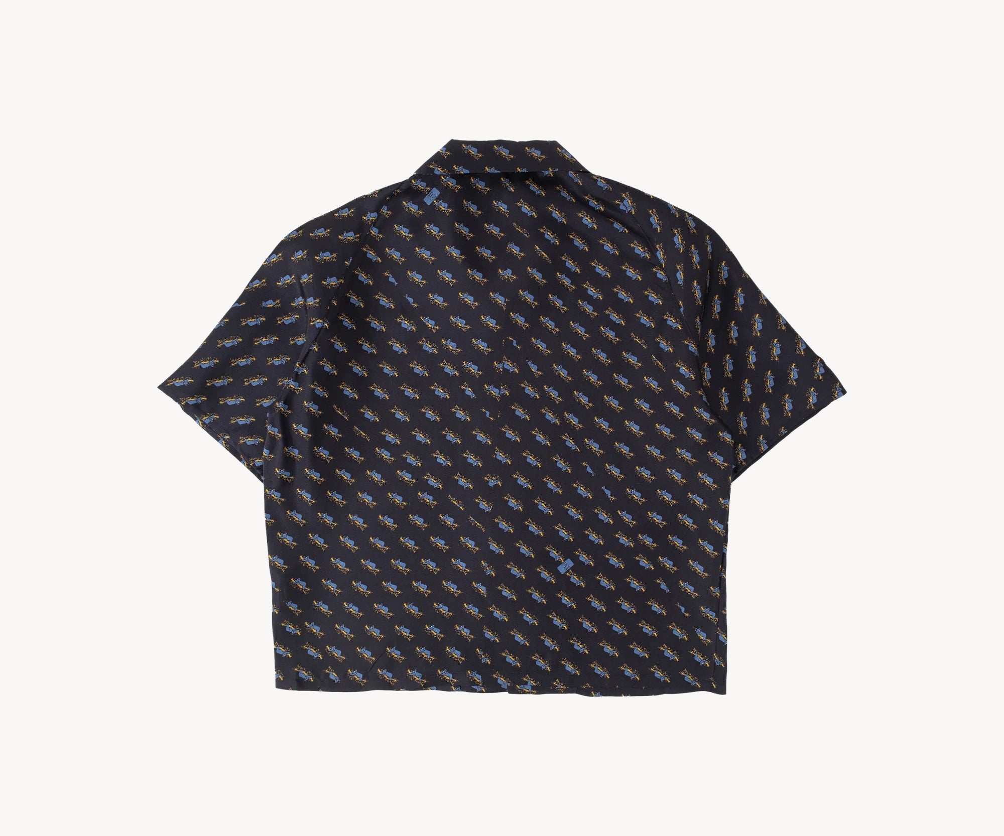 The TIE SHIRT is a mix of two rare shirts we have in our archive from the 1940's and 50's. The design consists of a short sleeves cropped shirt with a loop collar details. It is crafted from different deadstock fabrics which were intended for necktie manufacturing.