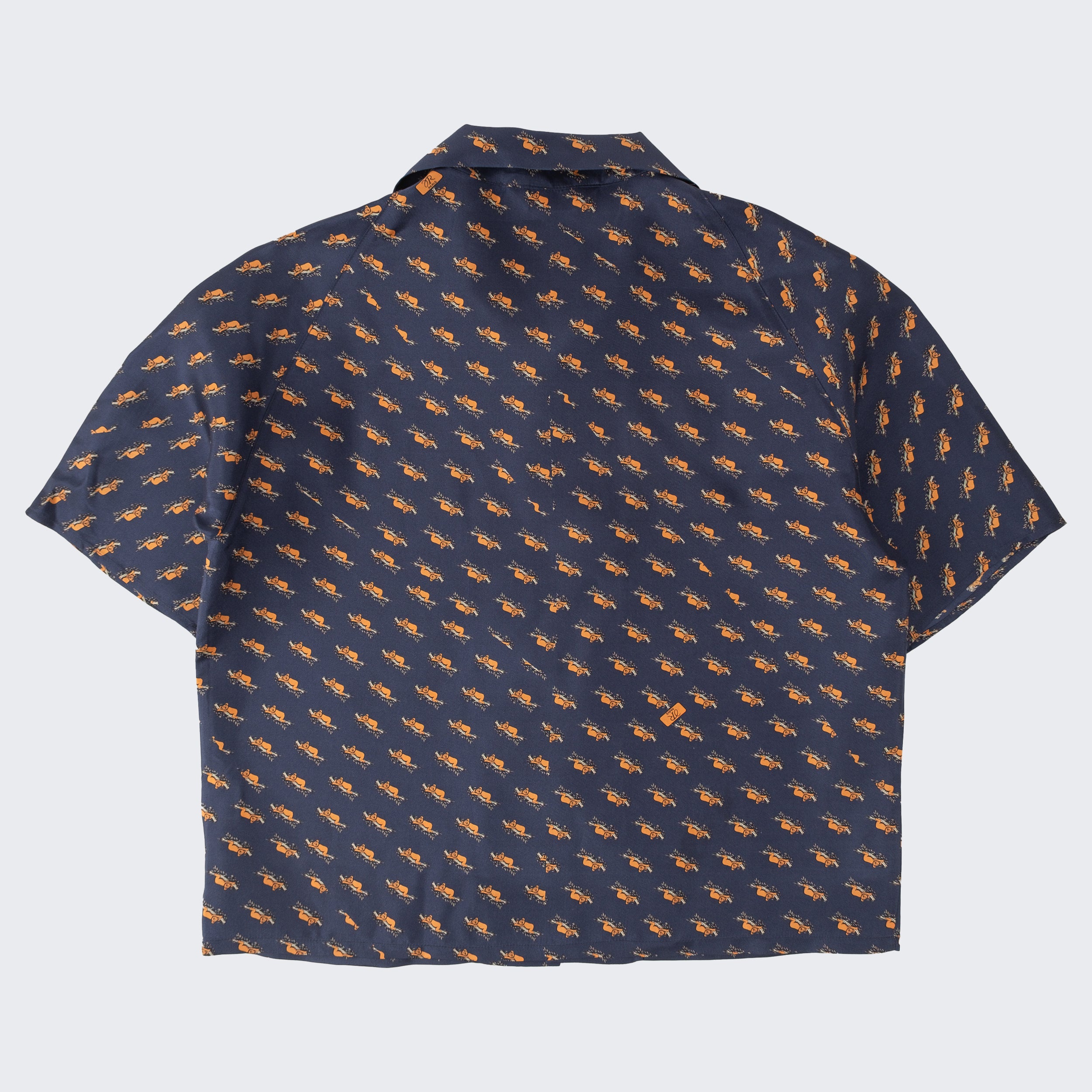 DESIGN : The TIE SHIRT is a mix of two rare shirts we have in our archive from the 1940's and 50's. The design consists of a short sleeves cropped shirt with a loop collar details. It is crafted from different deadstock fabrics which were intended for necktie manufacturing.