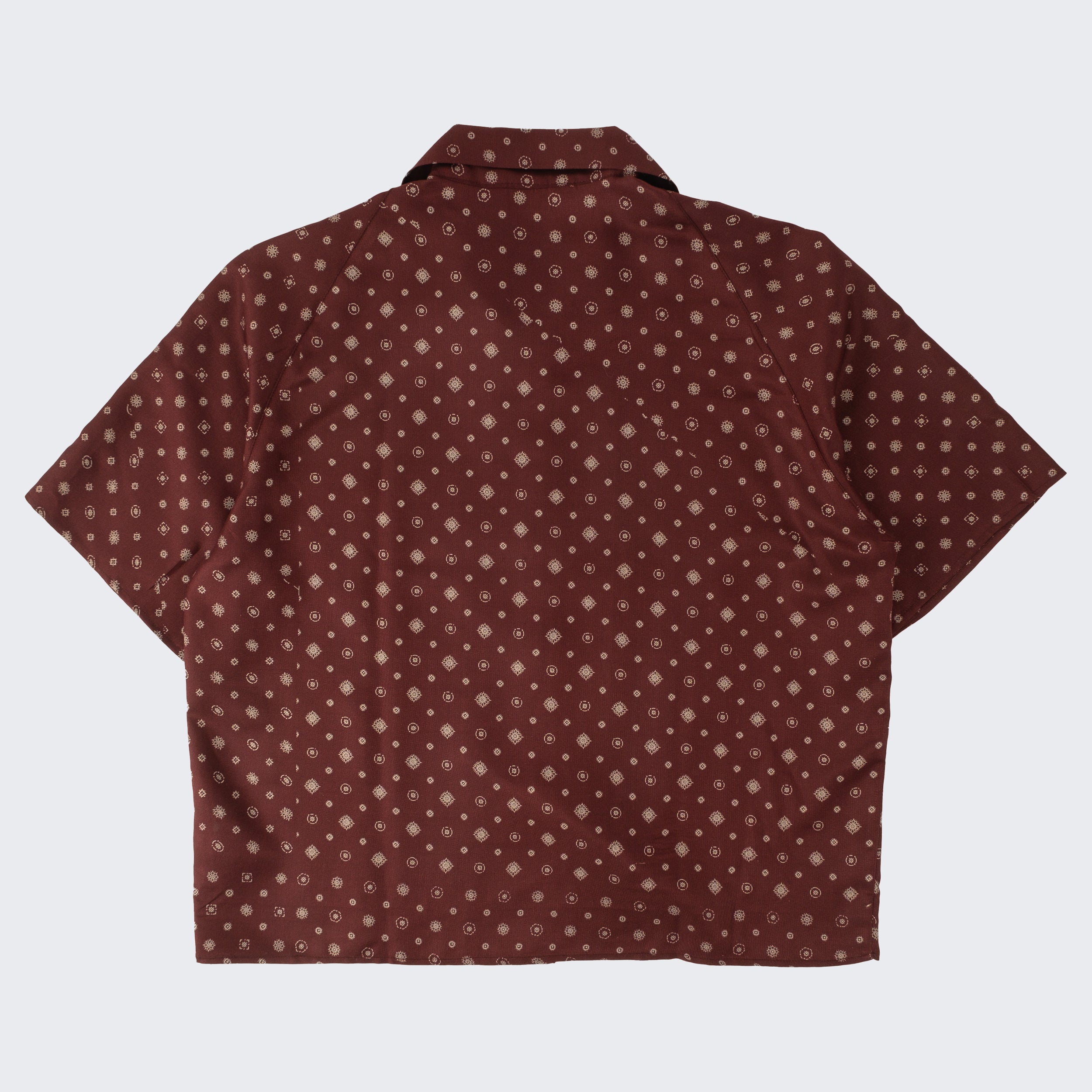 DESIGN : The TIE SHIRT is a mix of two rare shirts we have in our archive from the 1940's and 50's. The design consists of a short sleeves cropped shirt with a loop collar details. It is crafted from different deadstock fabrics which were intended for necktie manufacturing.