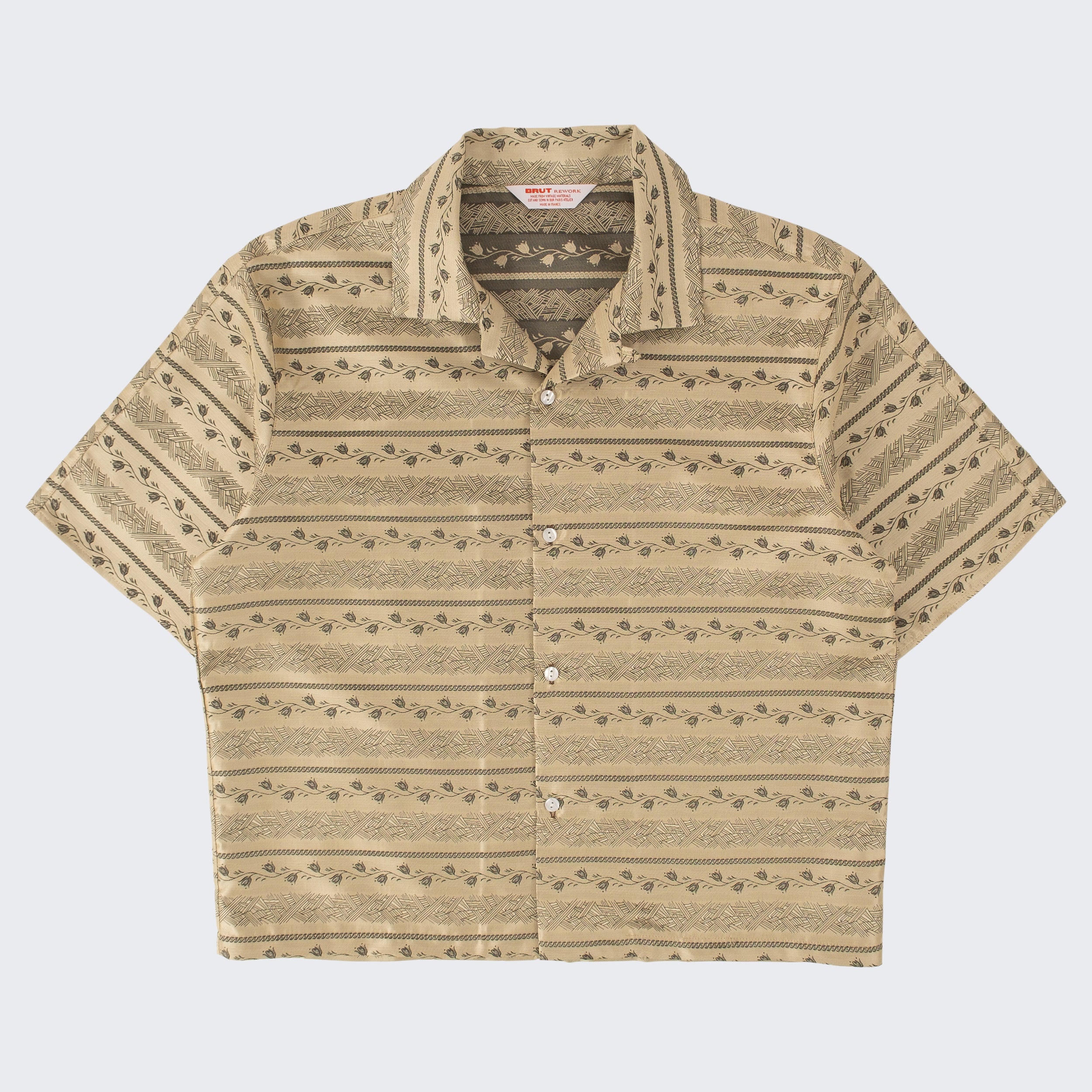 REWORK® FABRIC : These shirts are made from vintage tie fabrics sourced from a well-known merchant who used to supply Parisian luxury hotels and neo-classical bistros back in the '70s. Each pattern has its own vibe—there are 35 in total.