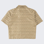 DESIGN : The TIE SHIRT is a mix of two rare shirts we have in our archive from the 1940's and 50's. The design consists of a short sleeves cropped shirt with a loop collar details. It is crafted from different deadstock fabrics which were intended for necktie manufacturing.
