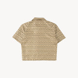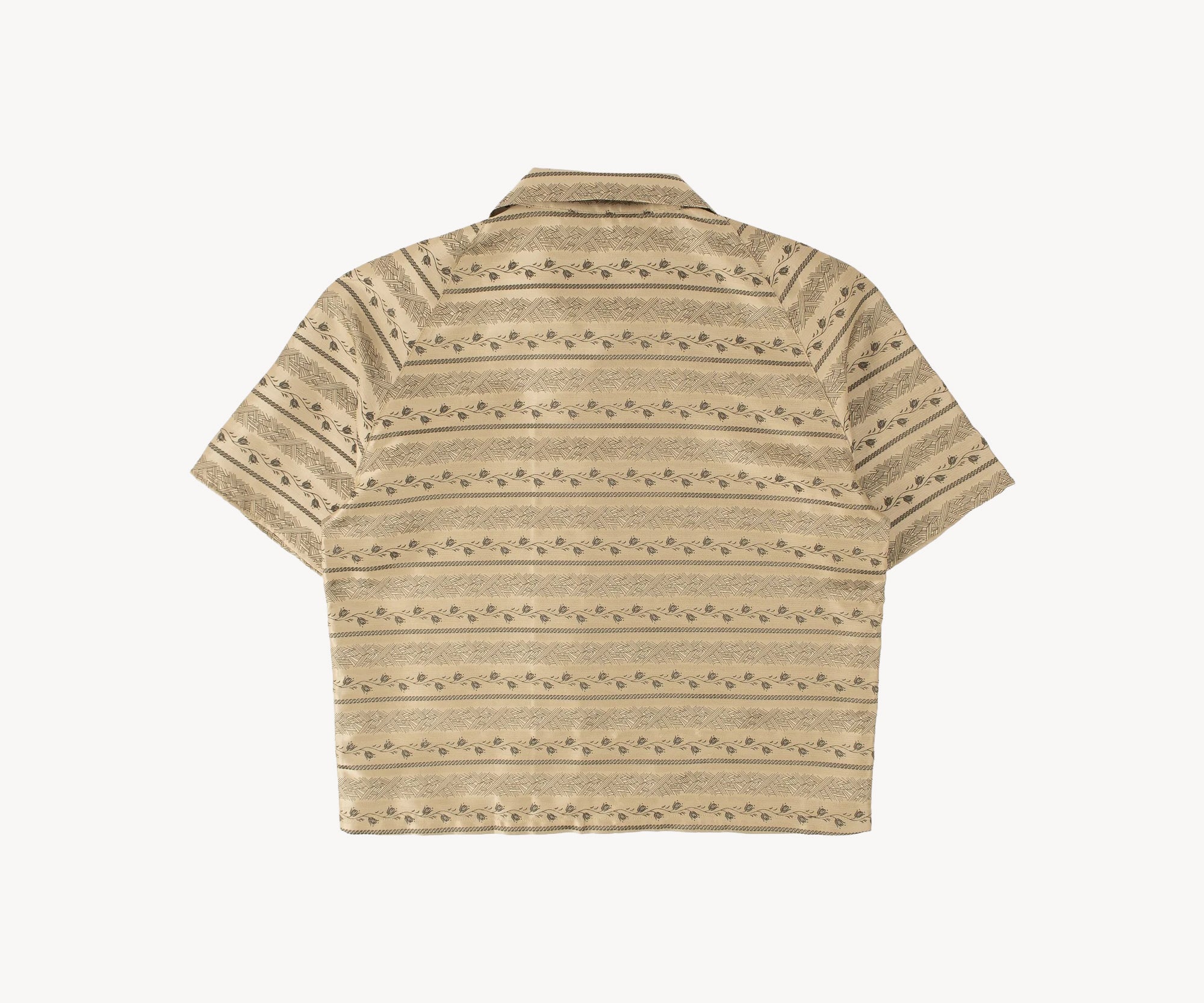 The TIE SHIRT is a mix of two rare shirts we have in our archive from the 1940's and 50's. The design consists of a short sleeves cropped shirt with a loop collar details. It is crafted from different deadstock fabrics which were intended for necktie manufacturing.